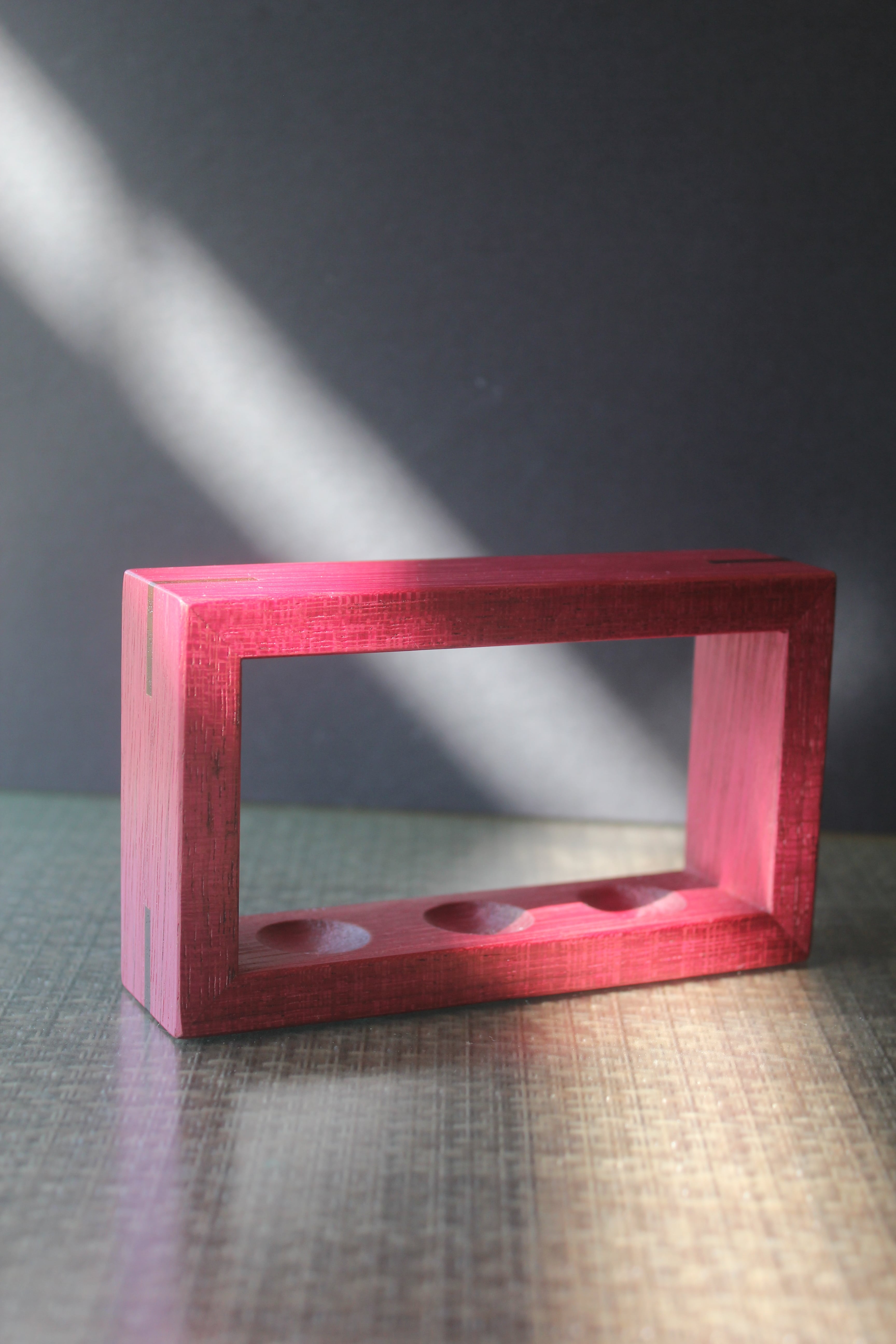 【パープルハートについて】:中南米からブラジル南部の熱帯地域が主な産地。豆科の広葉樹。最大の特徴は、木材が持つ色。鮮やかな紫色から寄木などの工芸品、彫刻の装飾材に使われる。加工後は経年で濃い紫褐色に変わり渋みが増す。重硬な上、耐久性や防虫性に優れているが、樹脂が多く加工が難しい