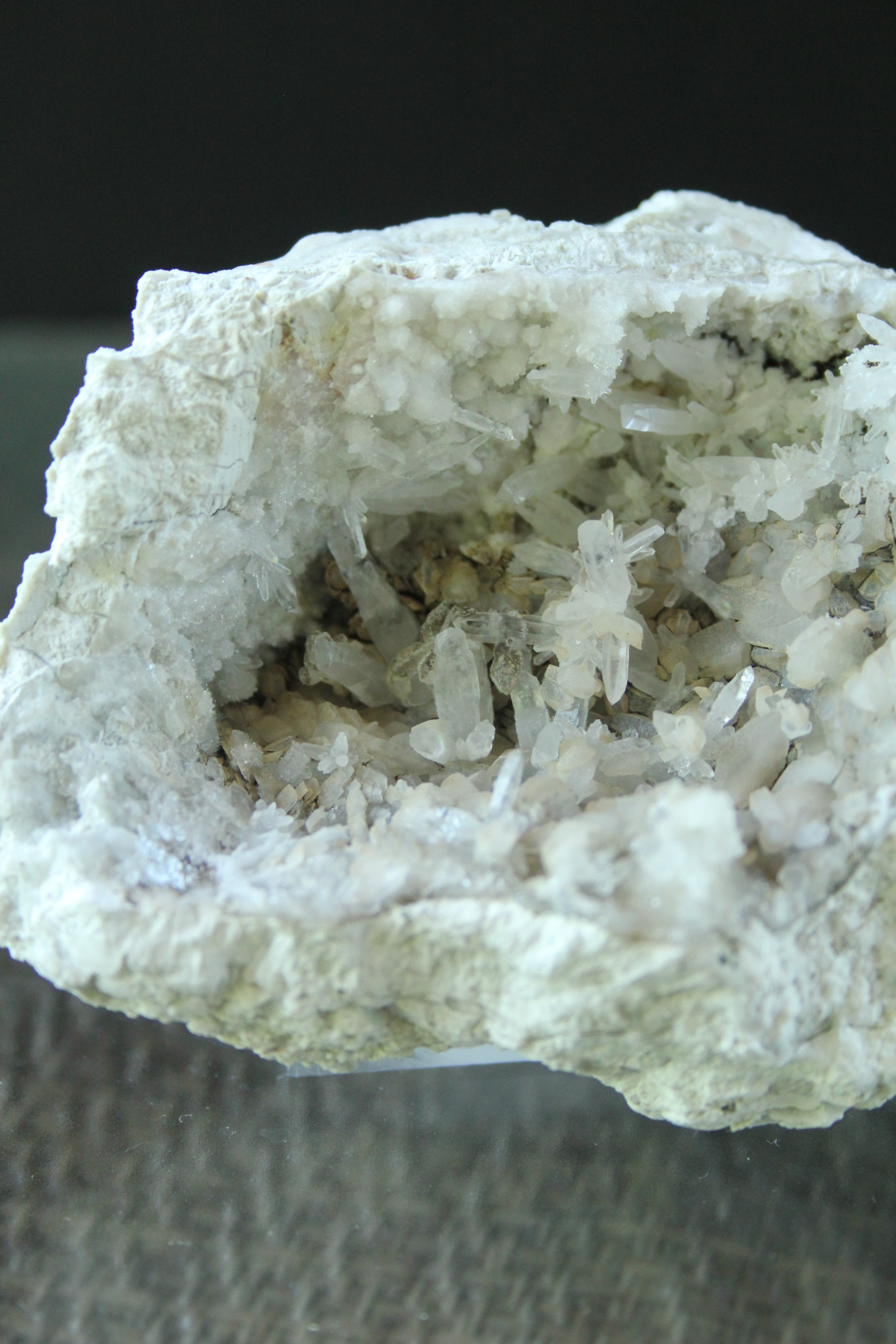 【商品説明】:ジオードの原石オンリー。日本ではとても珍しい球顆流紋岩のジオード。水晶の形がはっきりわかるものは確率的に少ないのですが、このジオードは1cmぐらいの水晶が何本も見られます。