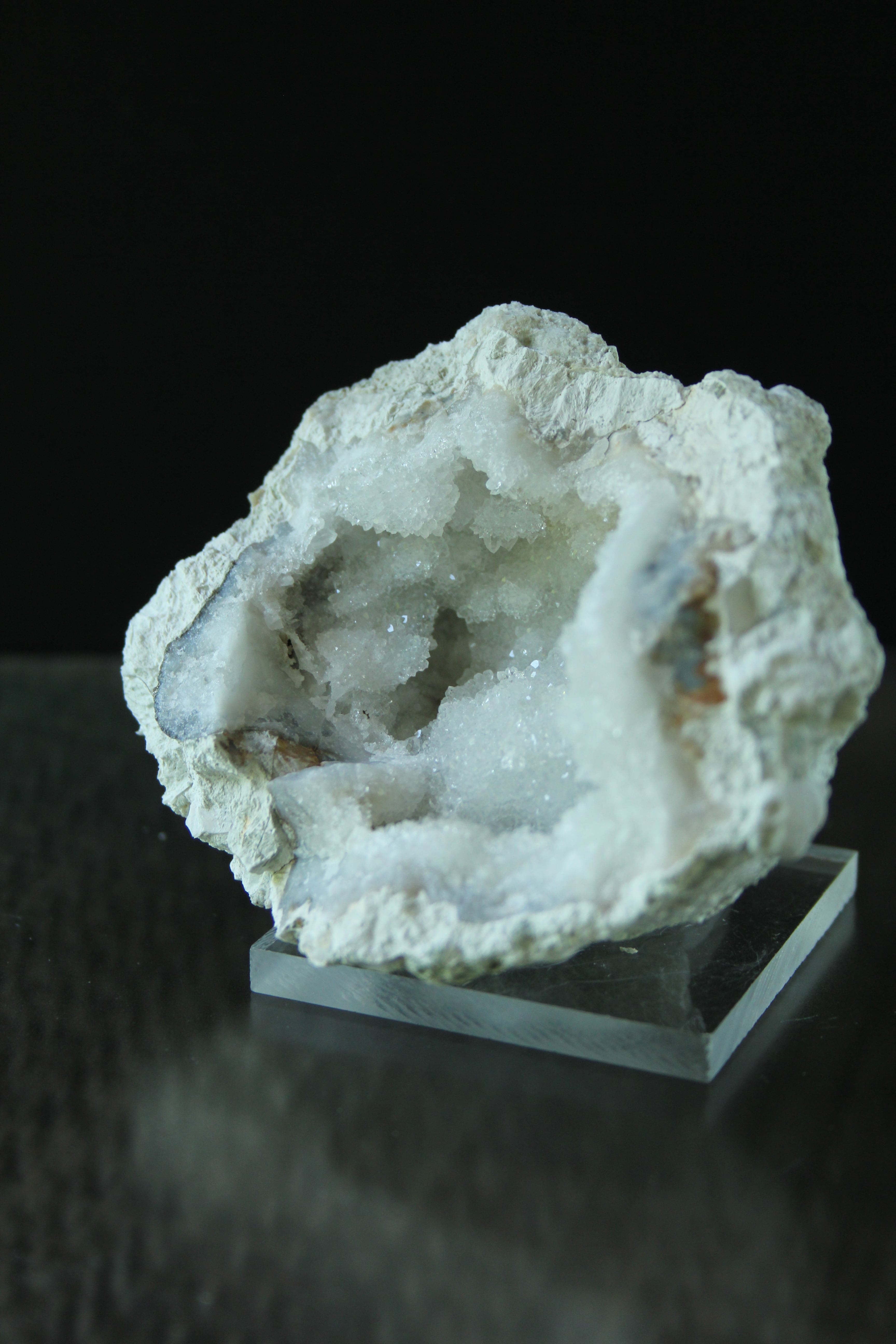 【商品説明】:ジオードの原石オンリー。日本ではとても珍しい球顆流紋岩のジオード。空洞の中、全体にキラキラ水晶または方解石が見られます。