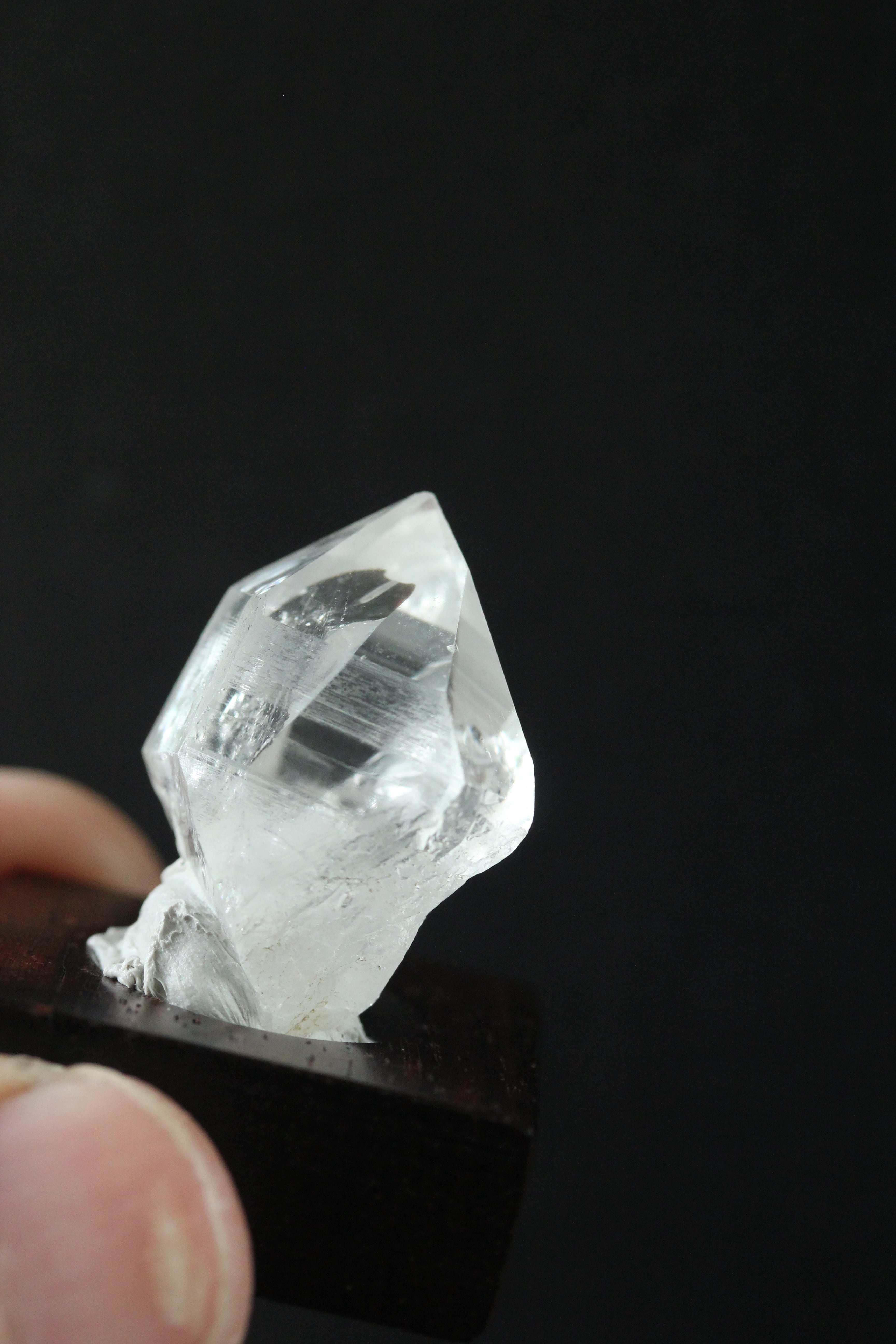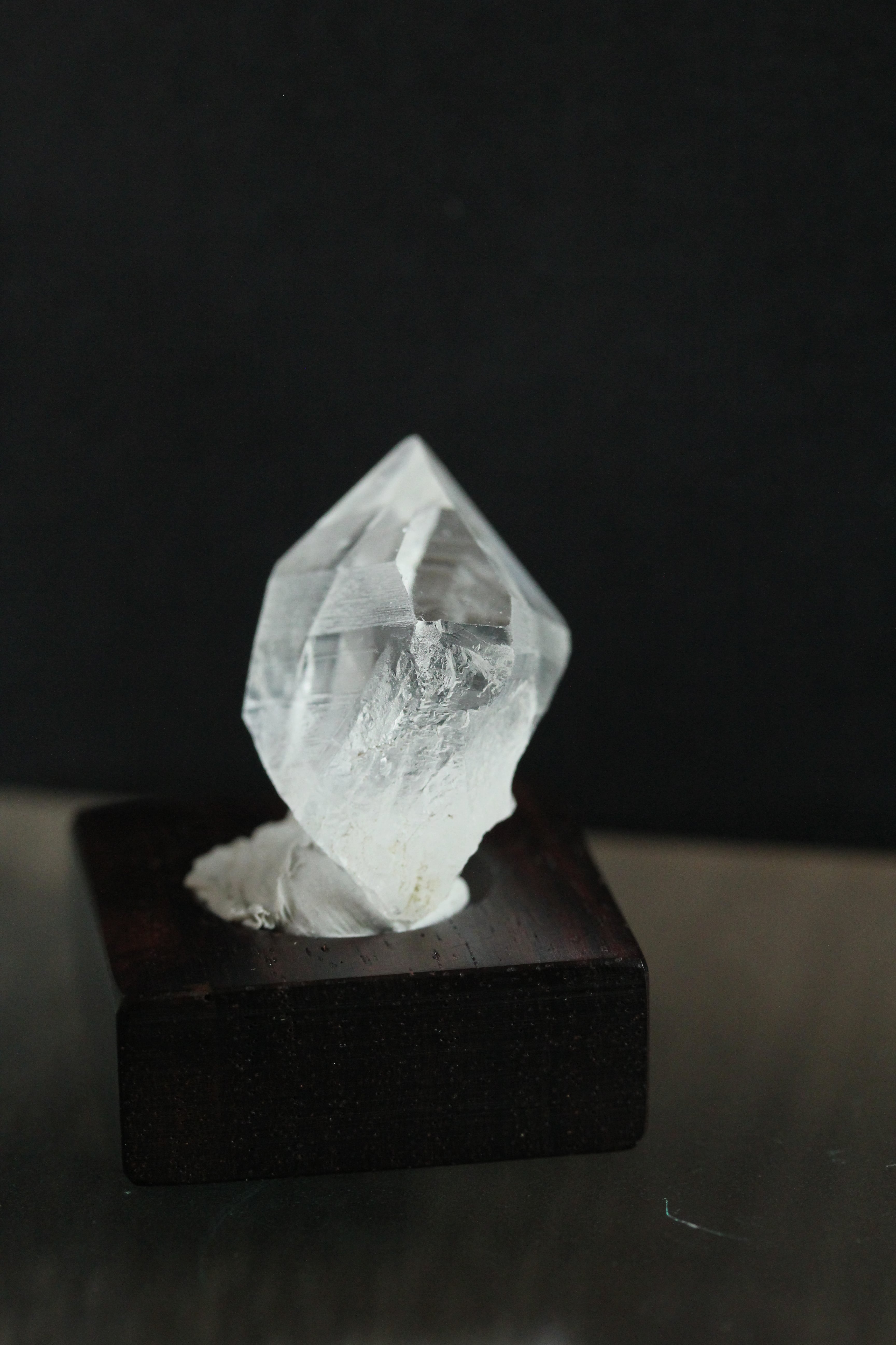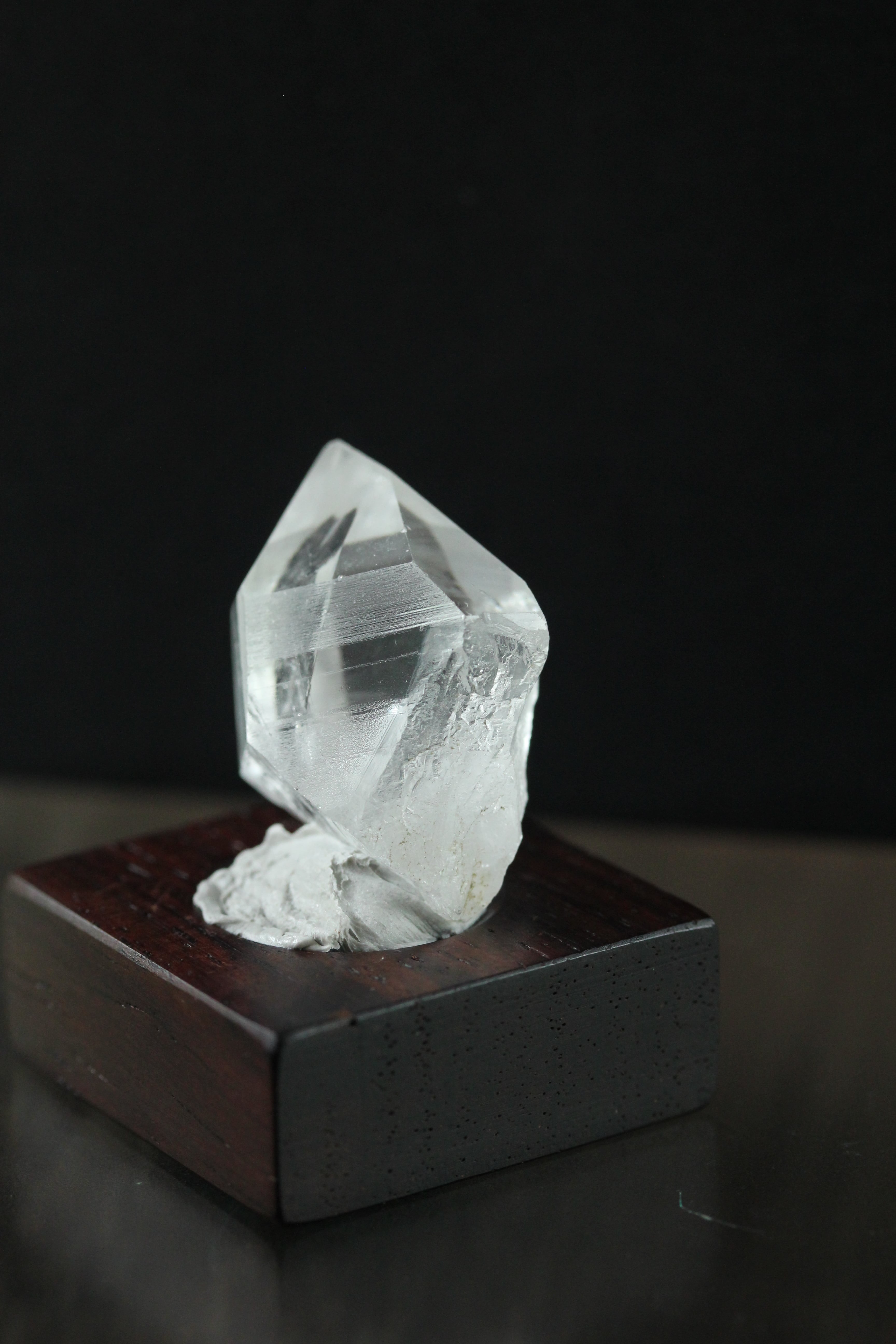 【商品説明】:水晶の原石と高級木材のローズウッドを使用した置物。宮崎クリスタルの中でも、抜群のテリと透明感を誇る日之影町産の水晶。特にこの水晶は、今回入荷の中で雄一のキレイな虹入り(下の動画がわかりやすくです)ローズウッドベースの大きさ(約30x30x12mm)水晶を置く部分には「座ぐり」と呼ばれる円形の溝を掘っております。簡単のように見えますが、硬い木材のローズウッドに、一定の深さの溝を掘るには、非常に高度な技術を用います。木工歴50年の職人が成せる技です