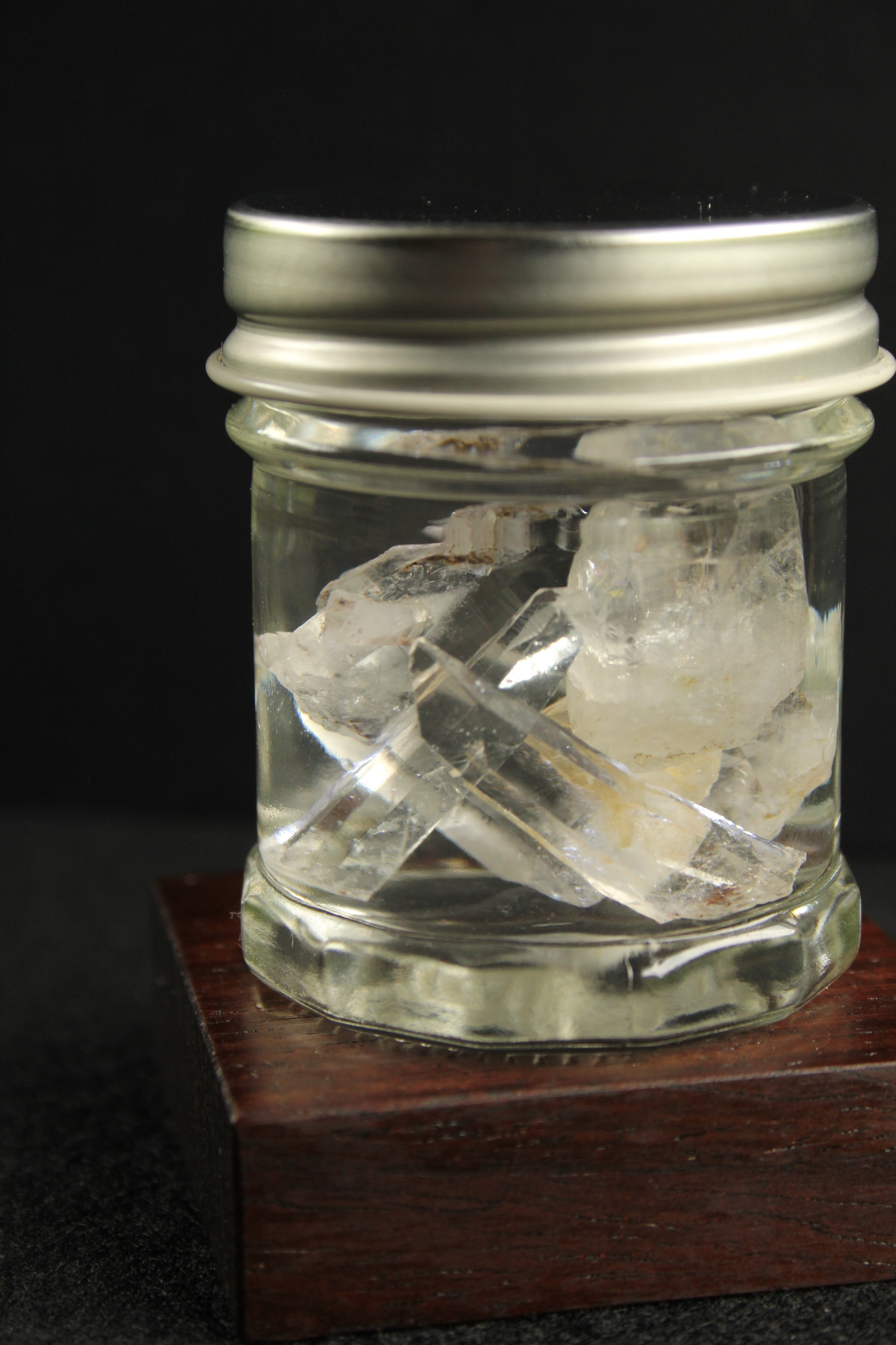 【商品説明】:2種の宮崎産の水晶を使ったアクアリウム。ローズウッドのベースには、LEDが付いており、下から光を当てることができます。産地の違う宮崎産の透明度高い水晶を、それぞれ3個づつ、ビンに詰めています。水晶は欠けや傷はありますが、宮崎産水晶の原石をお手元に置きたい方にはおすすめです。