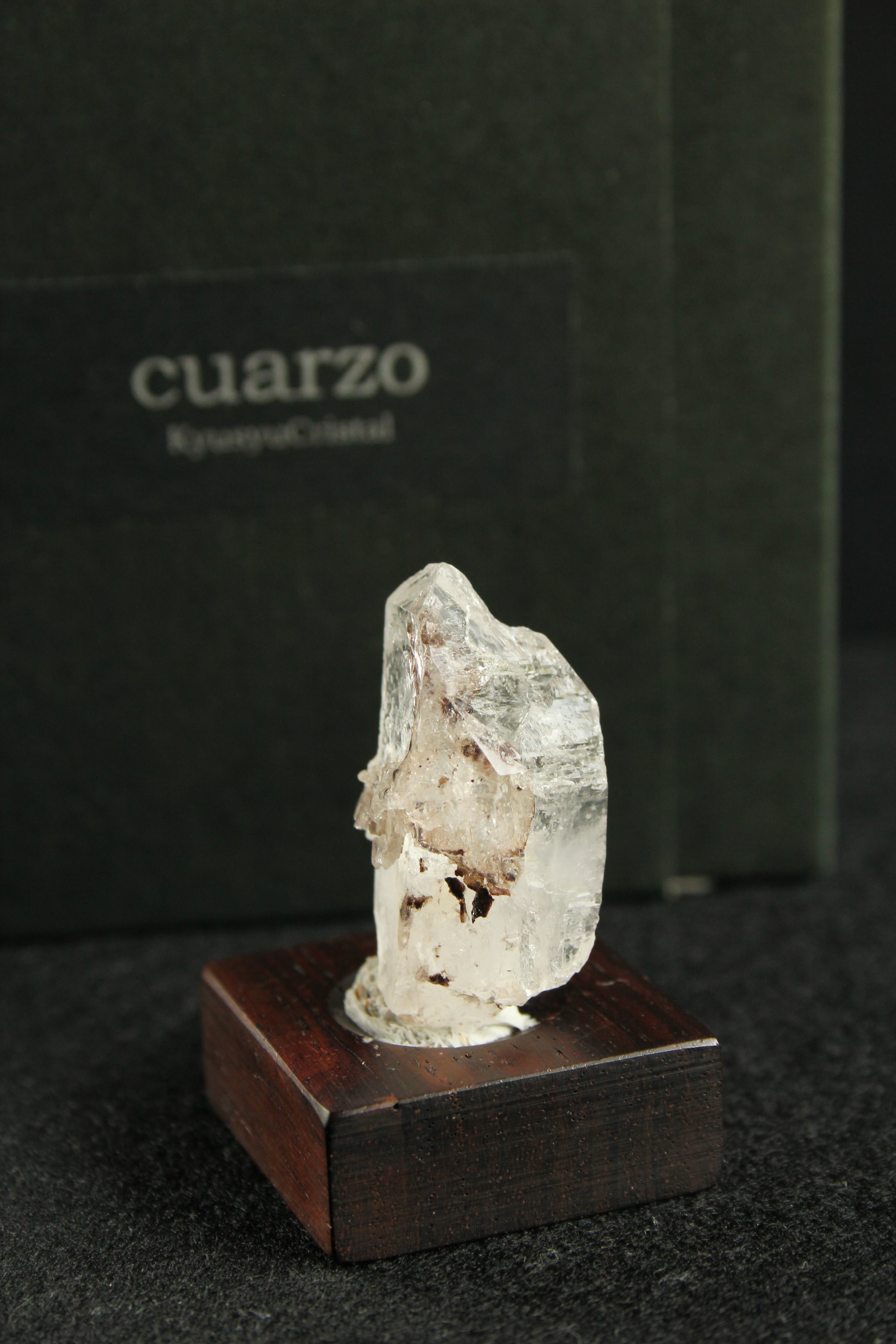 【商品説明】:長崎産水晶の原石と高級木材のローズウッドを使用した置物。この水晶は中に気泡が入ったエレスチャルです。光りを当てるとキラキラ反射してとてもキレイです。パワーストーンでは「水晶の最終形態」「天使からの贈り物」とも呼ばれています。この産地でエレスチャル取れるところは凄く限定的です。ローズウッドベースの大きさ(約30x30x12mm)水晶を置く部分には「座ぐり」と呼ばれる円形の溝を掘っております。簡単のように見えますが、硬い木材のローズウッドに、一定の深さの溝を掘るには、非常に高度な技術を用います。木工歴50年の職人が成せる技です