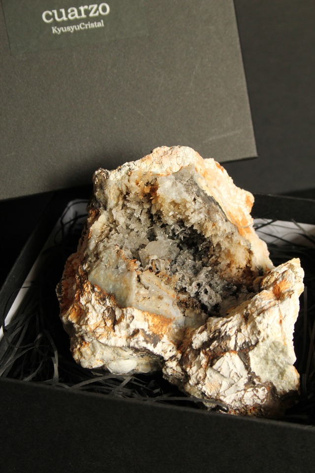 【商品説明】:ジオードの原石オンリー。日本ではとても珍しい球顆流紋岩のジオード。空洞の中、1.5cmほどの水晶が見られます。