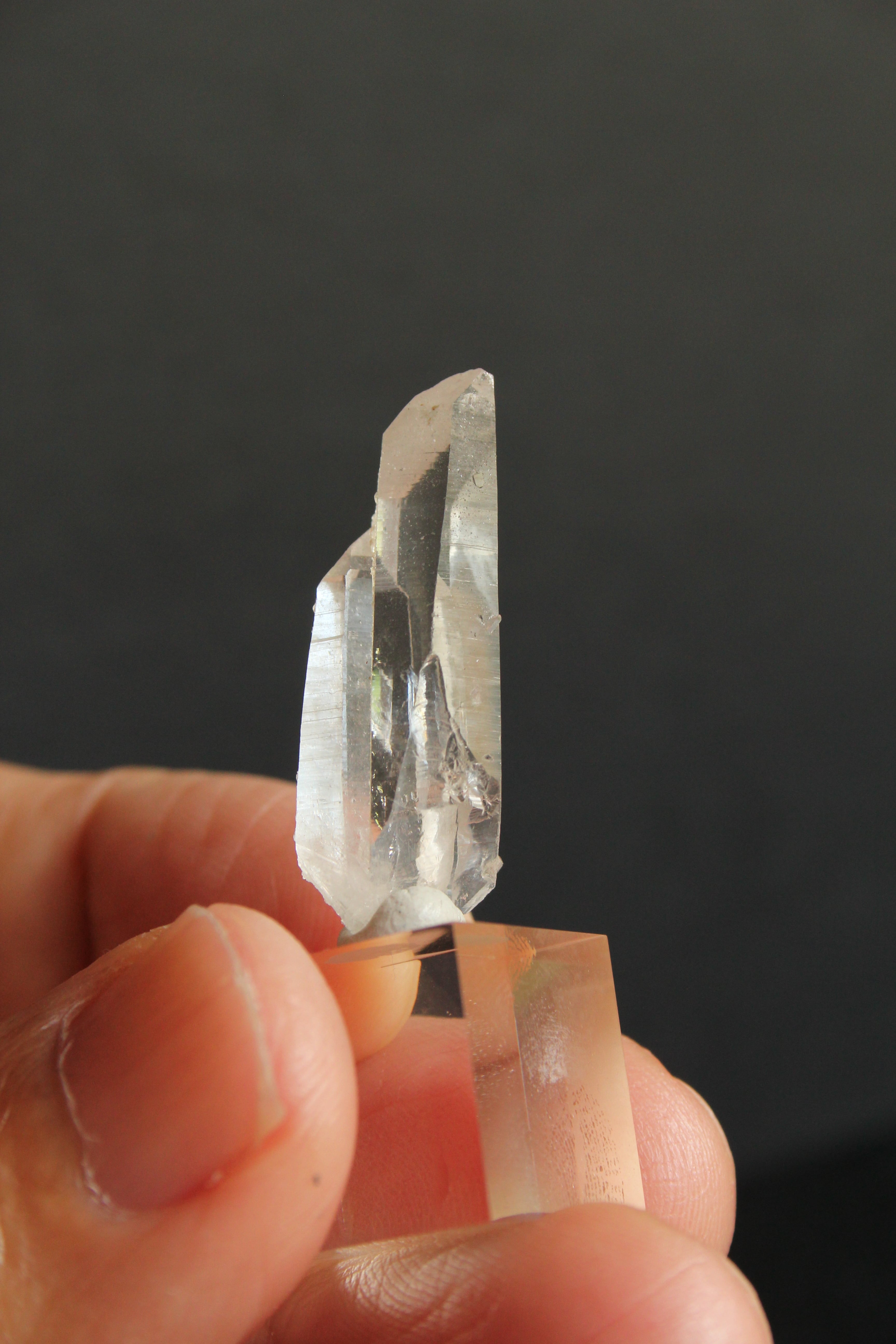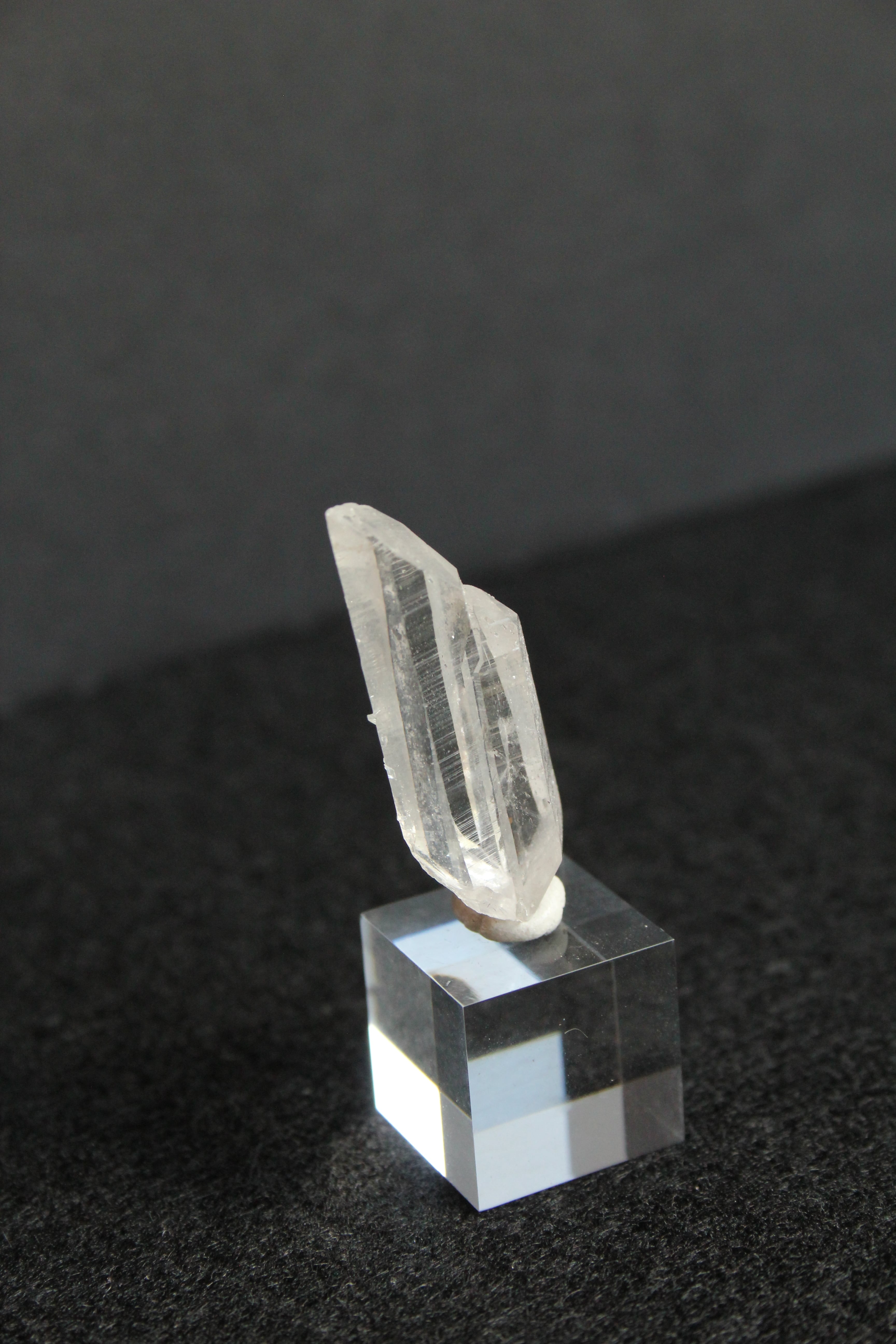 【商品説明】:水晶の原石とアクリルキューブを使用した置物。コロンビアレムリアンを彷彿させるような透明度が高い宮崎県西米良産水晶。2つの水晶がぴったりくっついた感じをしています。アクリルキューブの大きさ(約15x15x15mm)