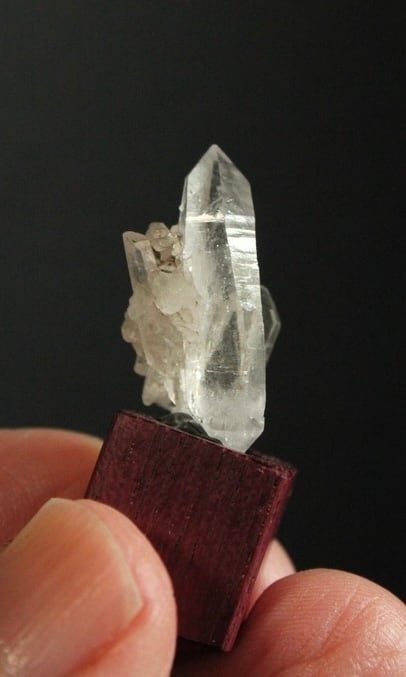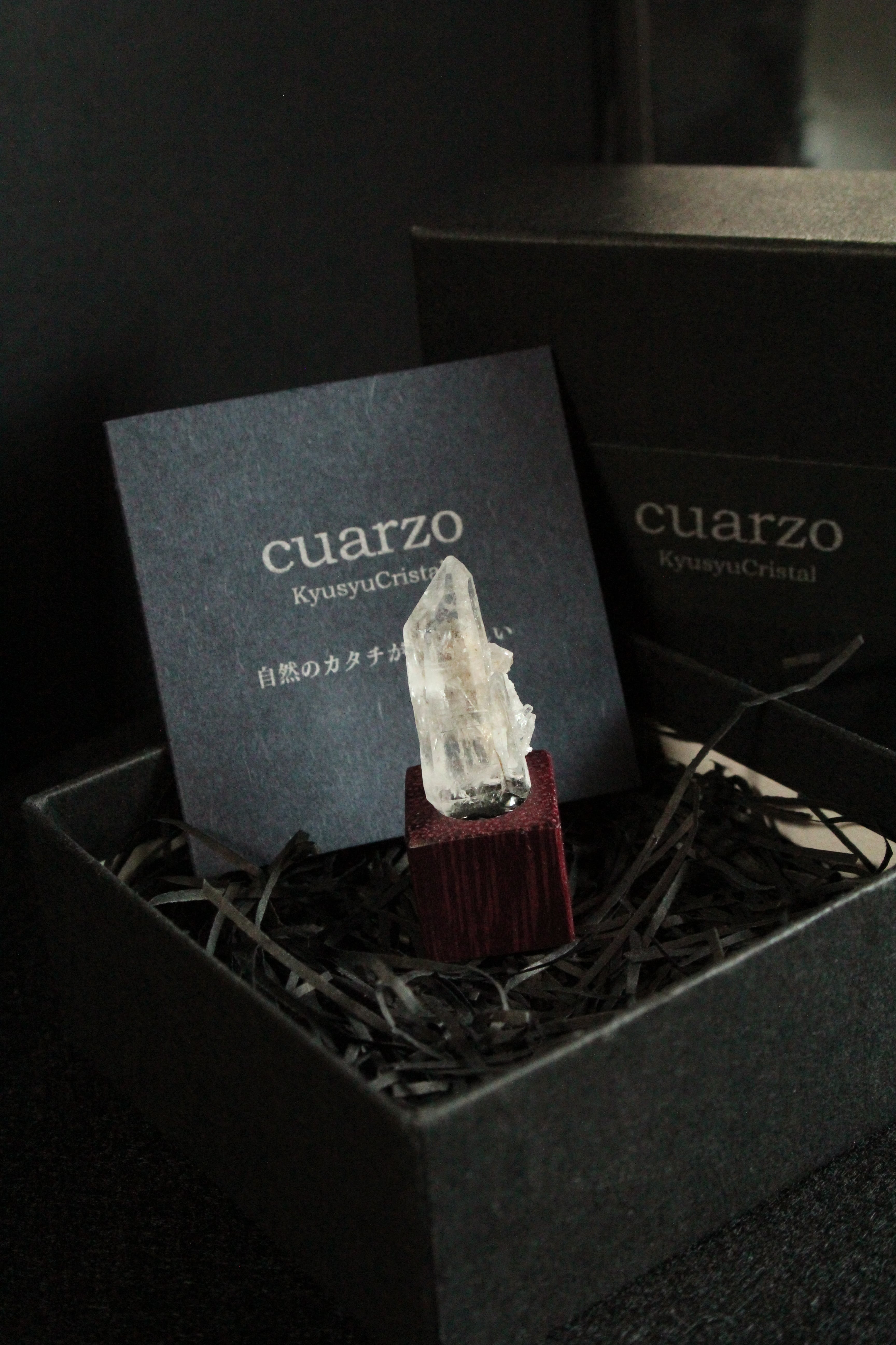 【商品説明】:水晶の原石と高級木材のパープルハートキューブを使用した置物。コロンビアレムリアンを彷彿させるような透明度が高い宮崎産水晶。パープルハートキューブの大きさ(約15x15x15mm)