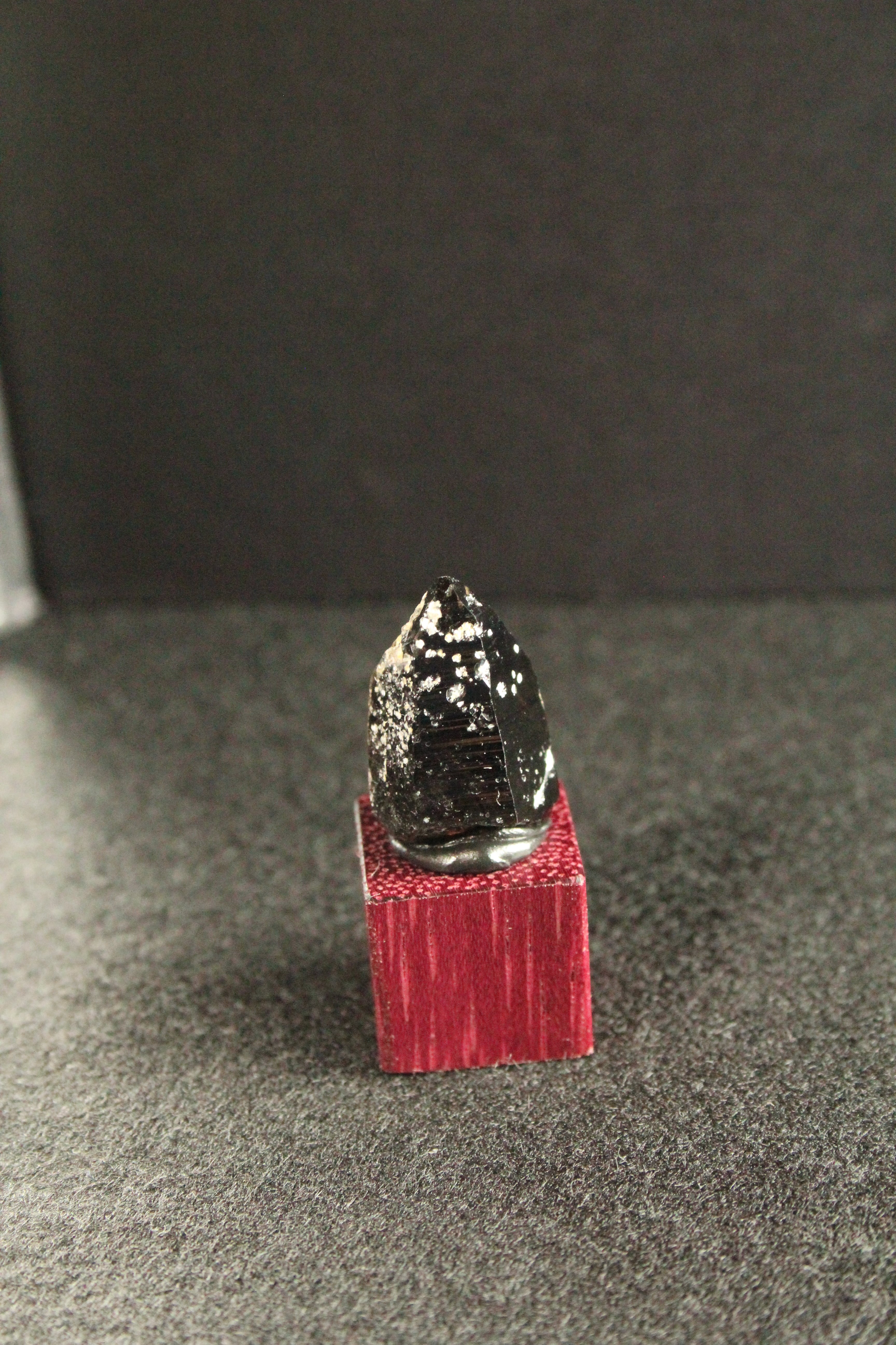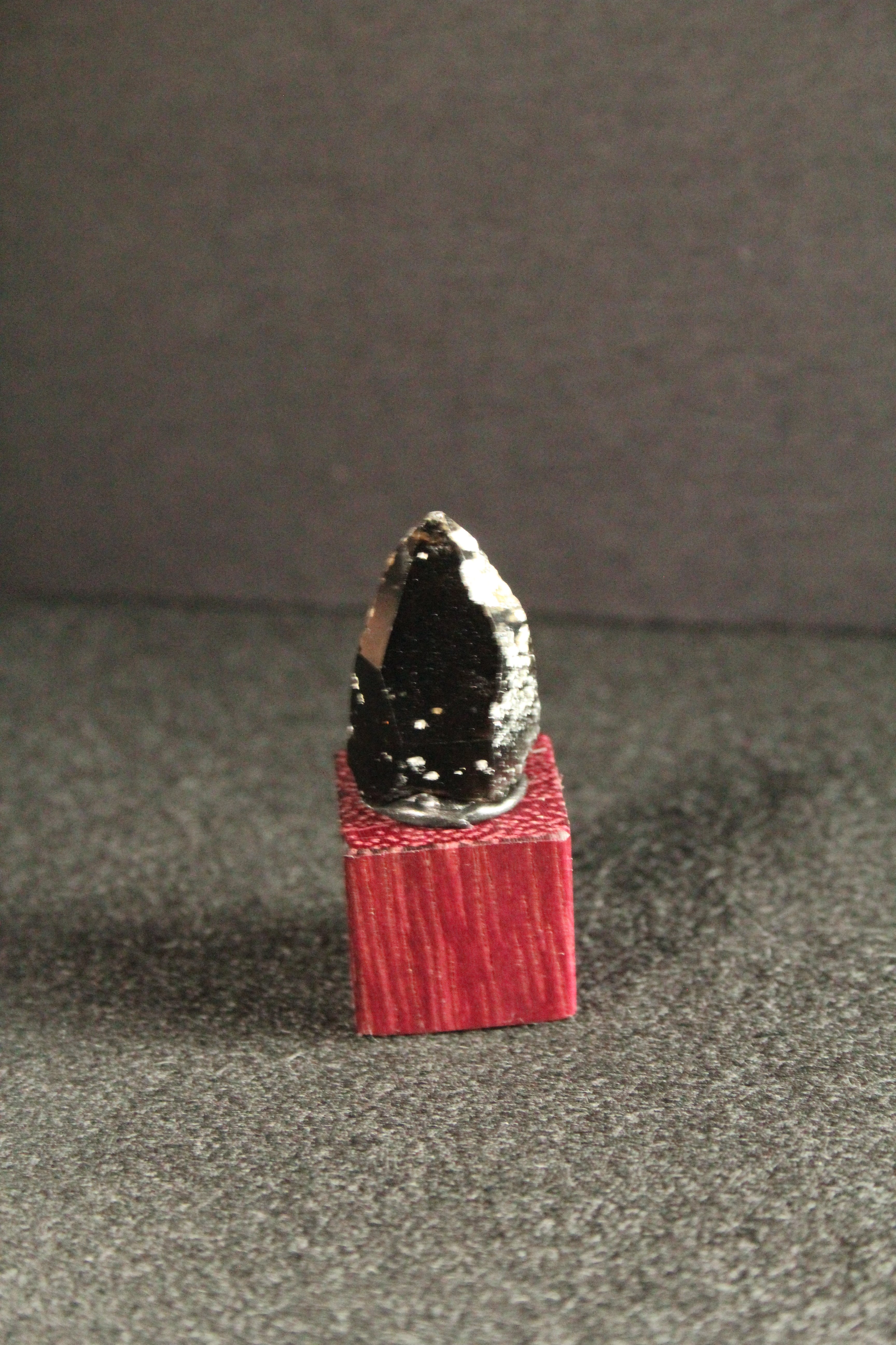 【商品説明】:煙水晶の原石と高級木材のパープルハートキューブを使用した置物。ほぼモリオンに近い感じの宮崎産煙水晶。柱面にまぶしたように付いたキラキラした石英の干渉もワイルド感を出しています。パープルハートキューブの大きさ(約15x15x15mm)