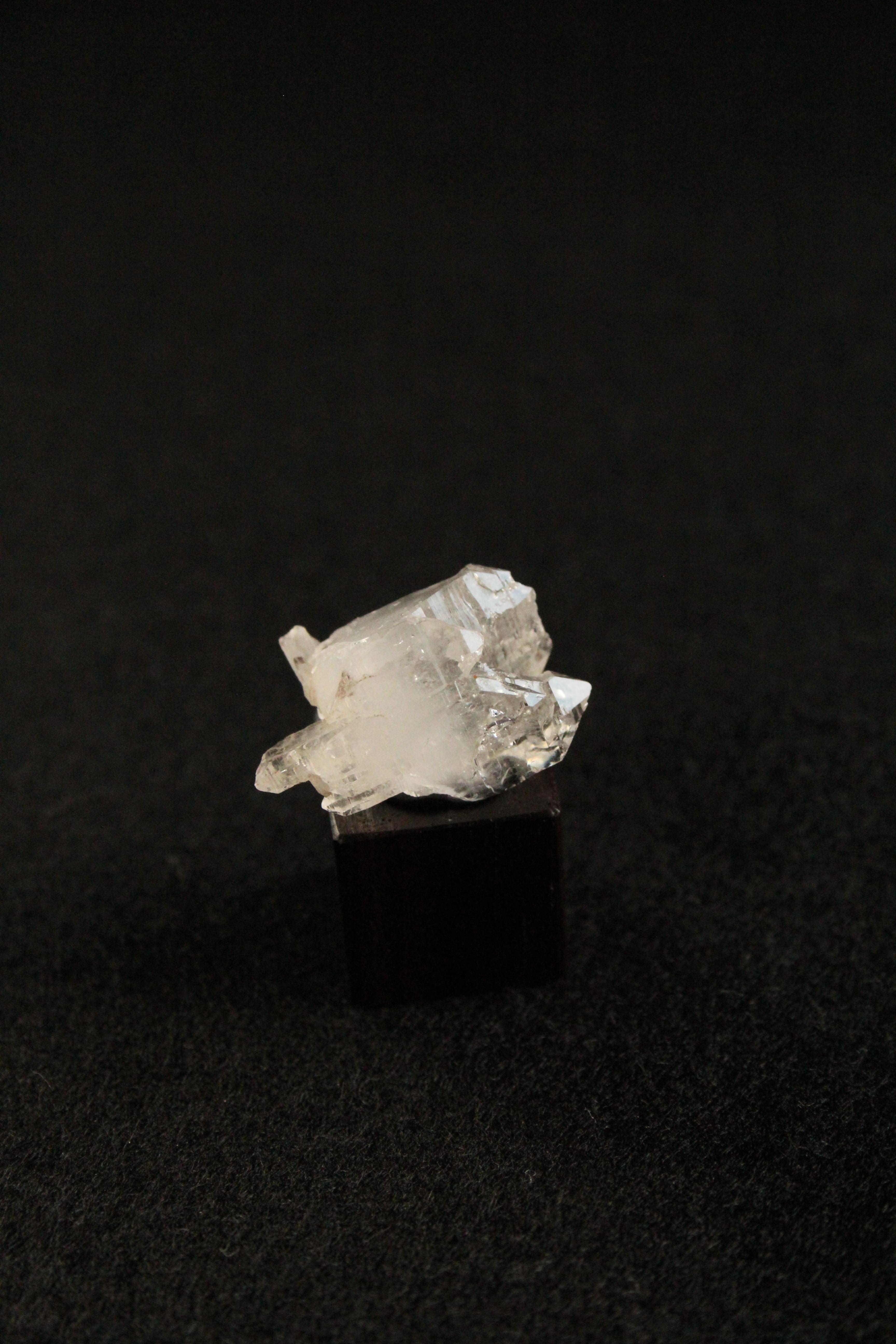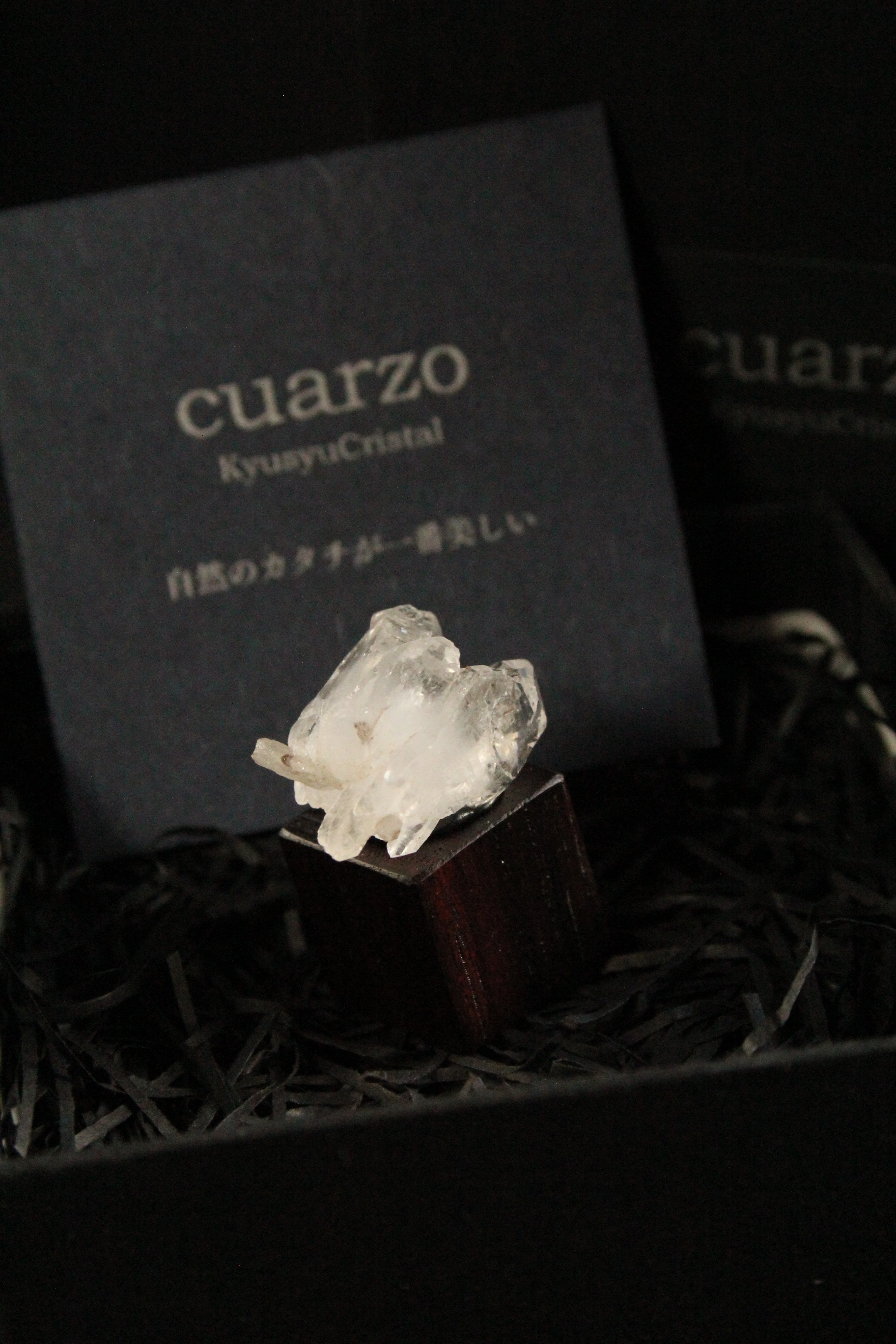 【商品説明】:長崎産水晶の原石と高級木材のローズウッドを使用した置物。この水晶は中に気泡が入ったエレスチャルです。光りを当てるとキラキラ反射してとてもキレイです。パワーストーンでは「水晶の最終形態」「天使からの贈り物」とも呼ばれています。この産地でエレスチャル取れるところは凄く限定的です。コロンとした左右に延びる、かわいい両錐の水晶です。ローズウッドキューブの大きさ(約15x15x15mm)