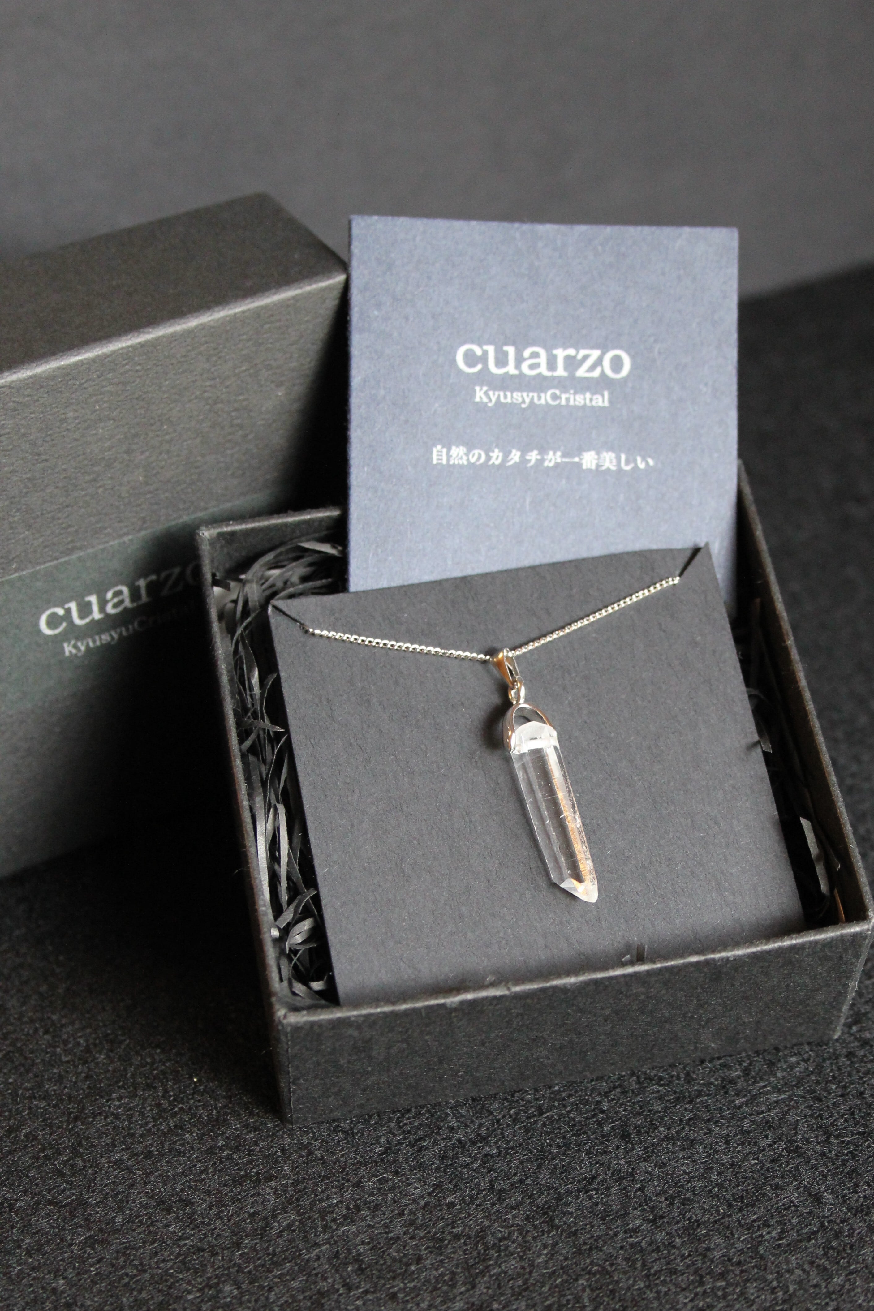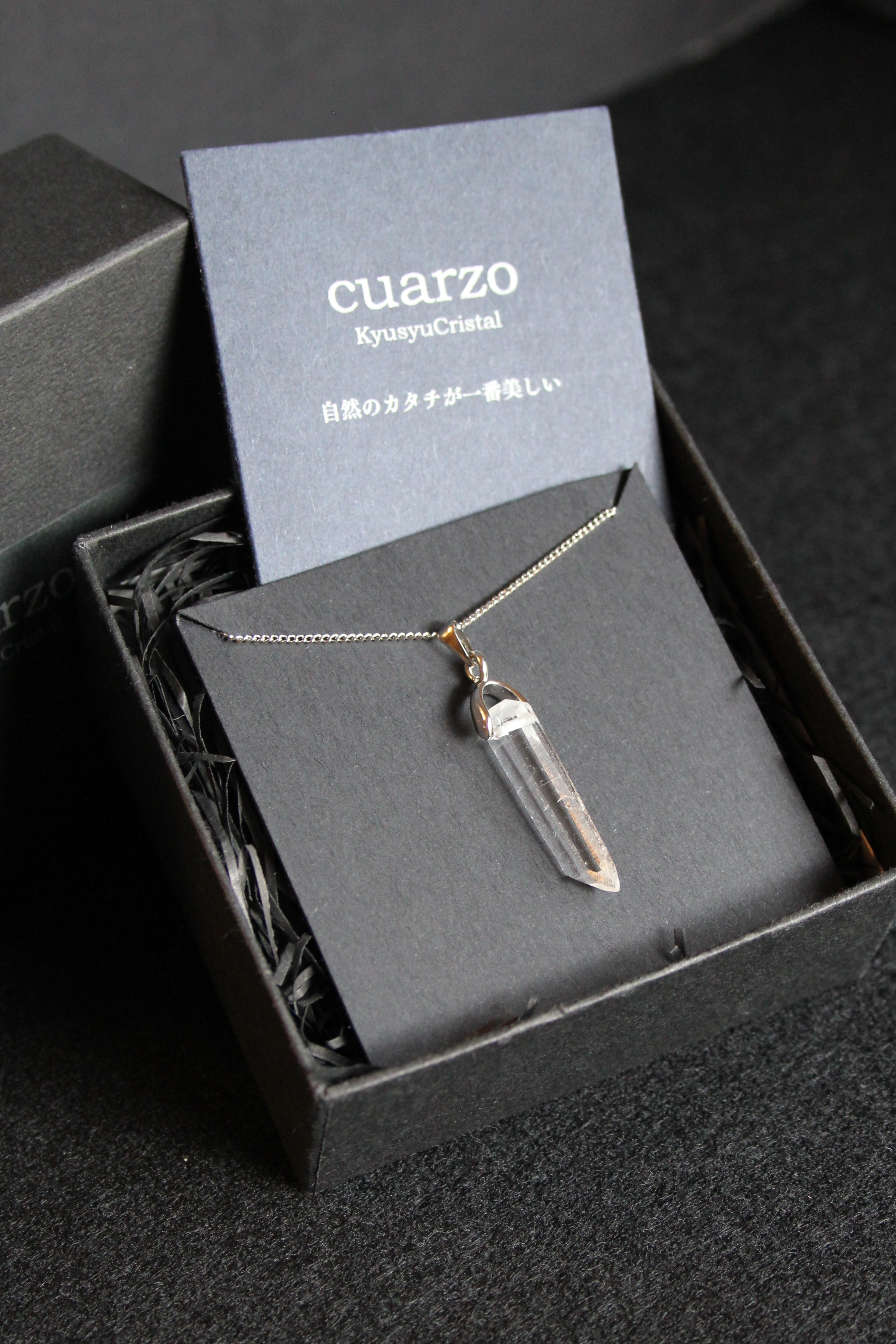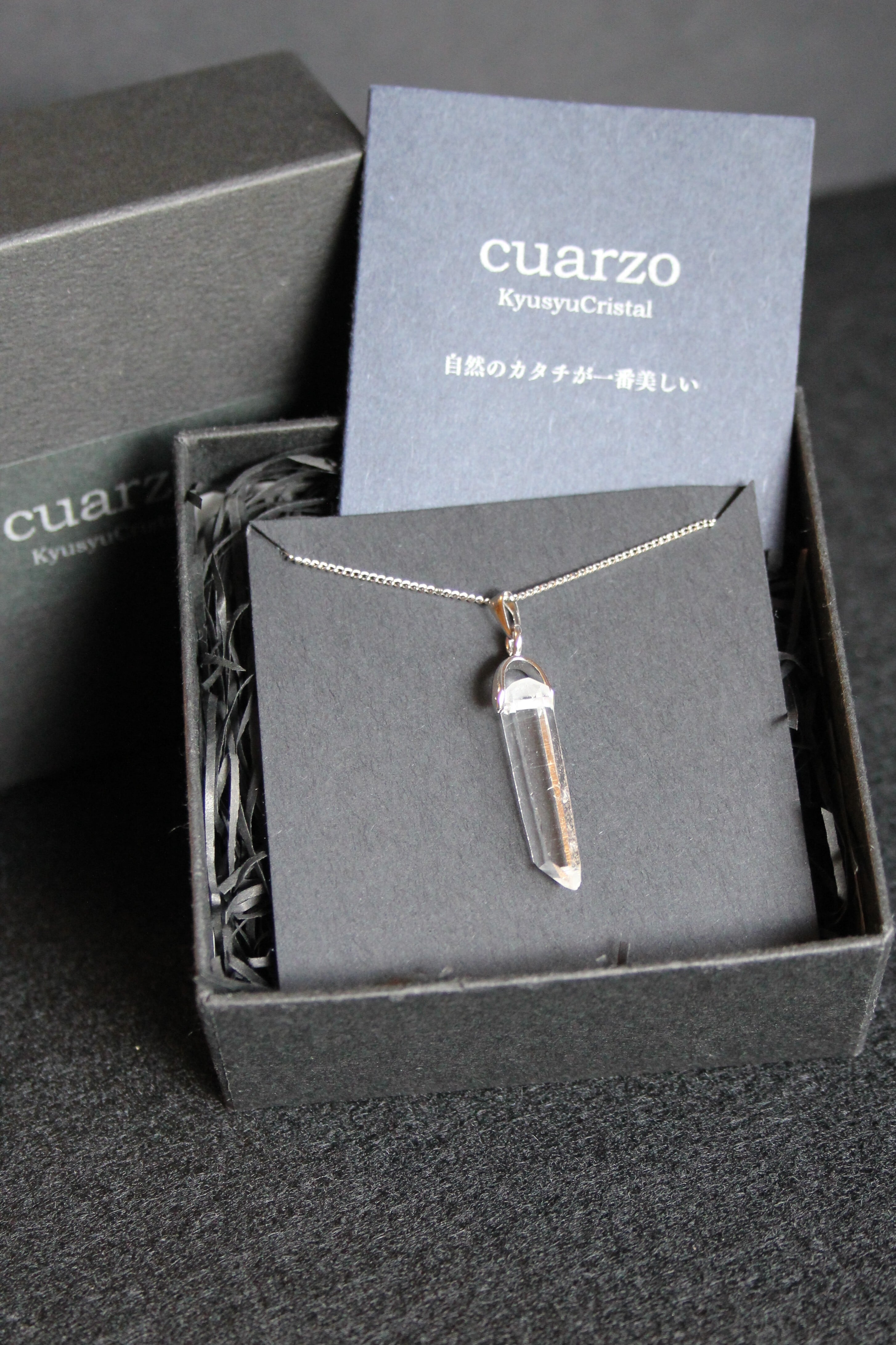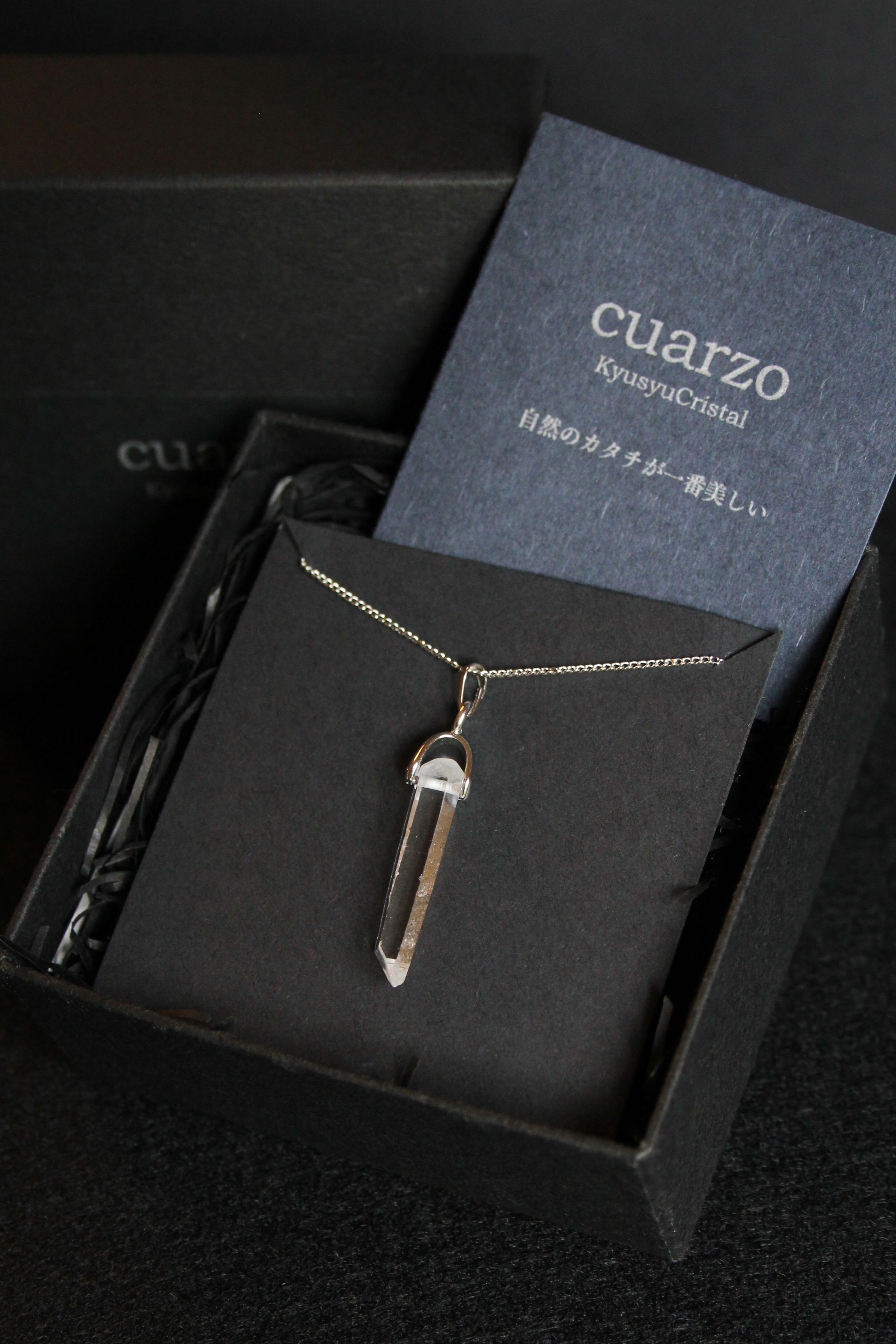 【商品説明】:水晶の原石を使用したネックレス。コロンビアレムリアンを彷彿させるような透明度が高い宮崎県西米良産水晶
