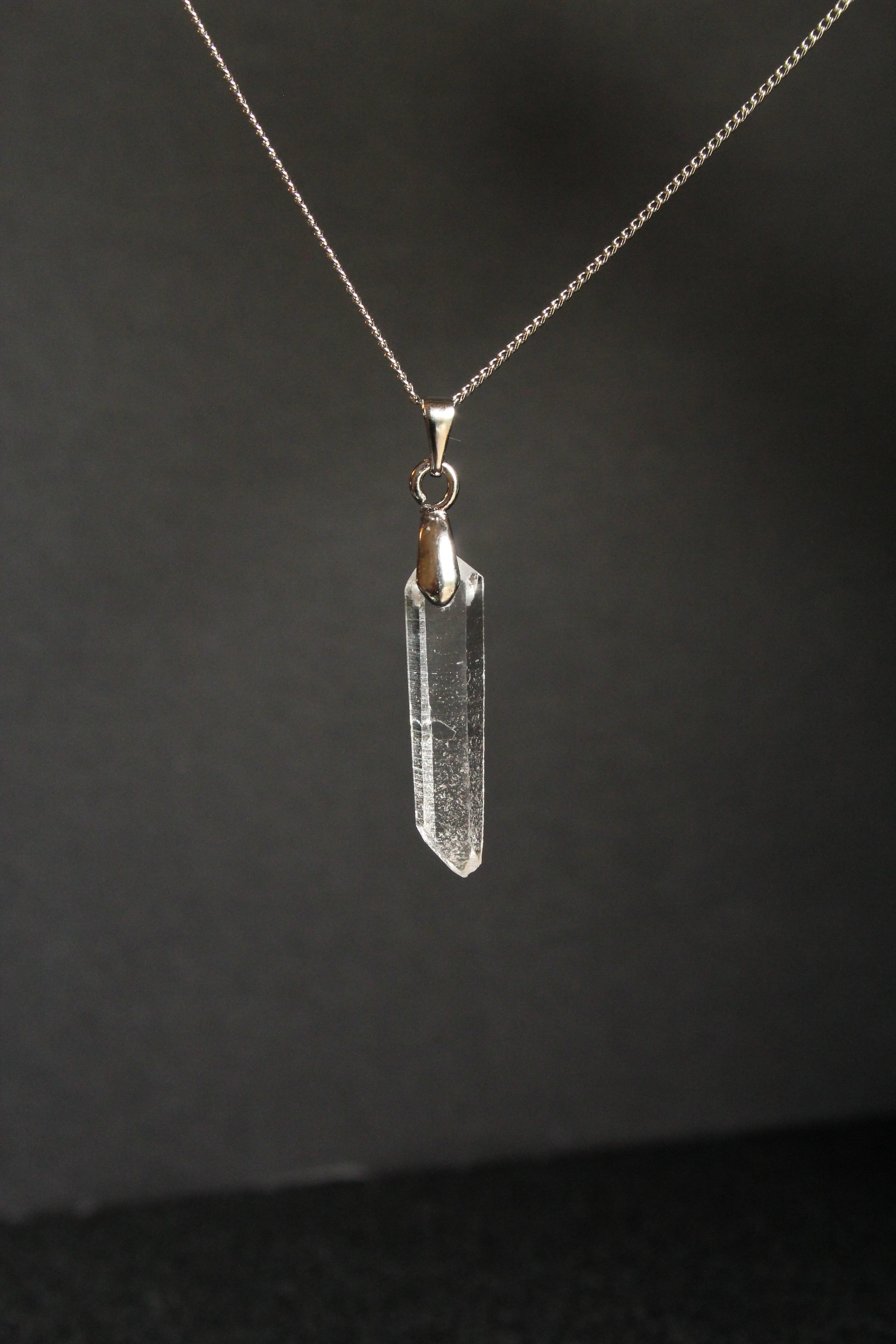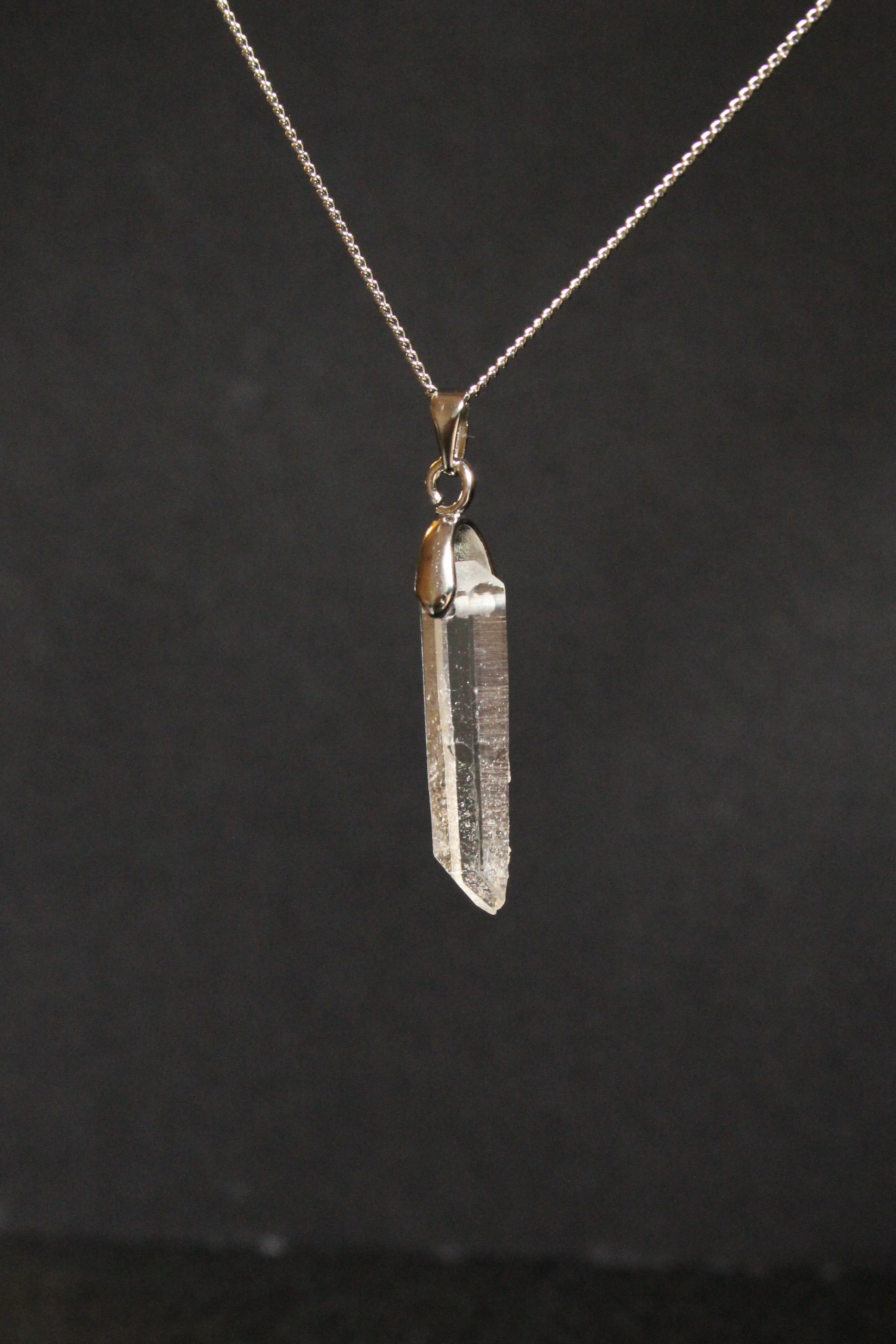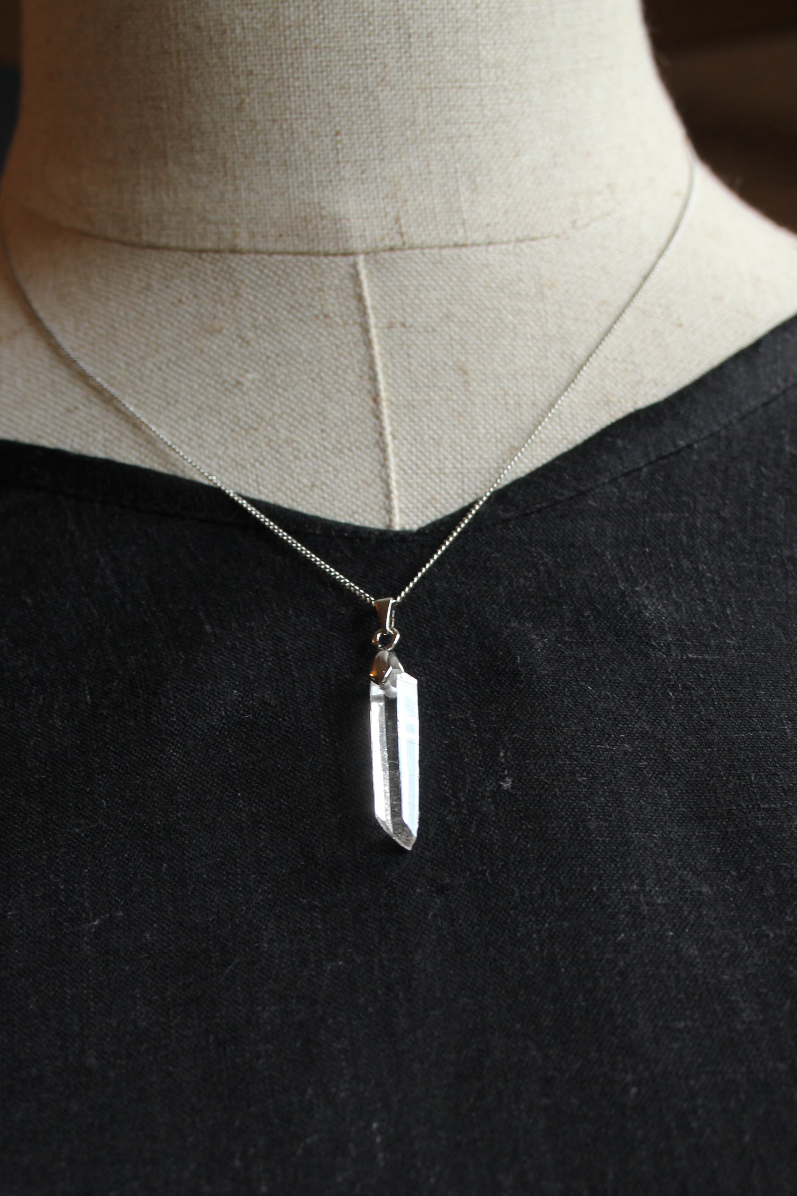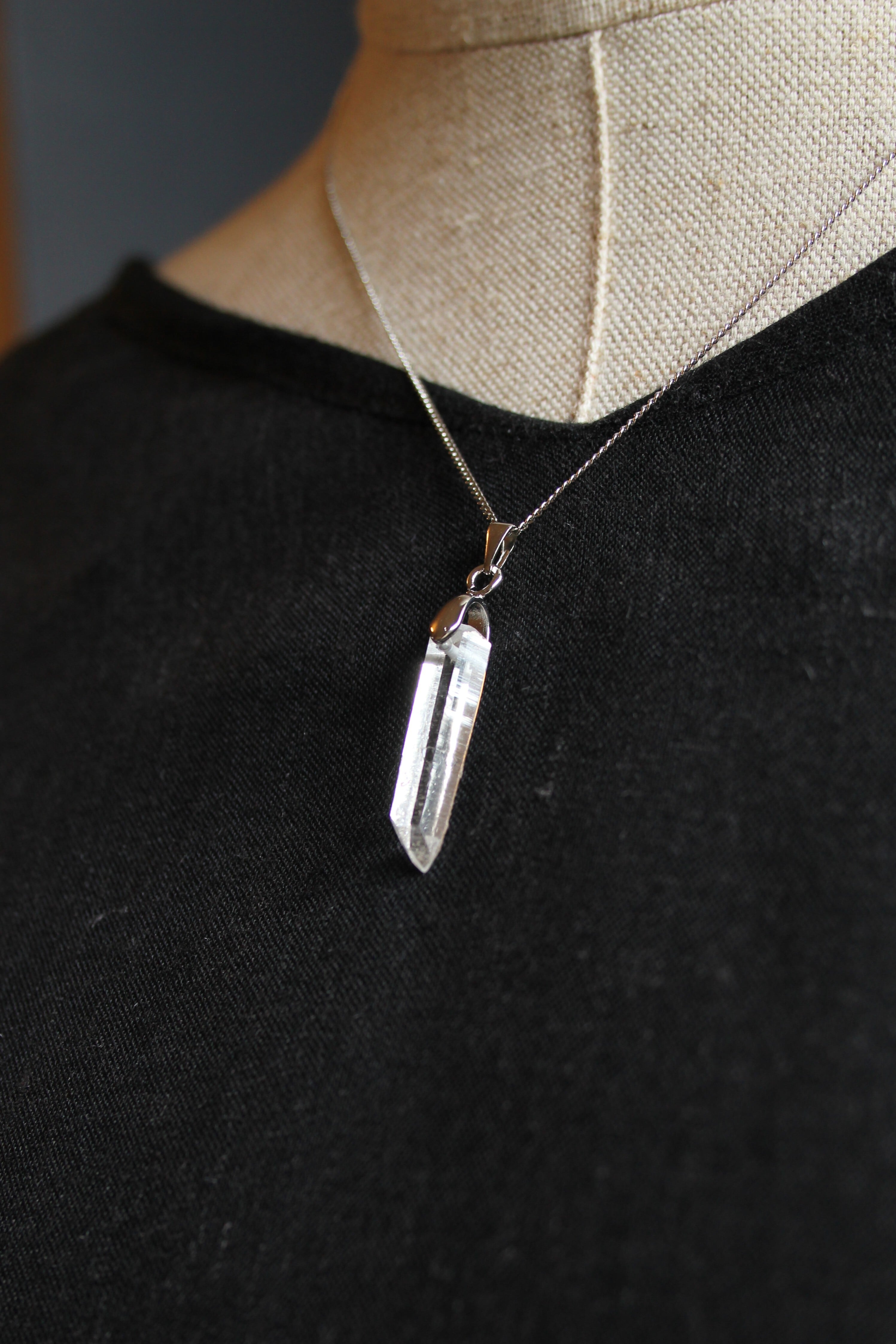 【商品説明】:水晶の原石を使用したネックレス。コロンビアレムリアンを彷彿させるような透明度が高い宮崎県西米良産水晶