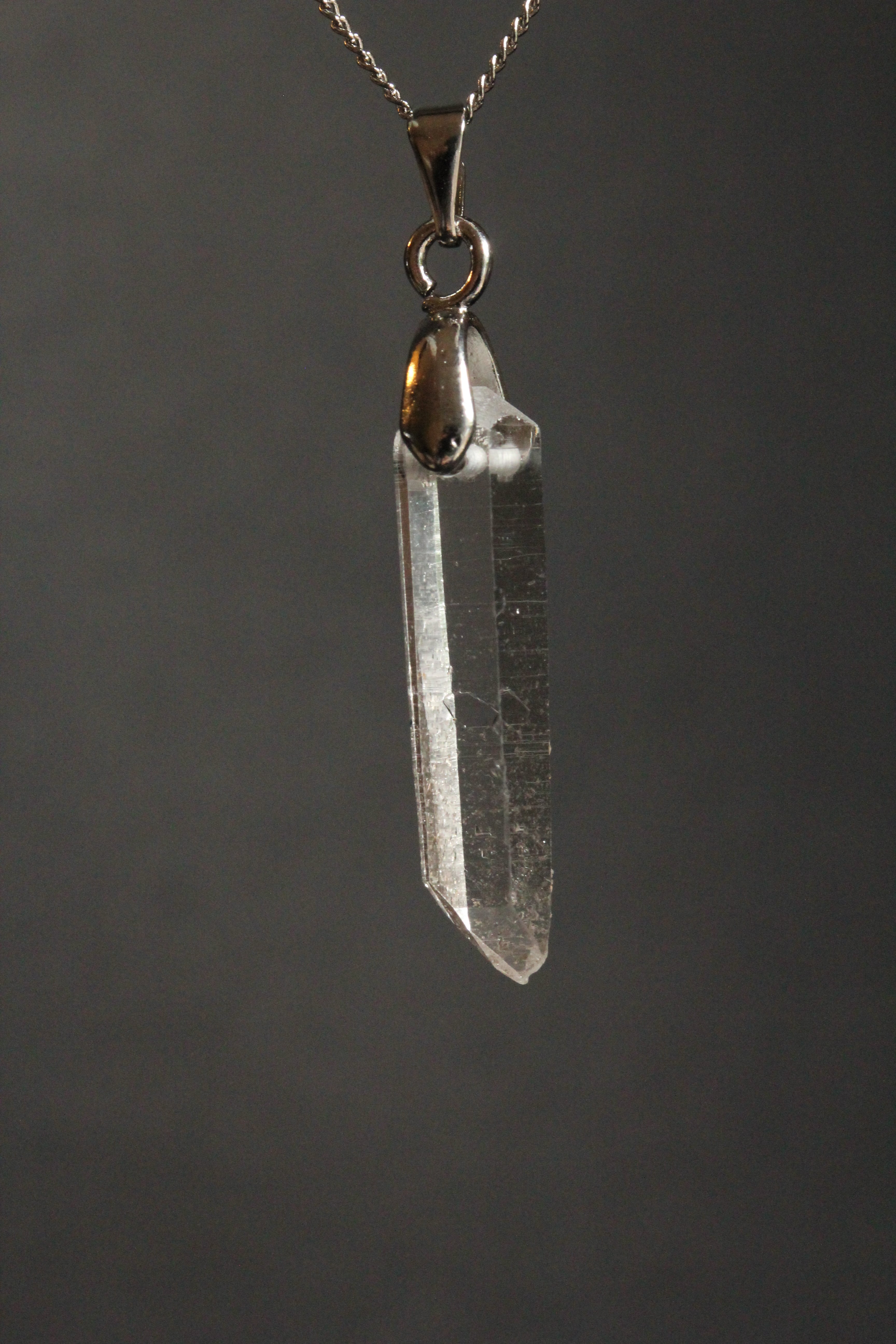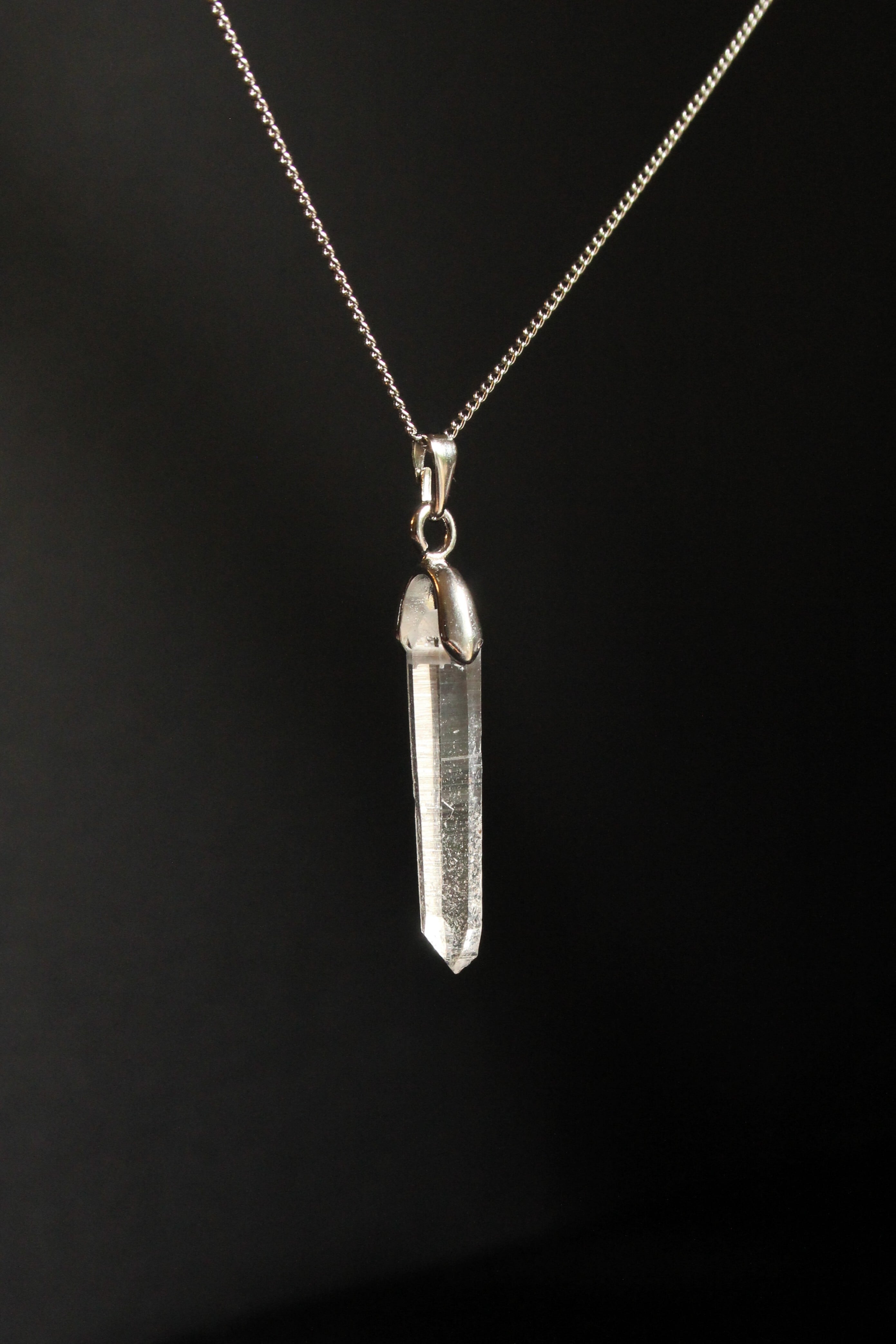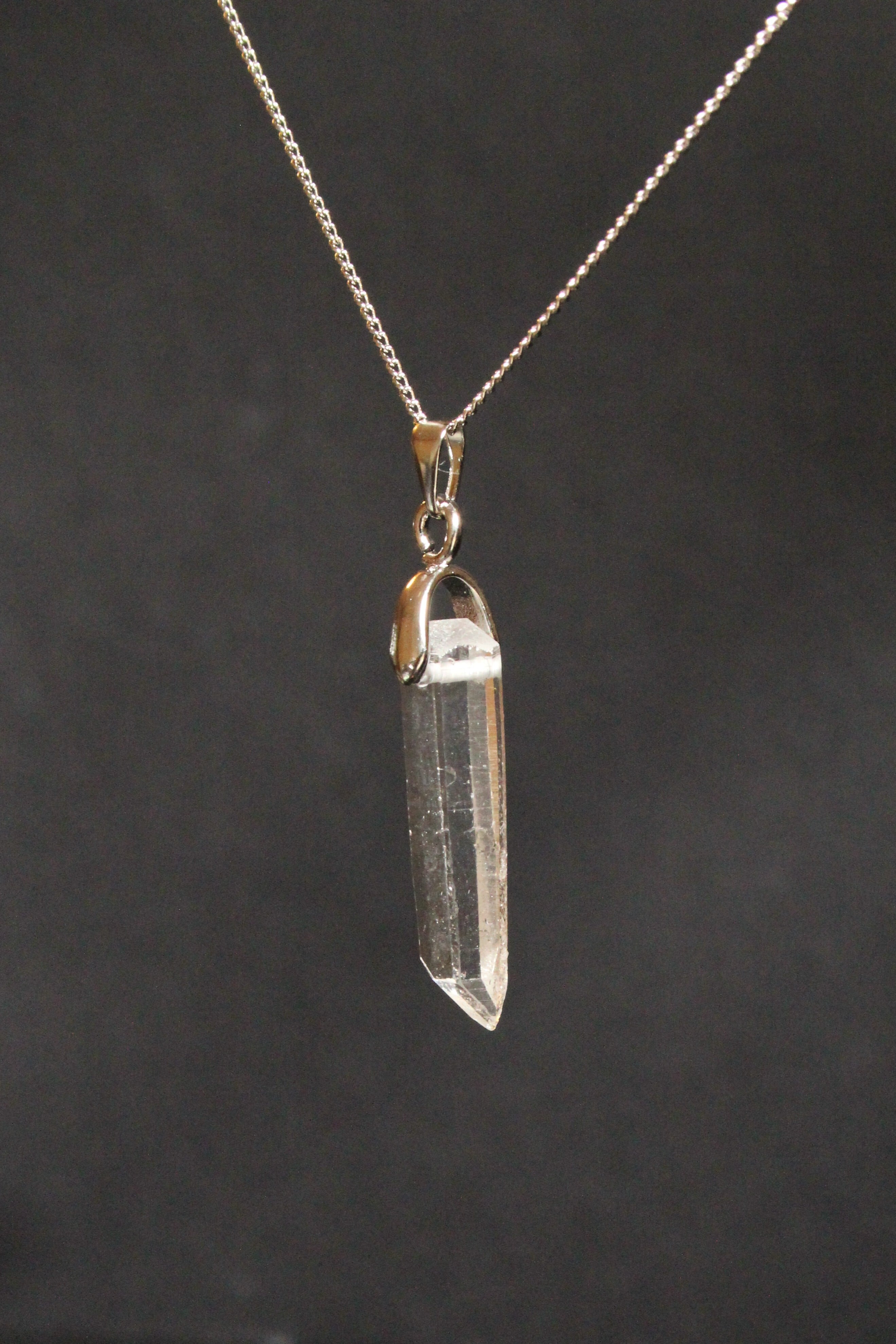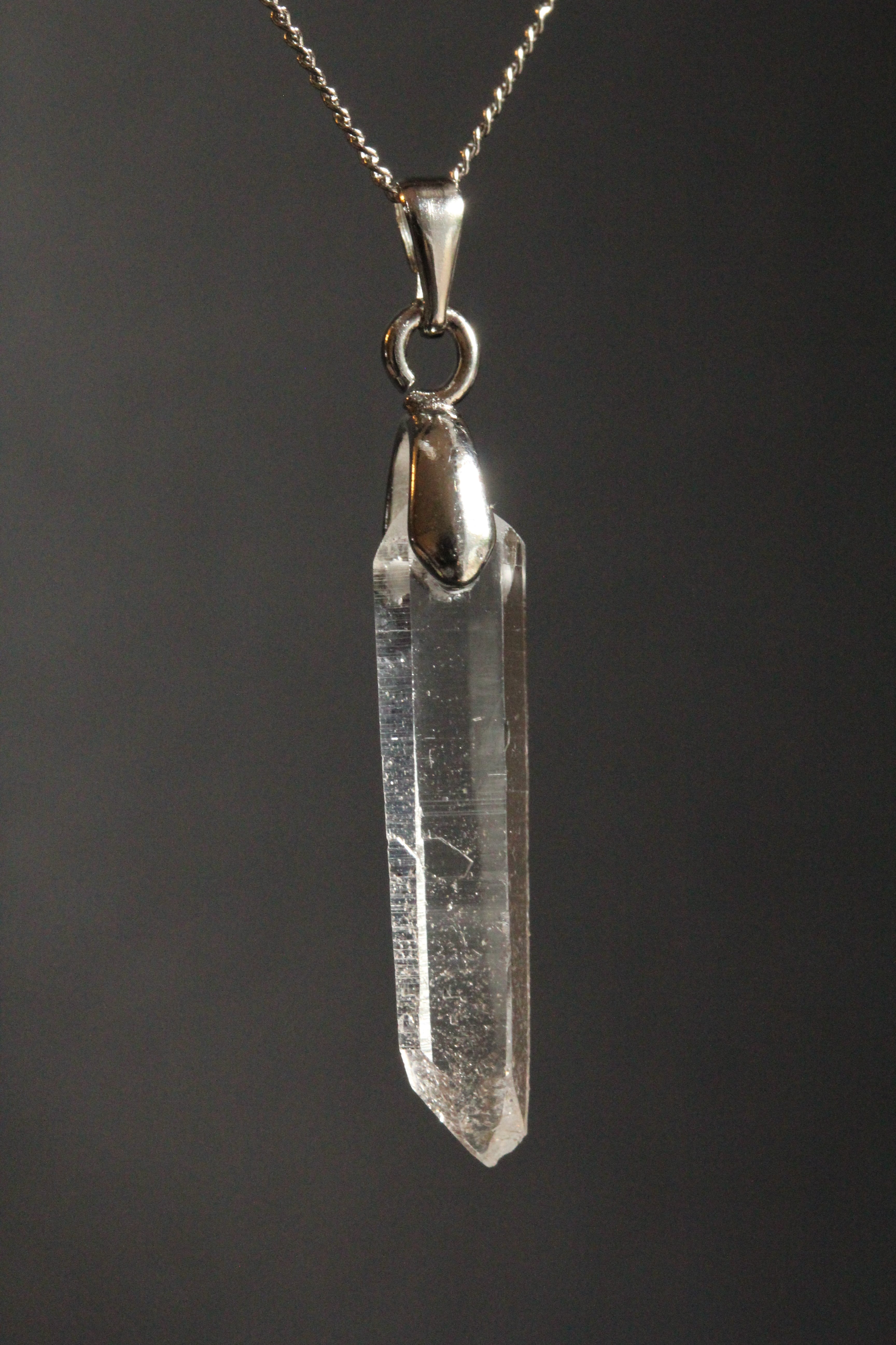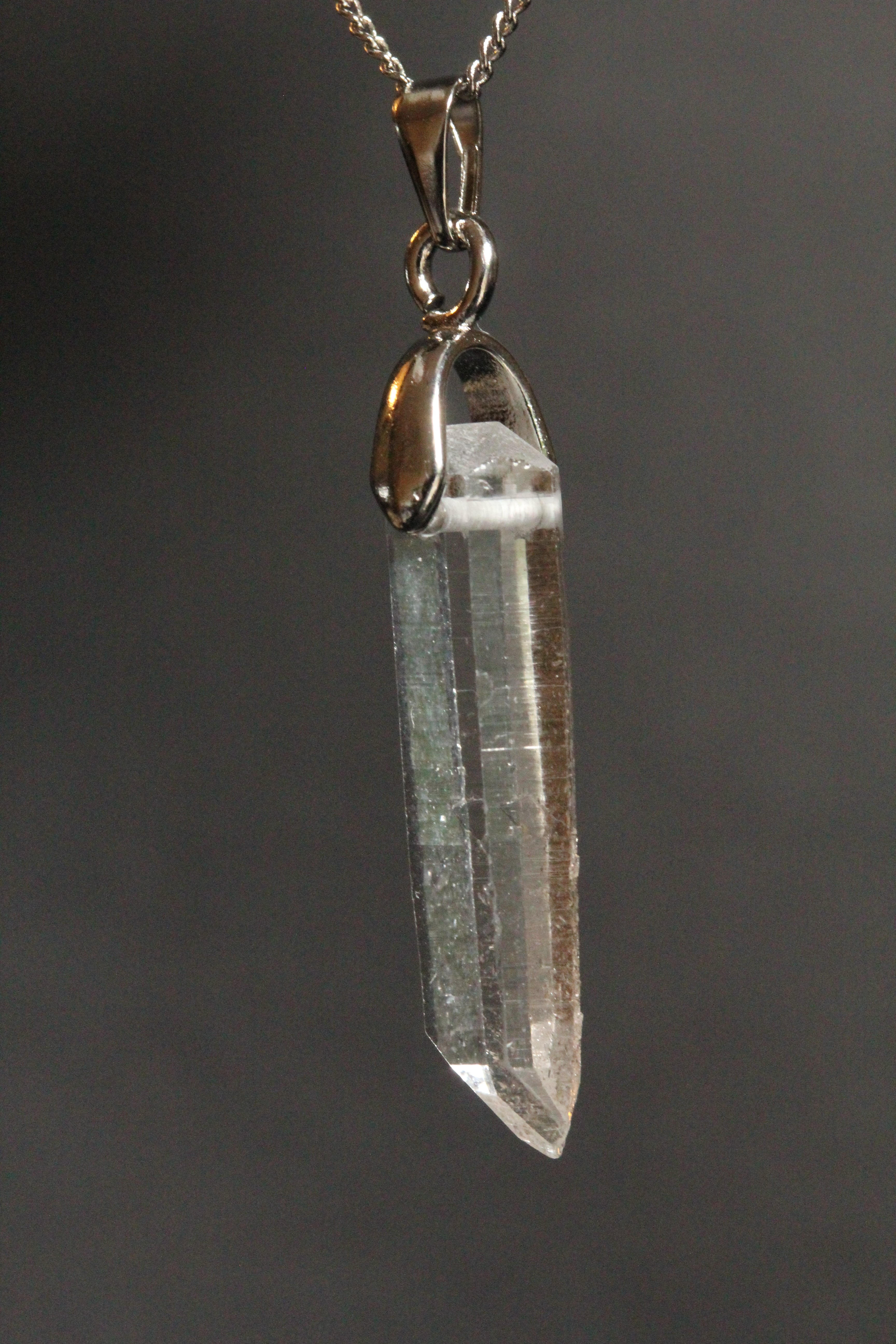 【石と金具の固定方法】:水晶の上部を最低限削り、横穴を開け、金具パーツを差し込んでおります。金具パーツは、Aカンと甲丸バチカンを使用。