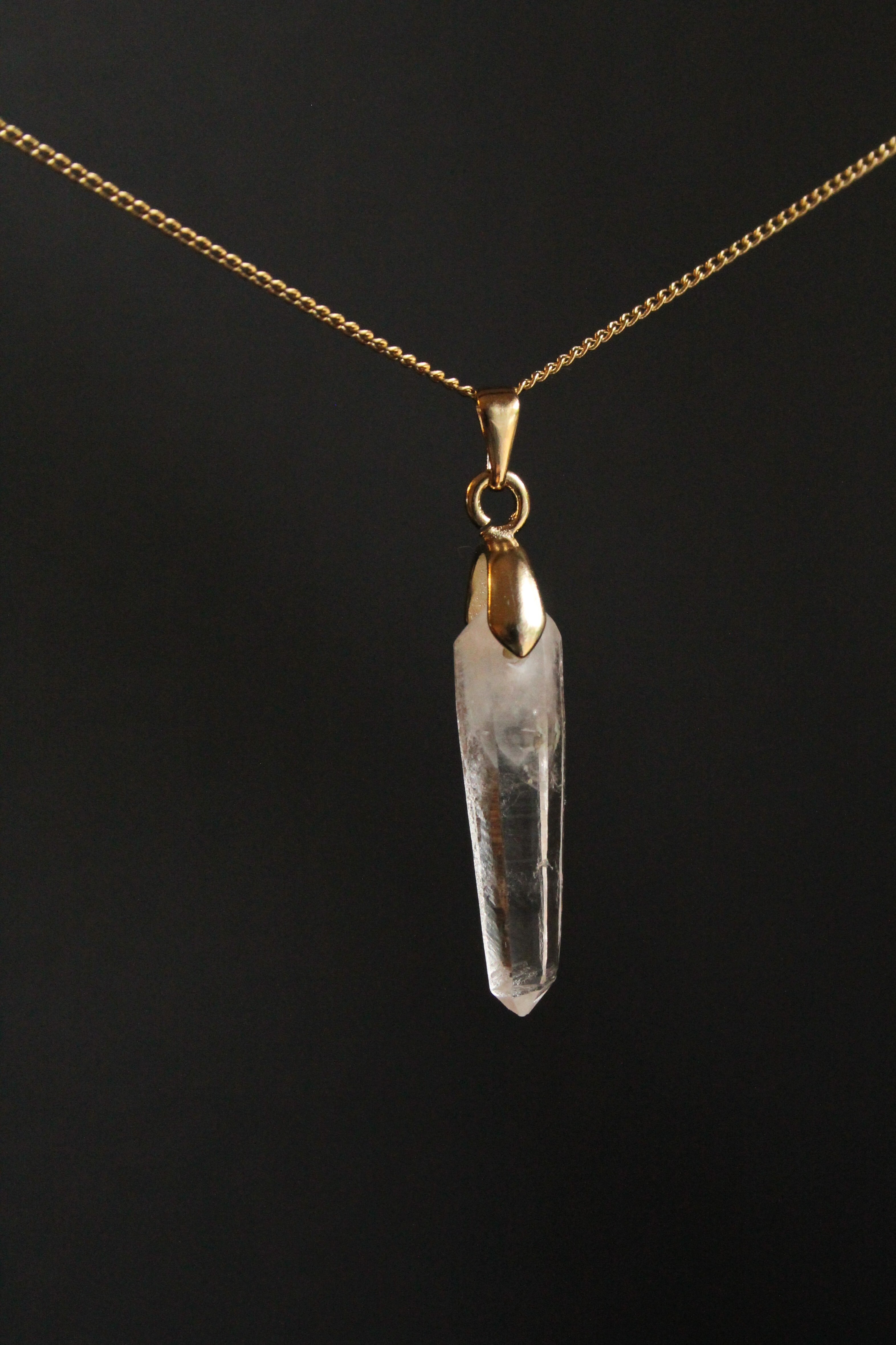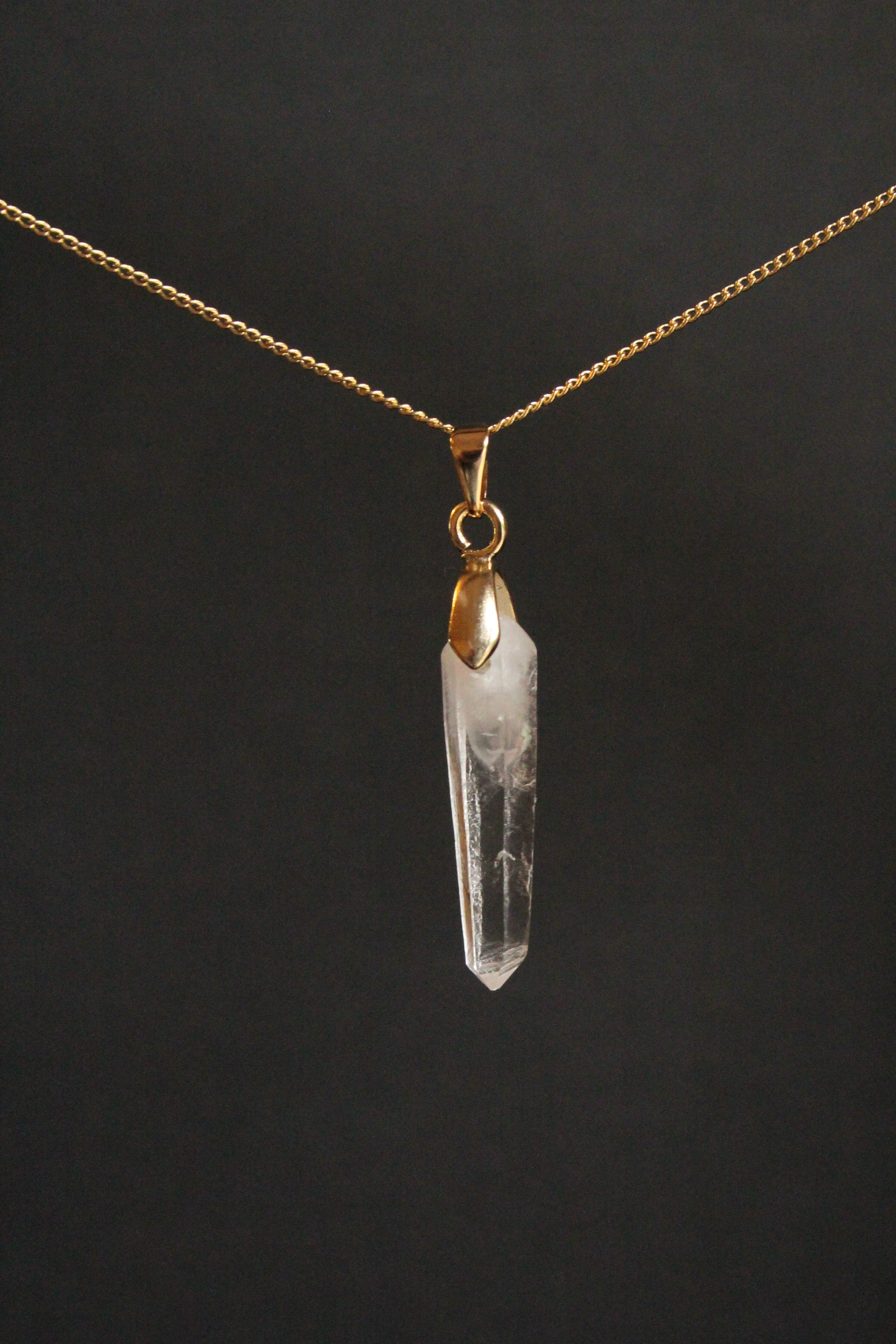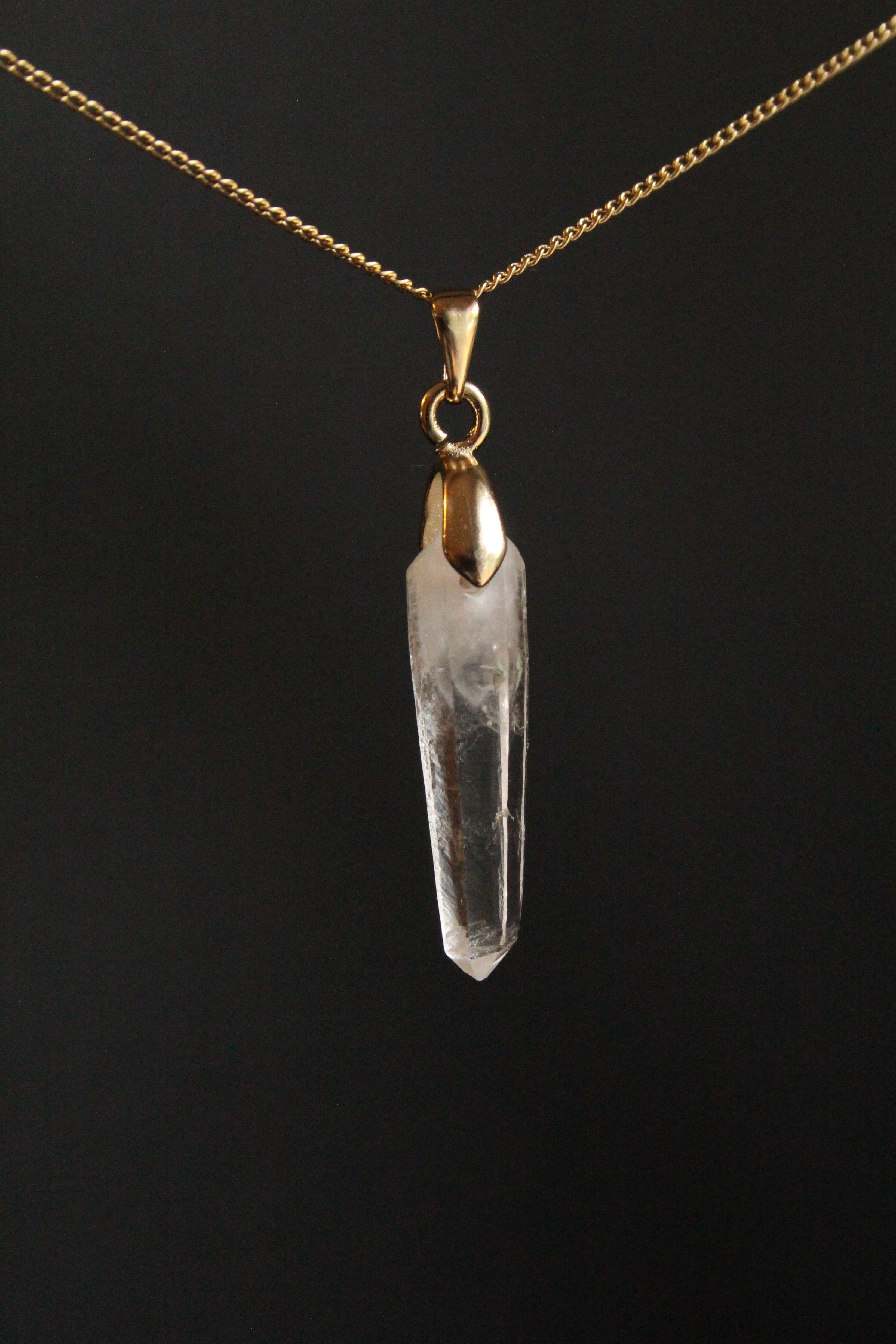 【商品説明】:水晶の原石を使用したネックレス。宮崎クリスタルの中でも、極限られた地域でしか産出されない透明度が抜群に高い日之影町見立産の水晶です。根元に綺麗なファントムが入った、この産地でも貴重な水晶です。