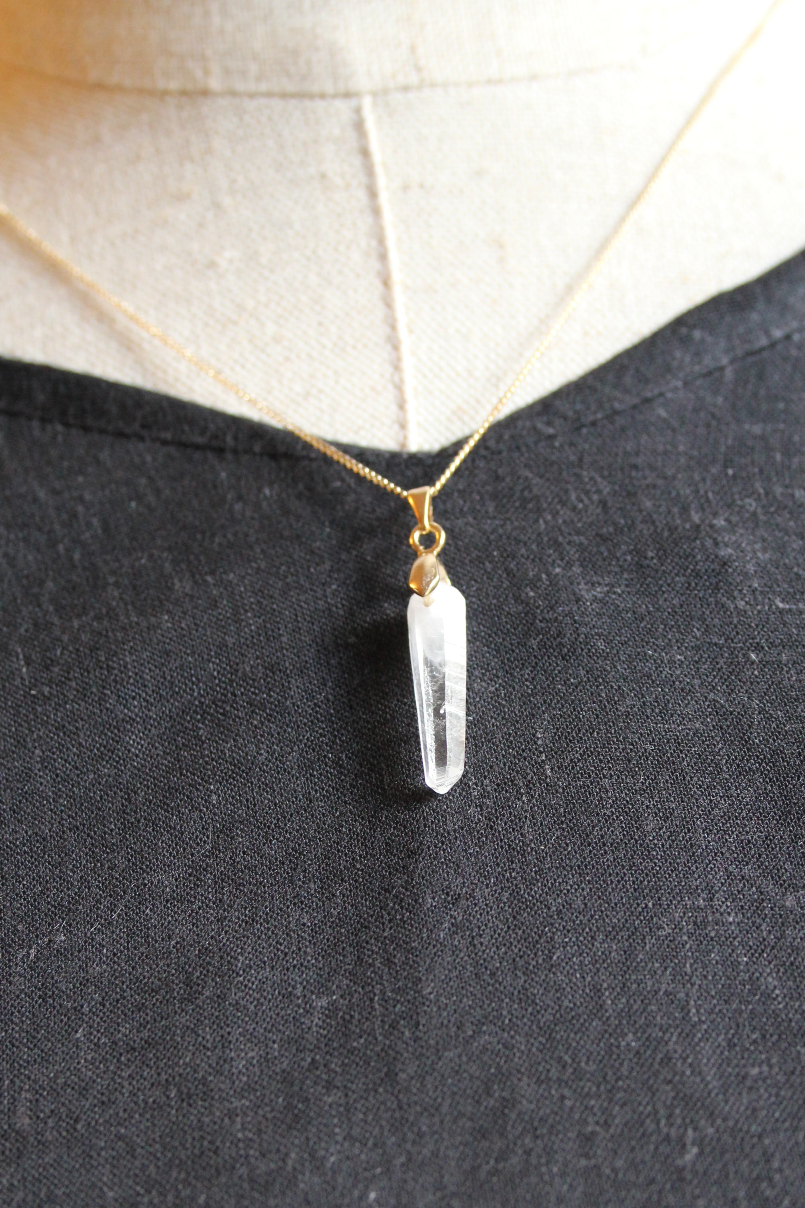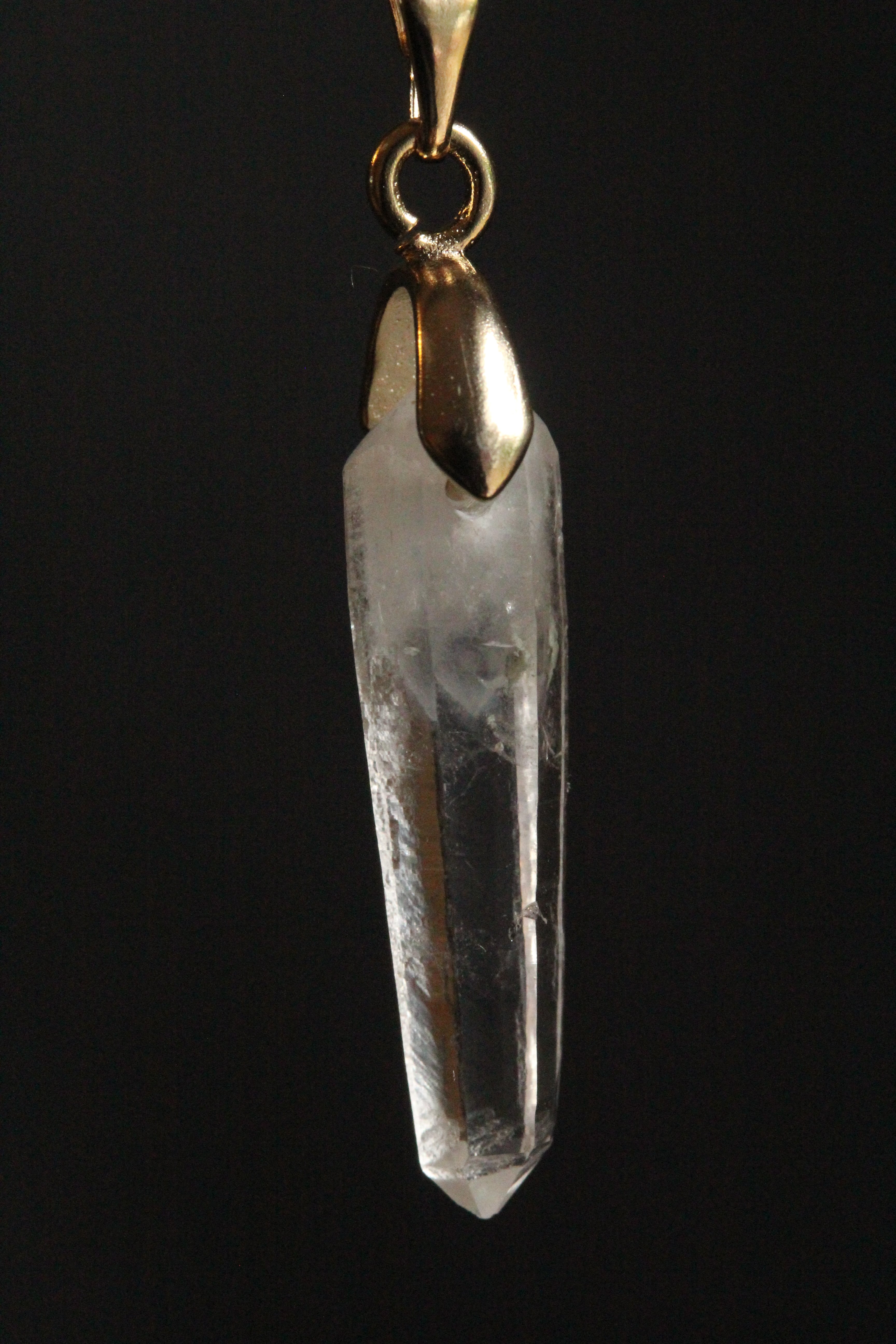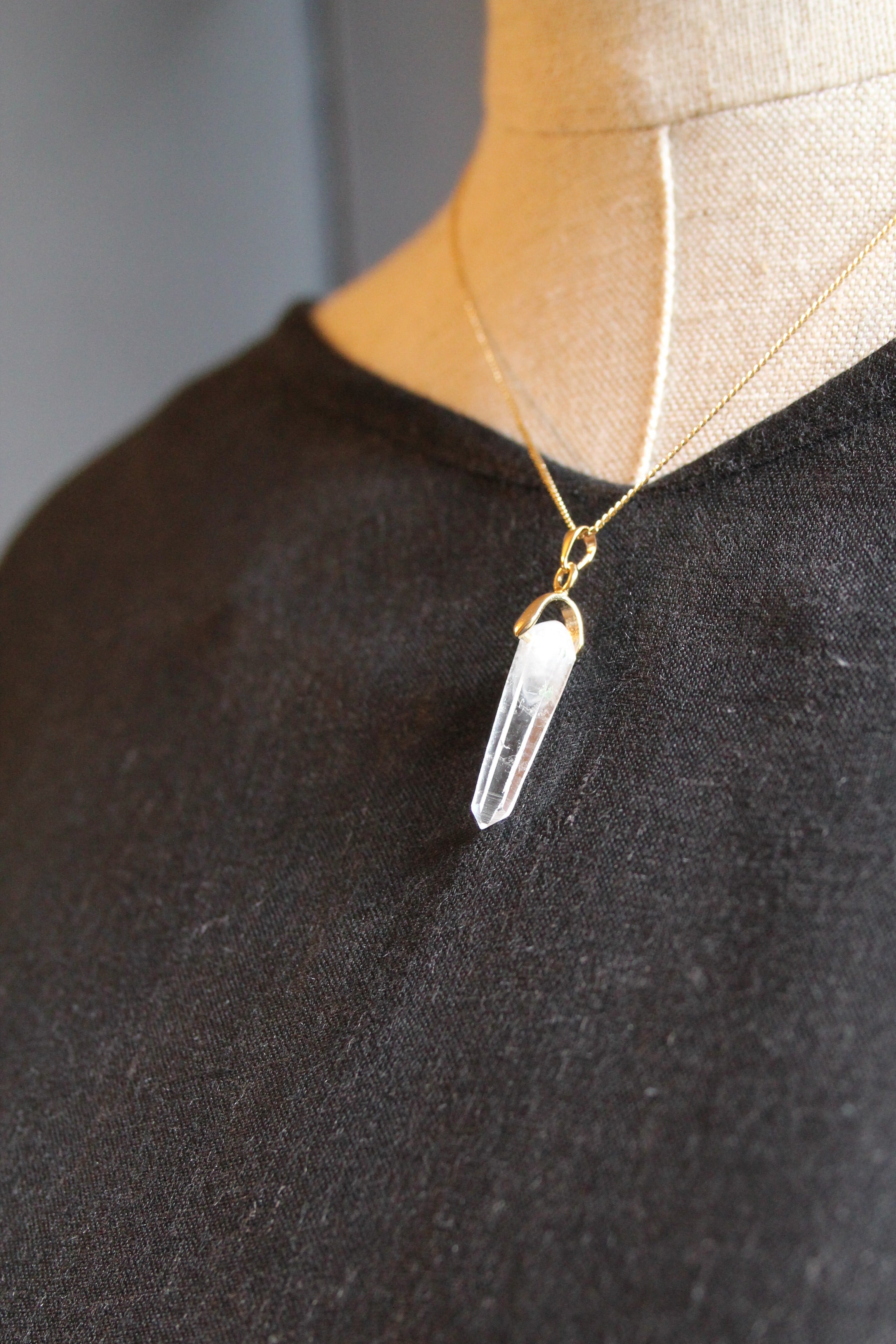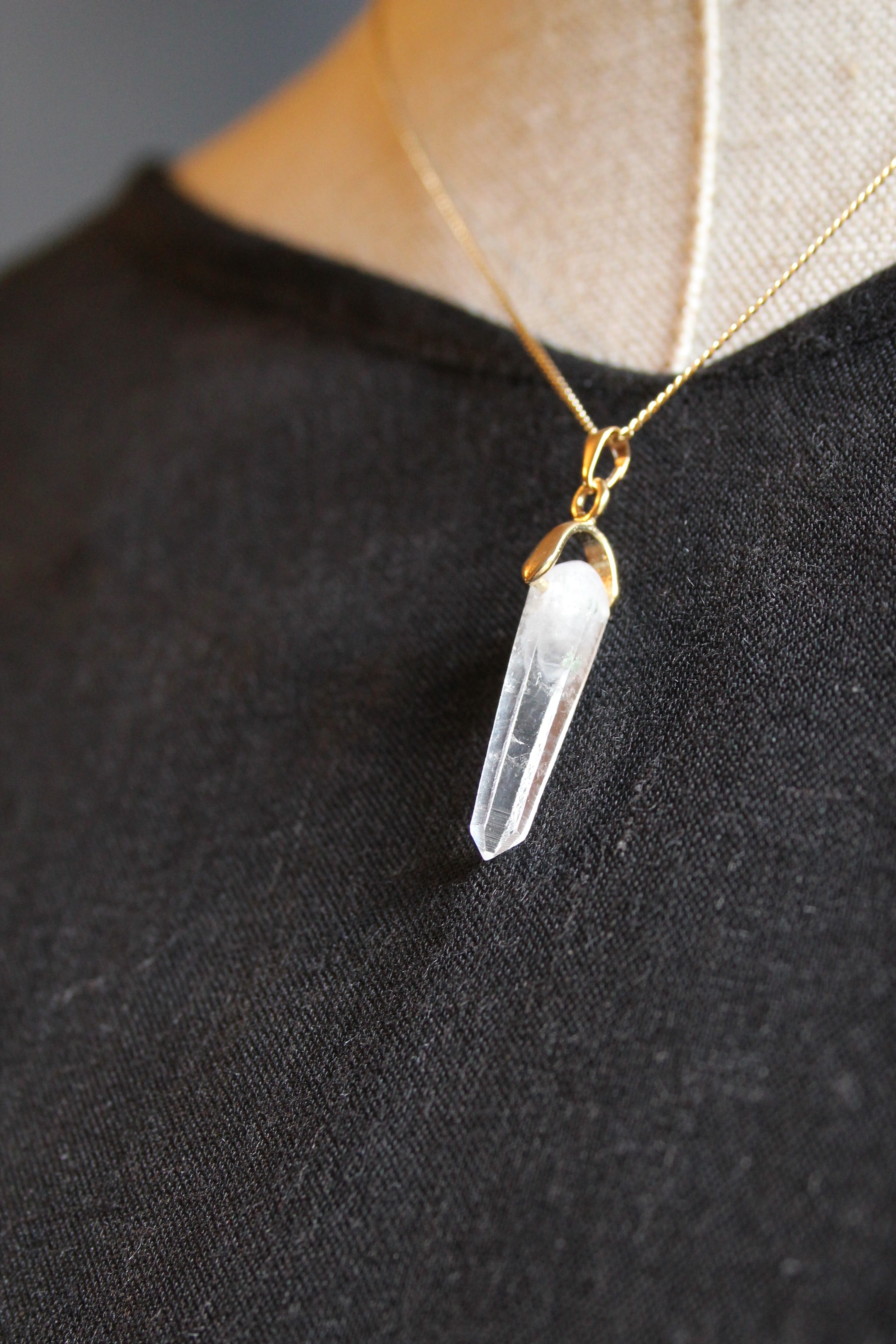 【商品説明】:水晶の原石を使用したネックレス。宮崎クリスタルの中でも、極限られた地域でしか産出されない透明度が抜群に高い日之影町見立産の水晶です。根元に綺麗なファントムが入った、この産地でも貴重な水晶です。