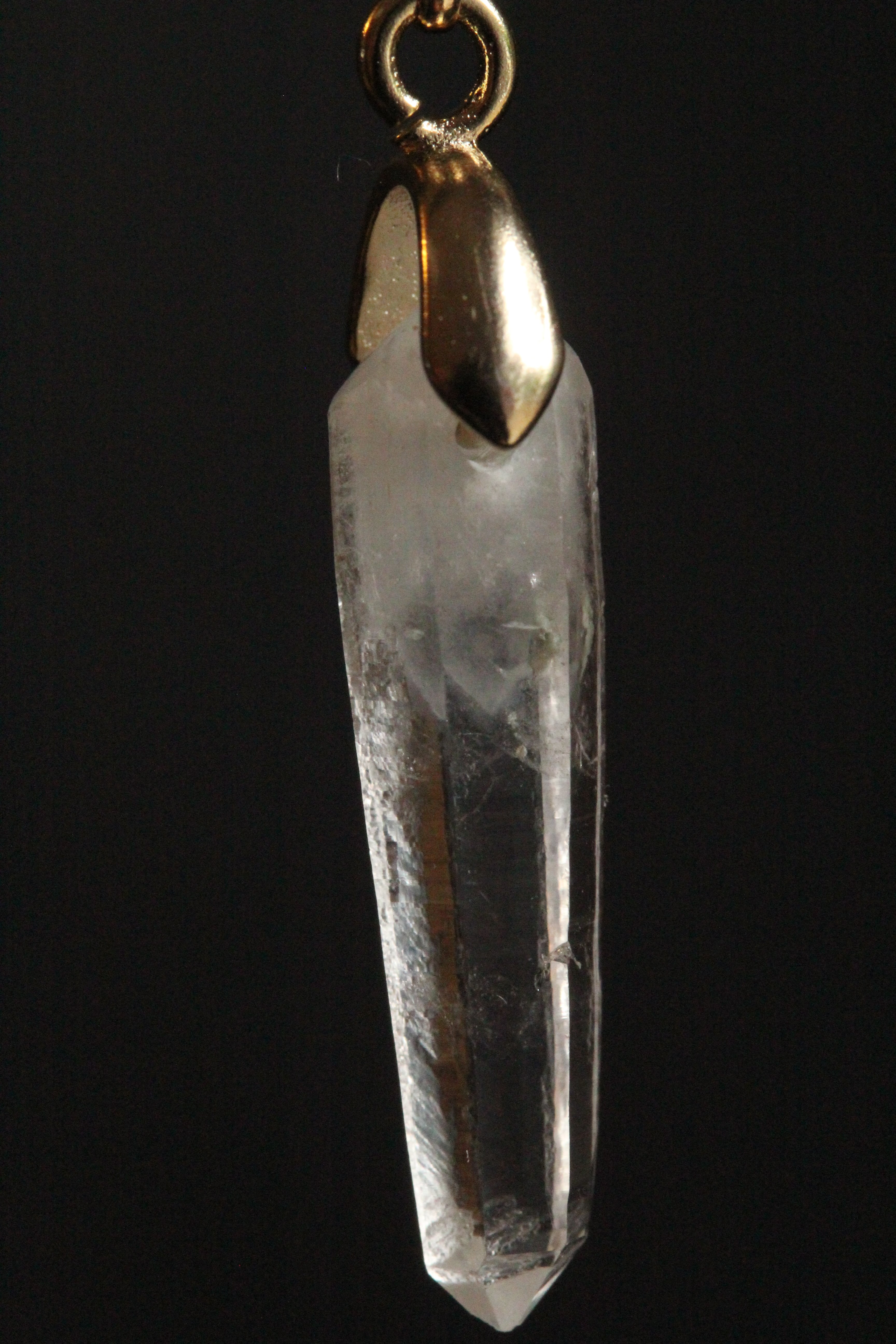 【石と金具の固定方法】:水晶の上部を最低限削り、横穴を開け、金具パーツを差し込んでおります。金具パーツは、Aカンと甲丸バチカンを使用。
