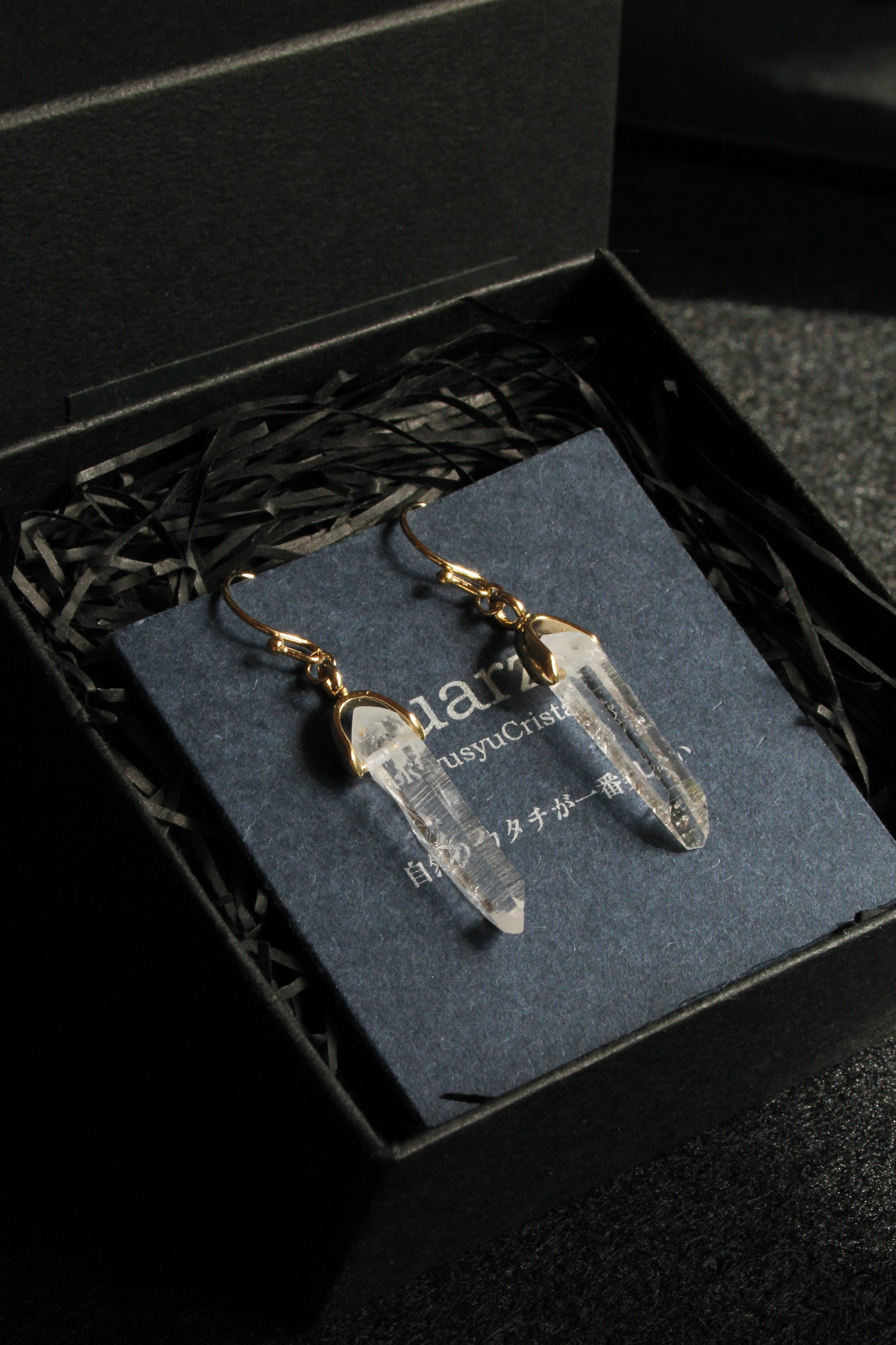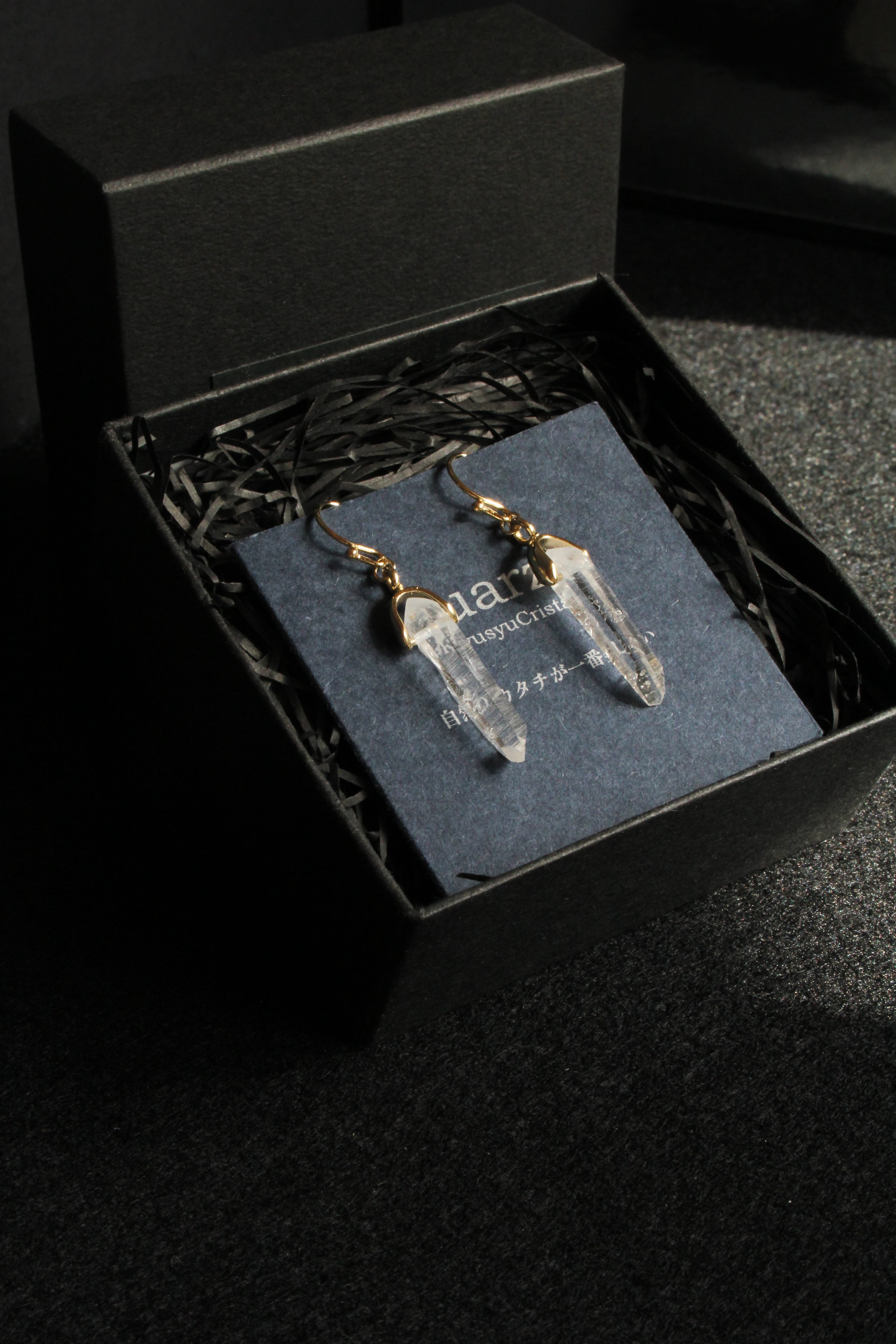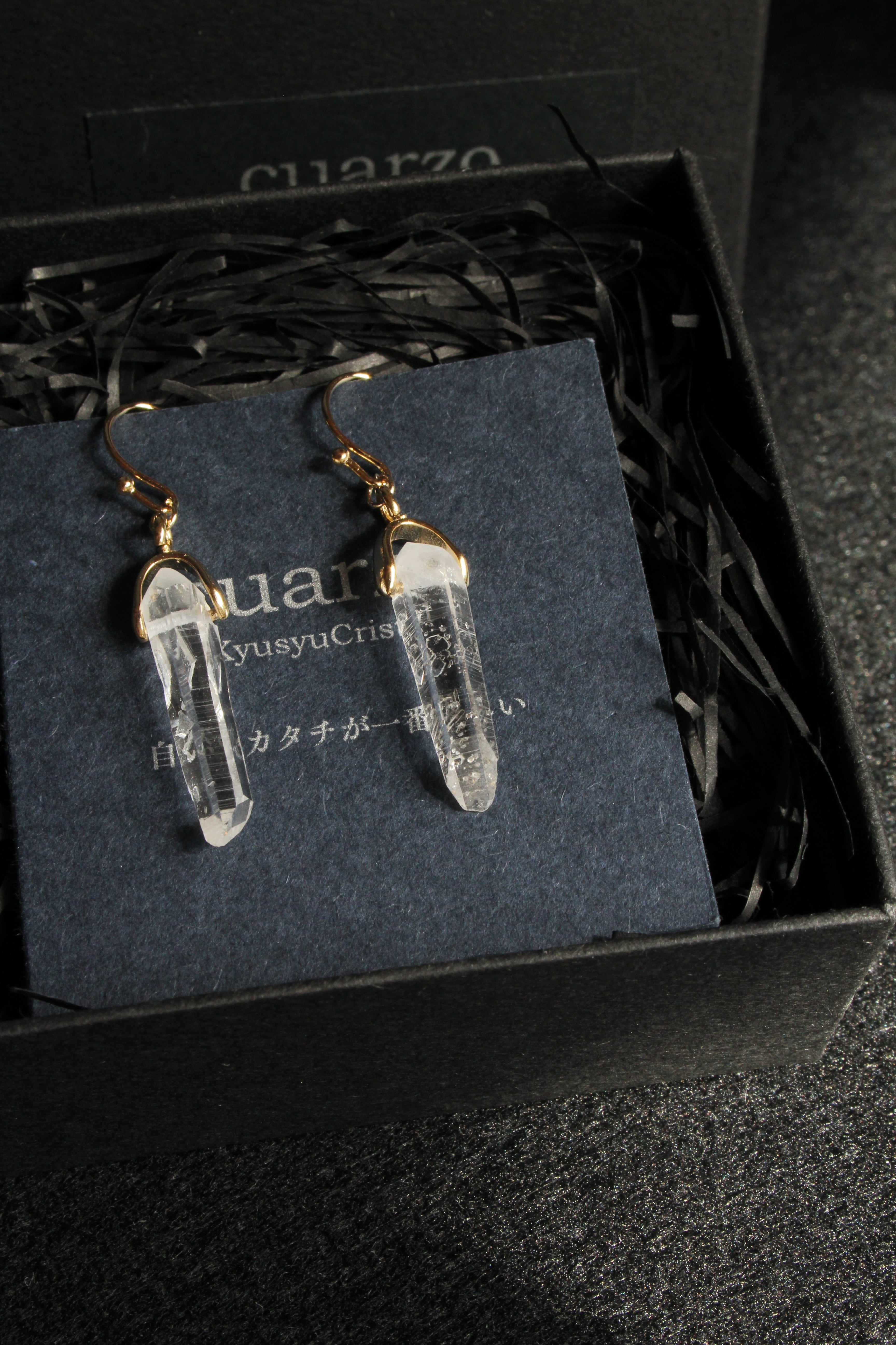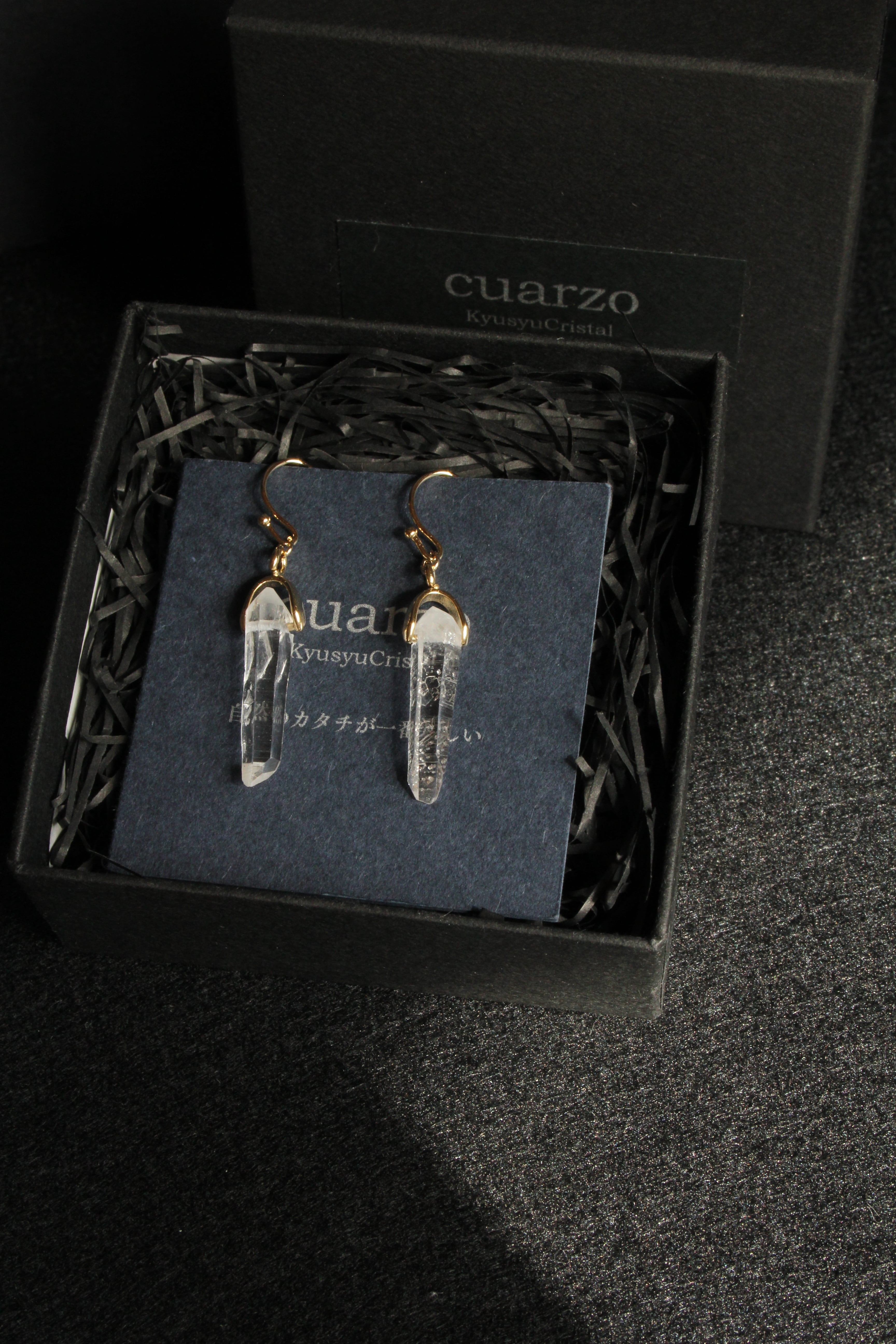 【商品説明】:水晶の原石を使用したピアス。国産水晶の中でも最高レベルの透明度を誇る宮崎県西米良産水晶
