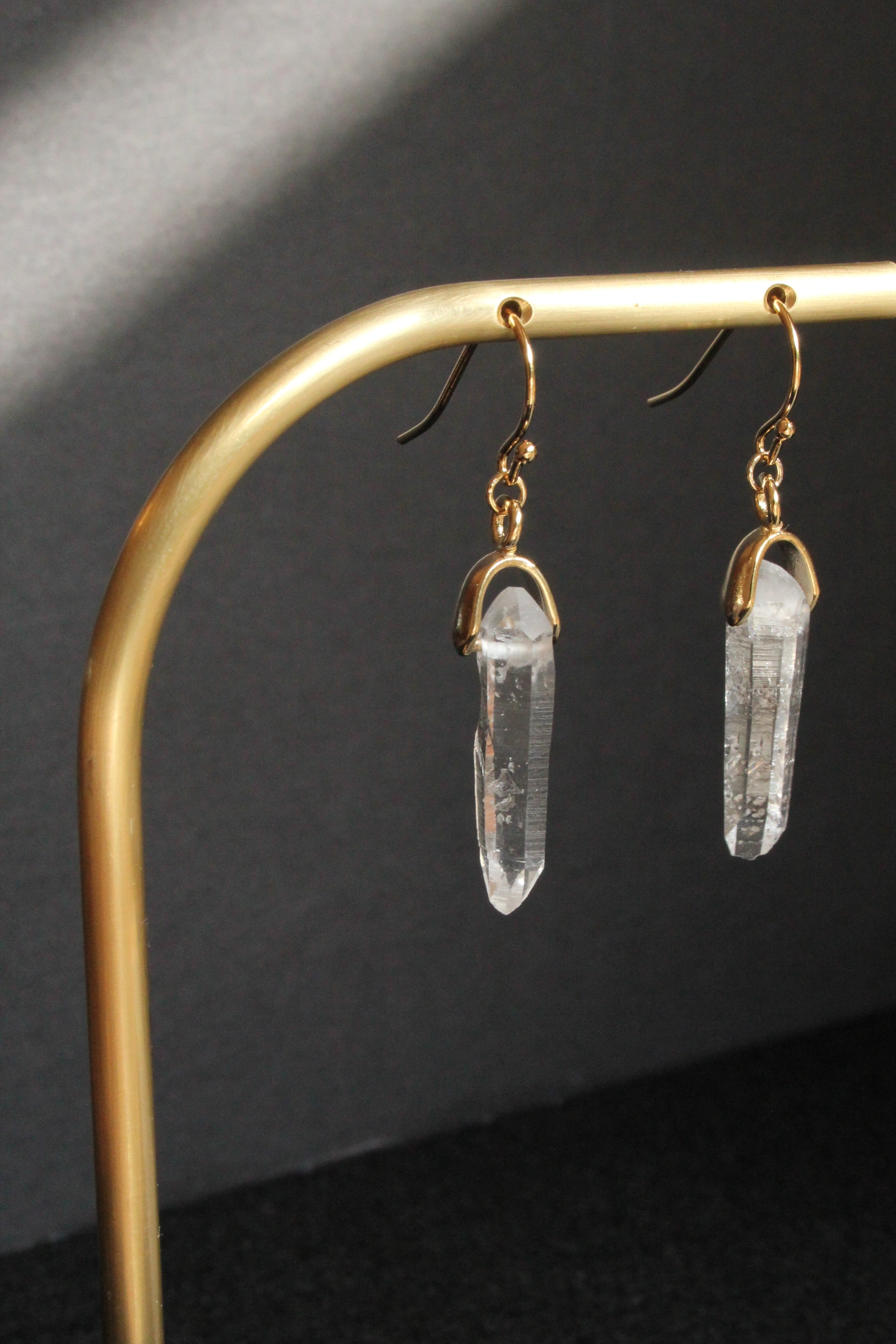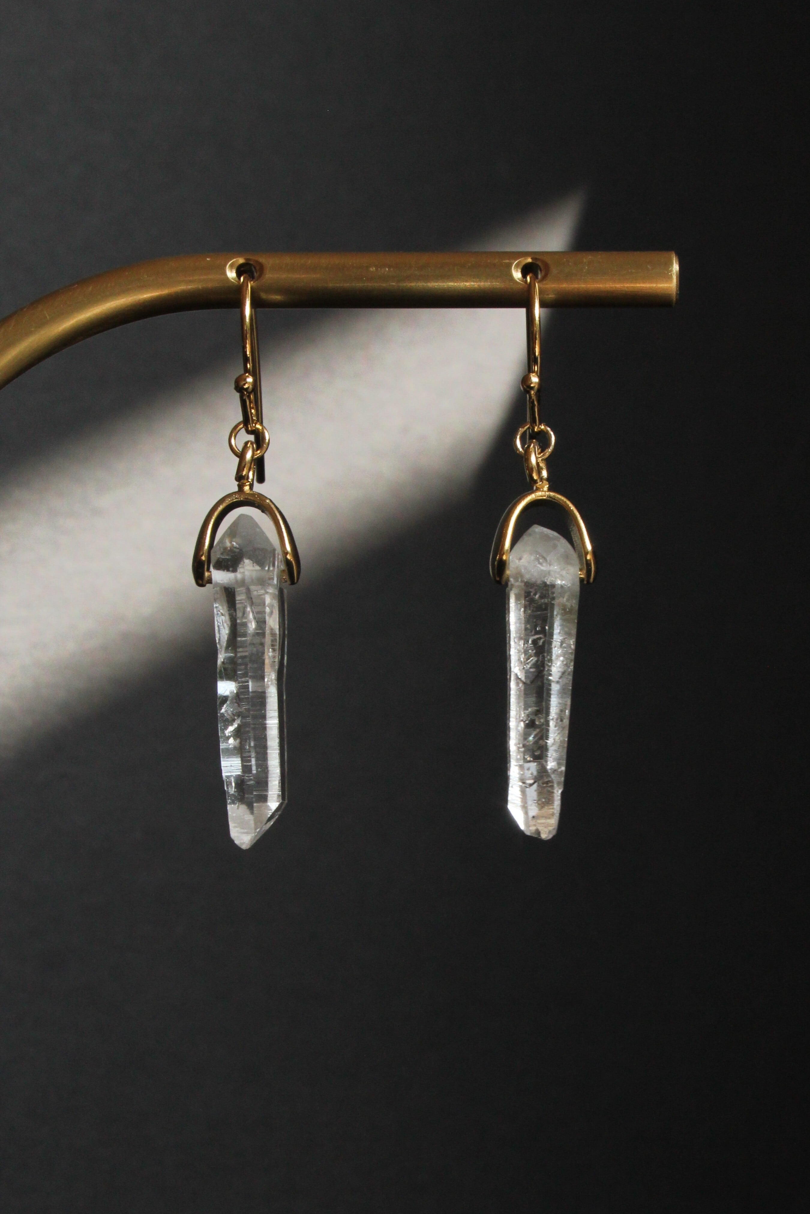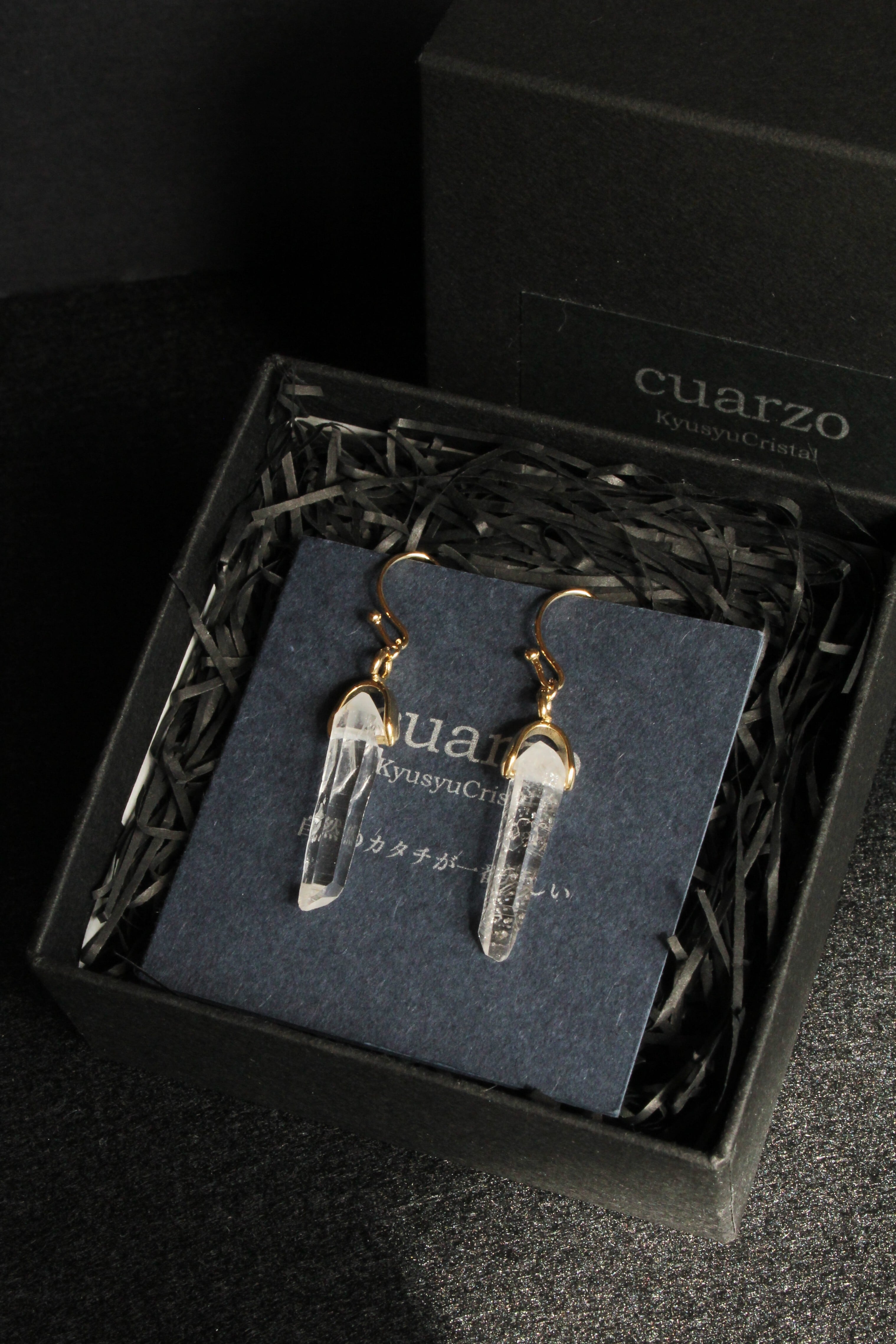 【商品説明】:水晶の原石を使用したピアス。国産水晶の中でも最高レベルの透明度を誇る宮崎県西米良産水晶
