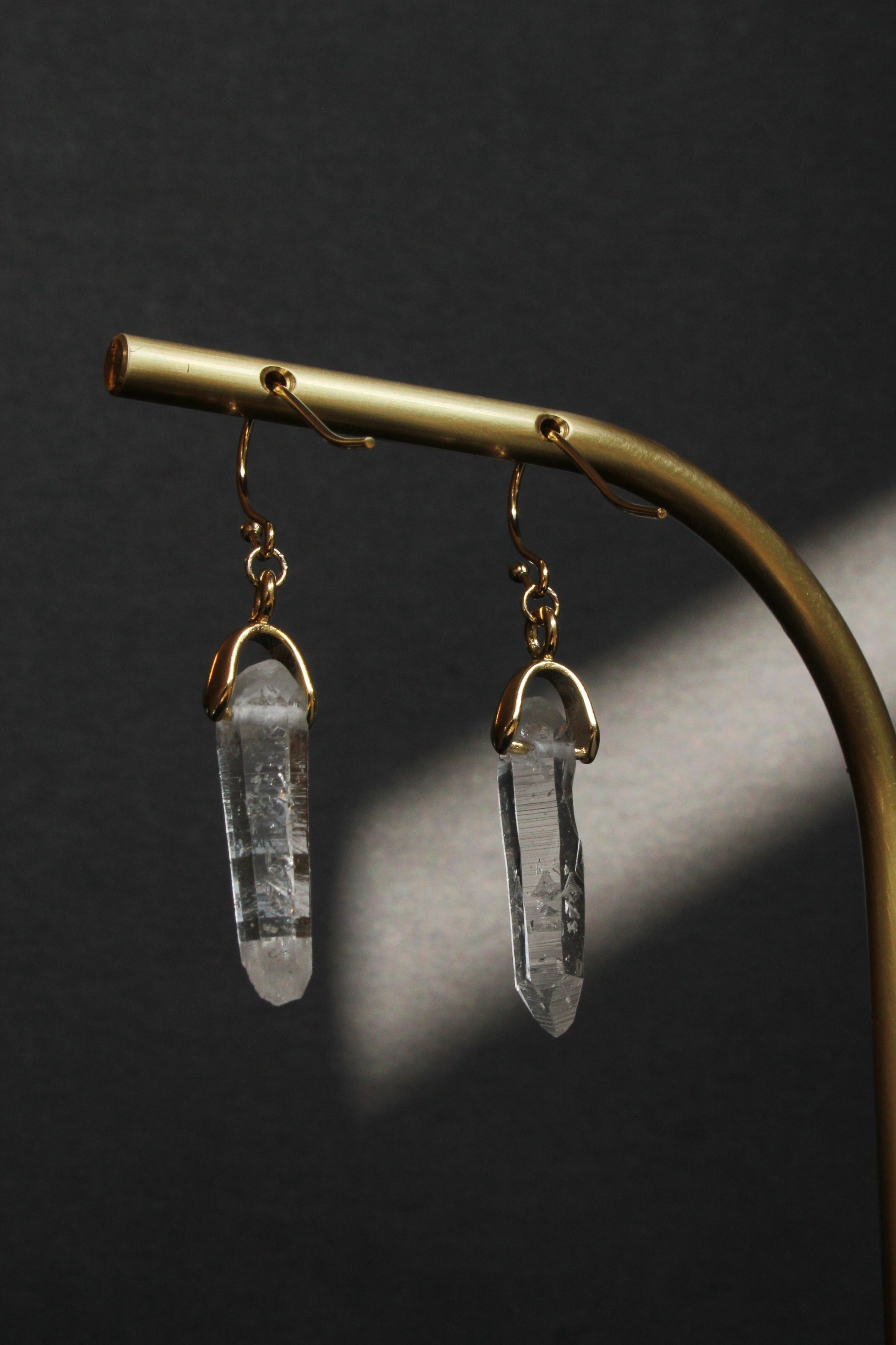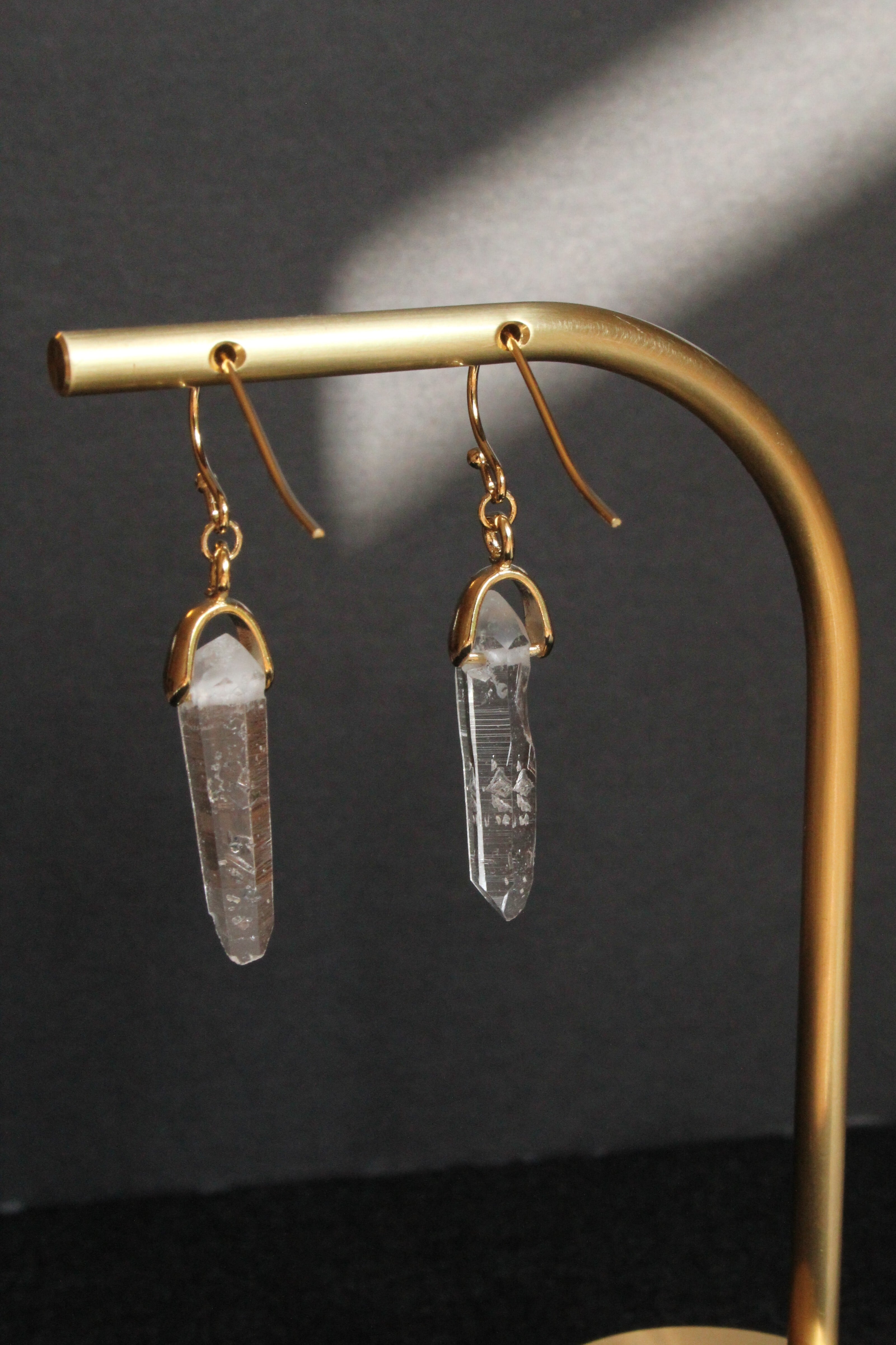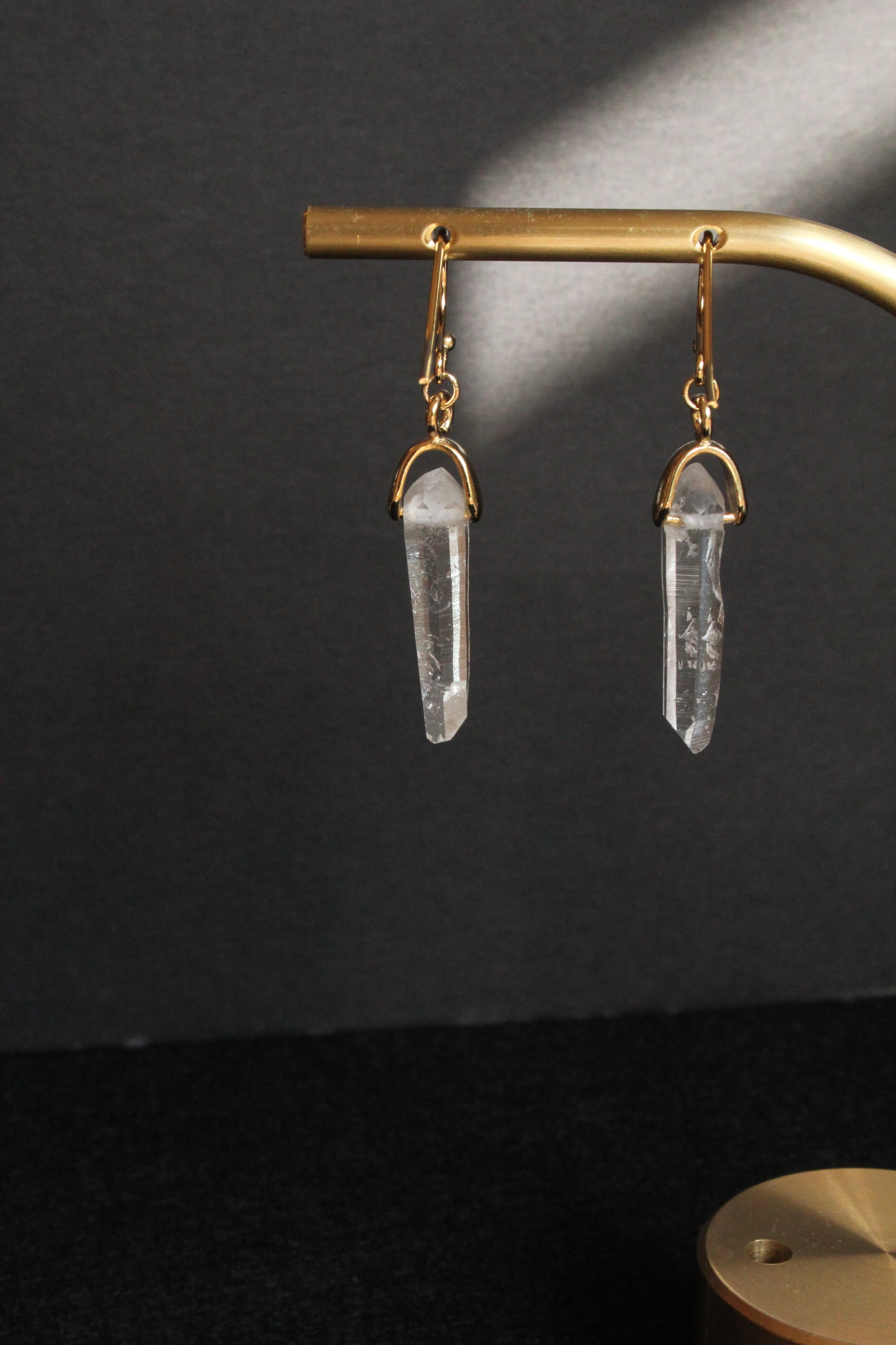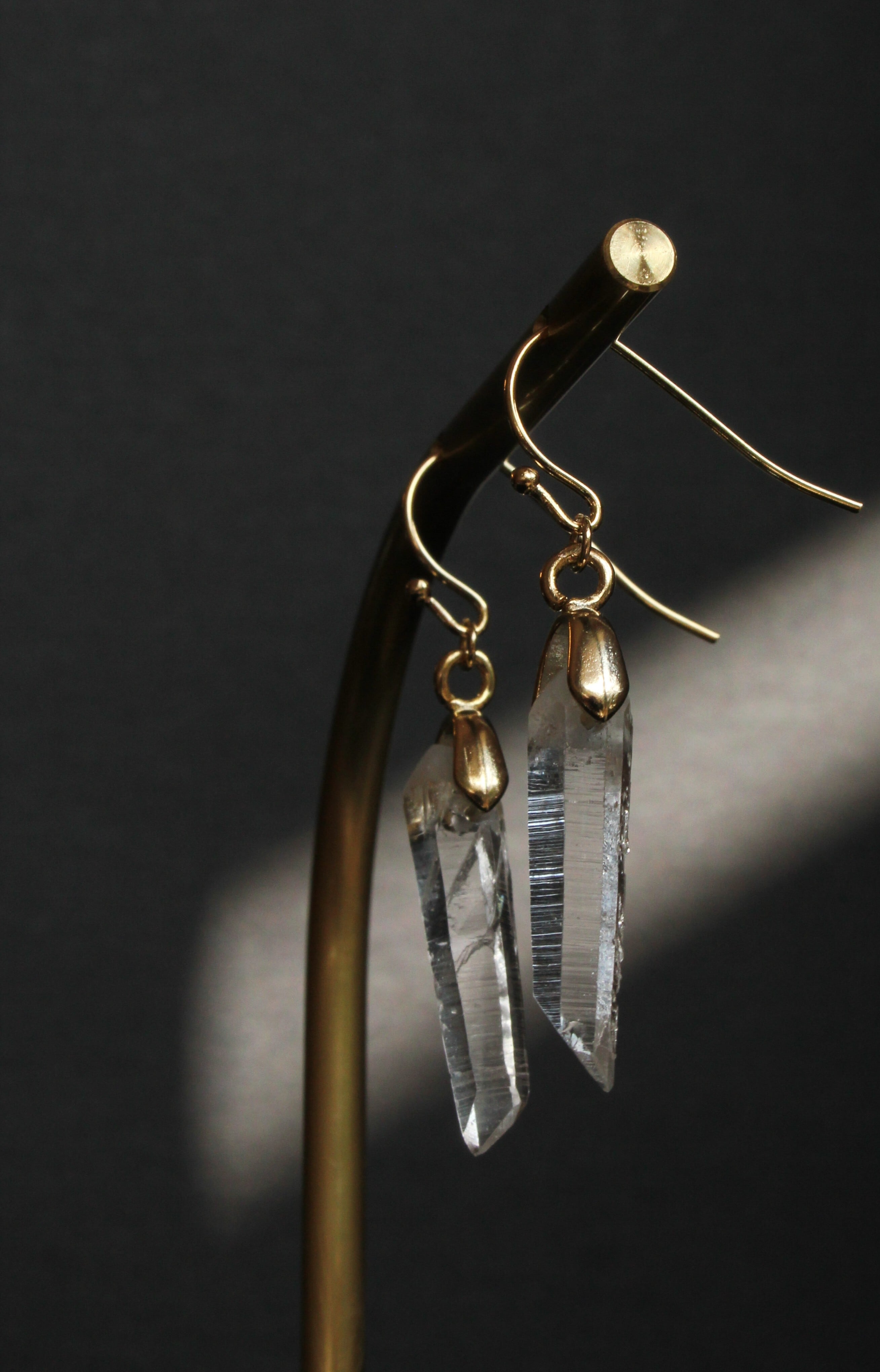 【商品説明】:水晶の原石を使用したピアス。国産水晶の中でも最高レベルの透明度を誇る宮崎県西米良産水晶