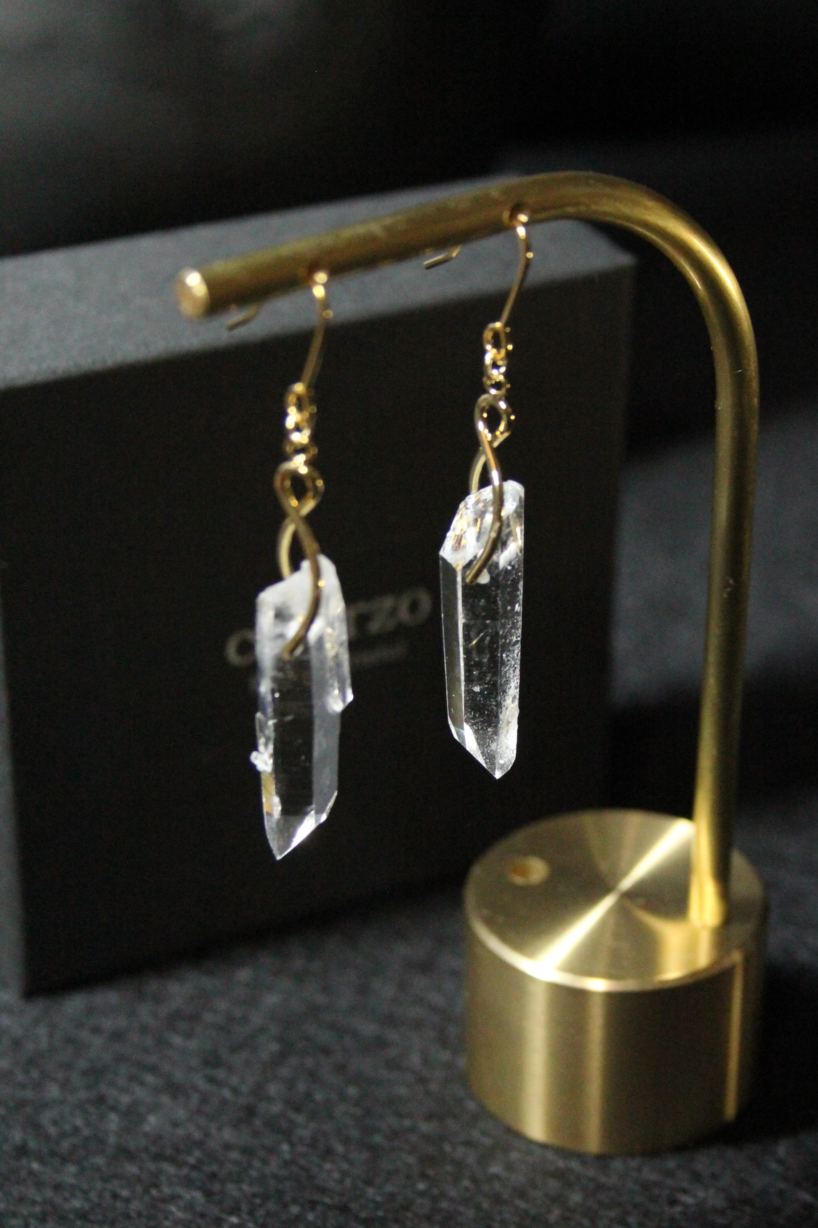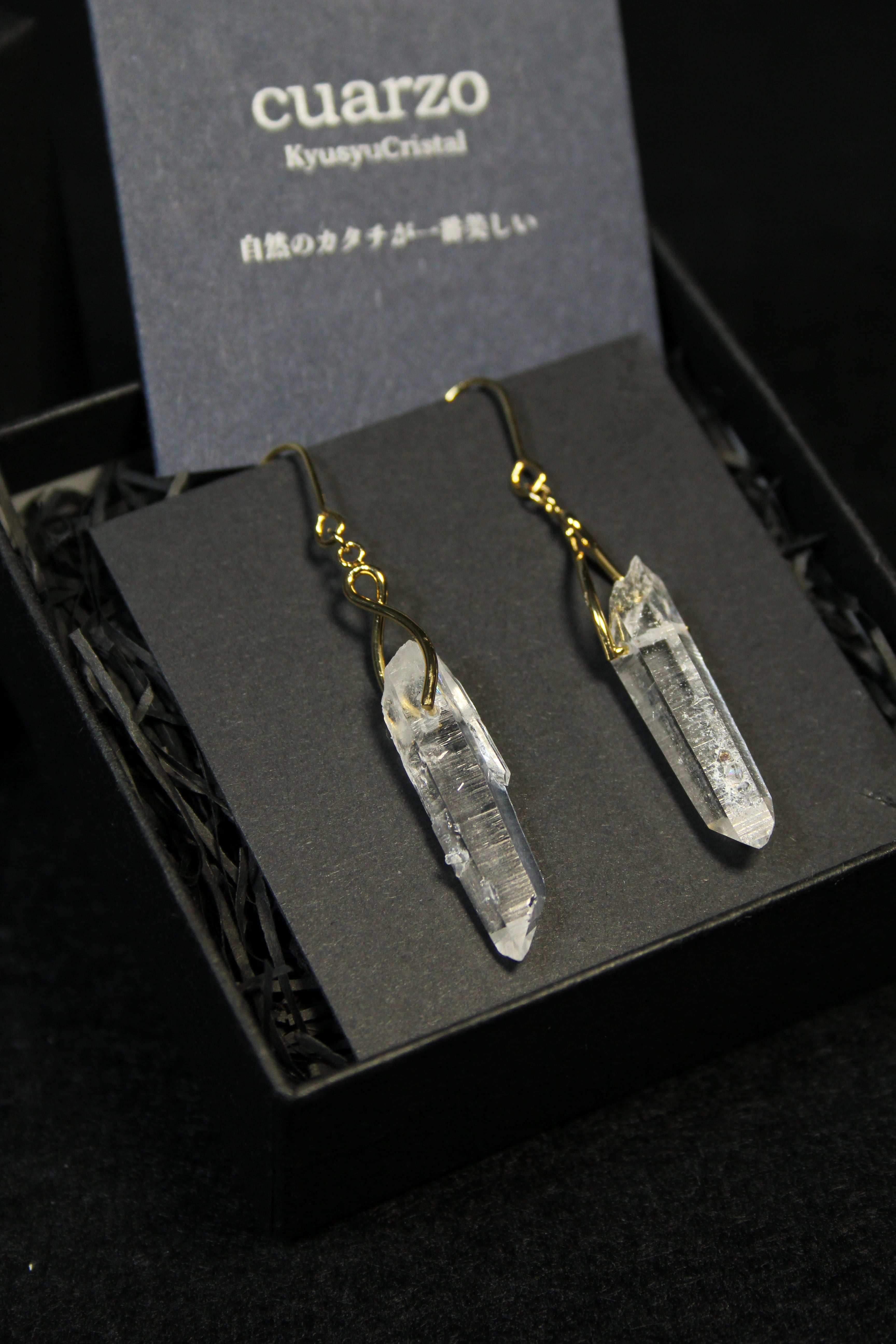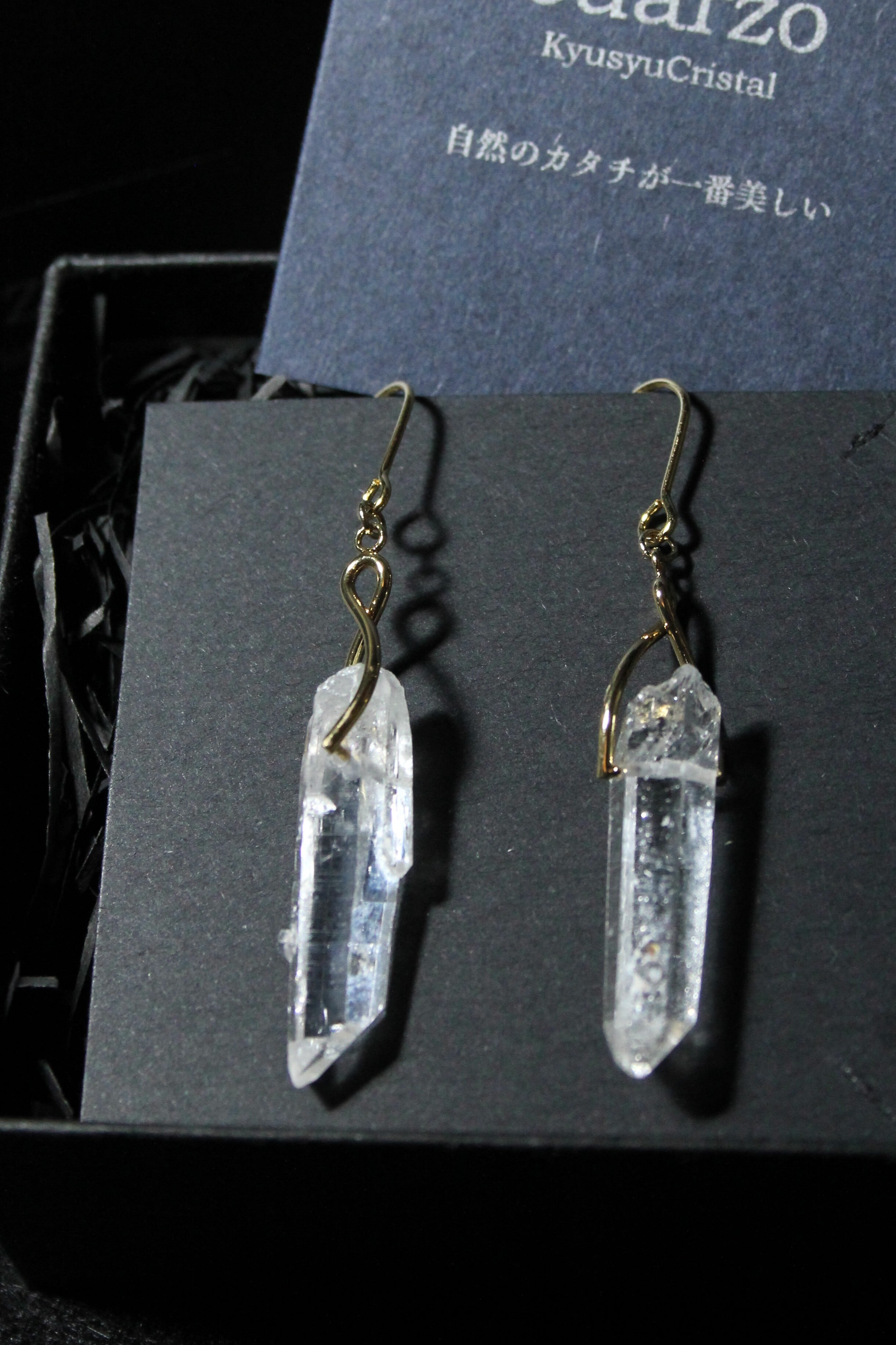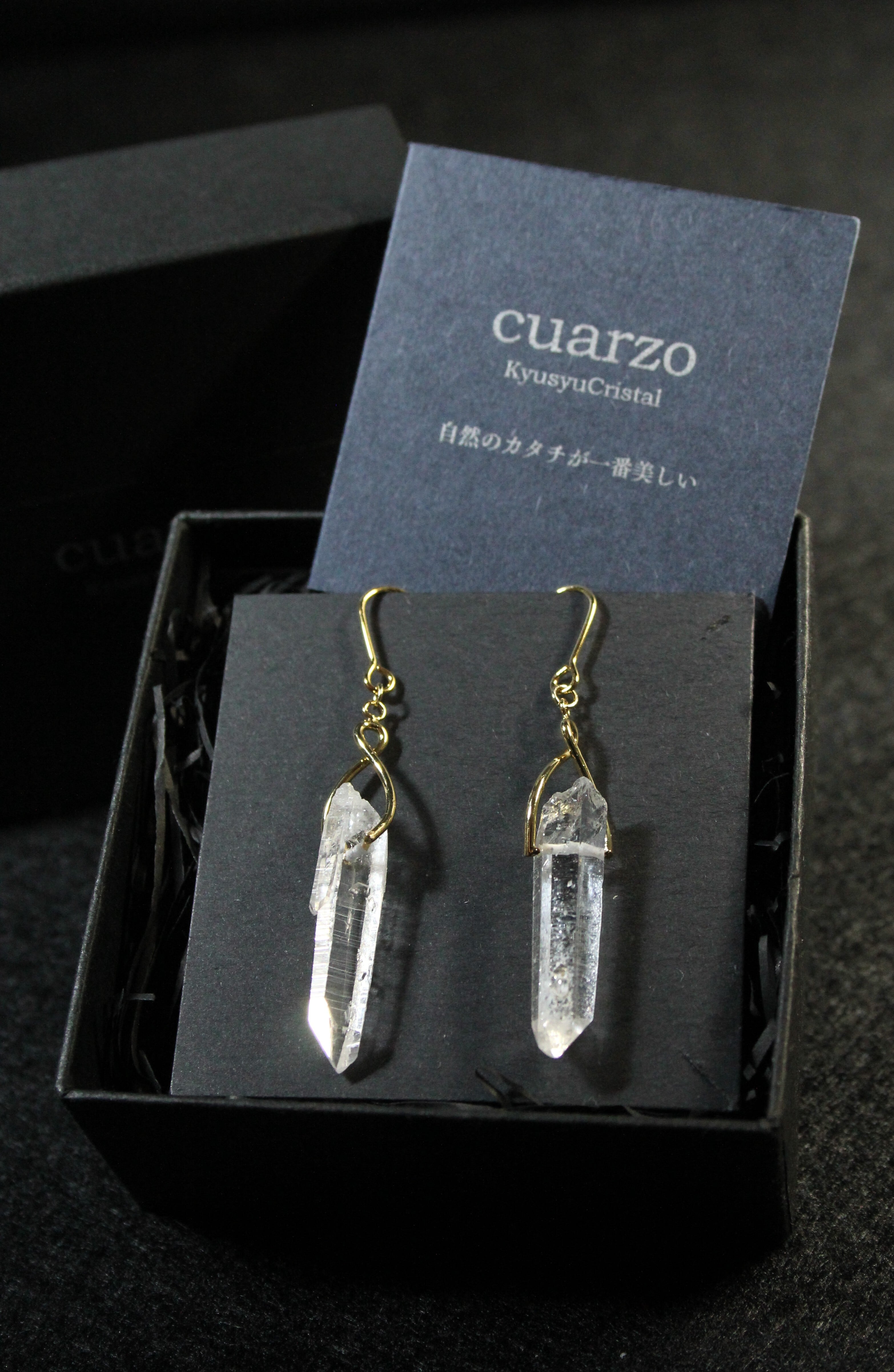 【商品説明】:水晶の原石を使用したピアス。国産水晶の中でも最高レベルの透明度を誇る宮崎県西米良産水晶