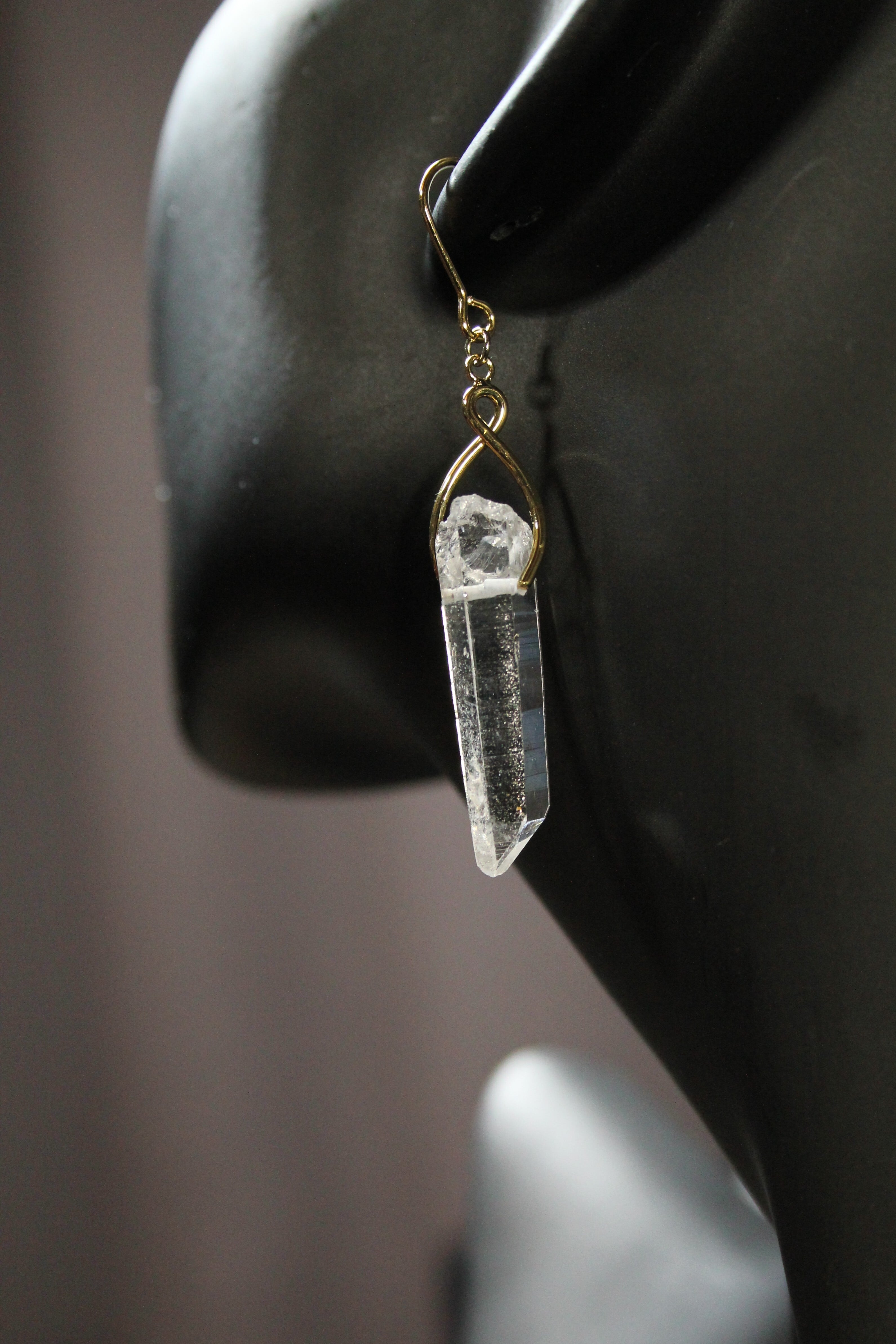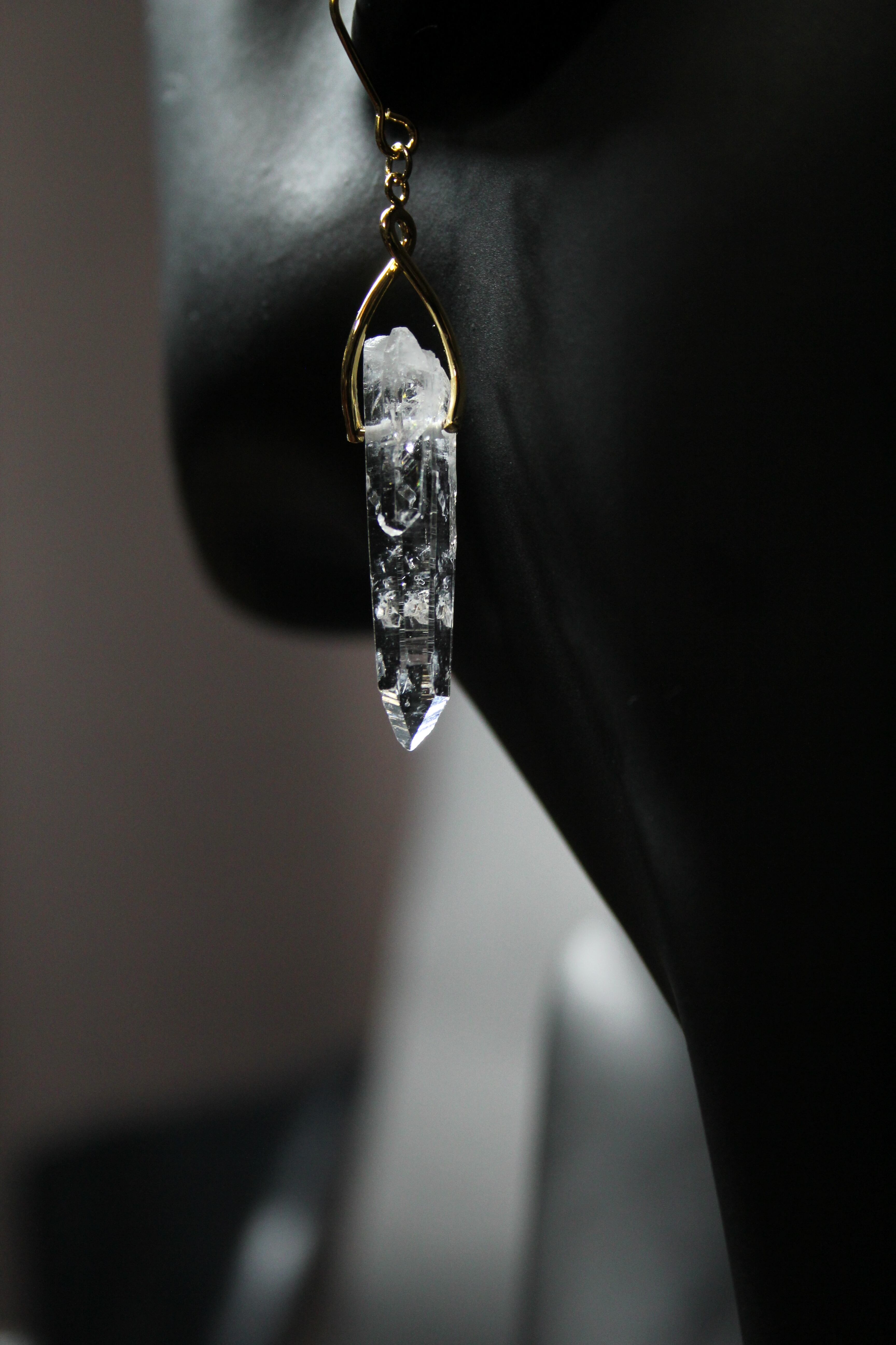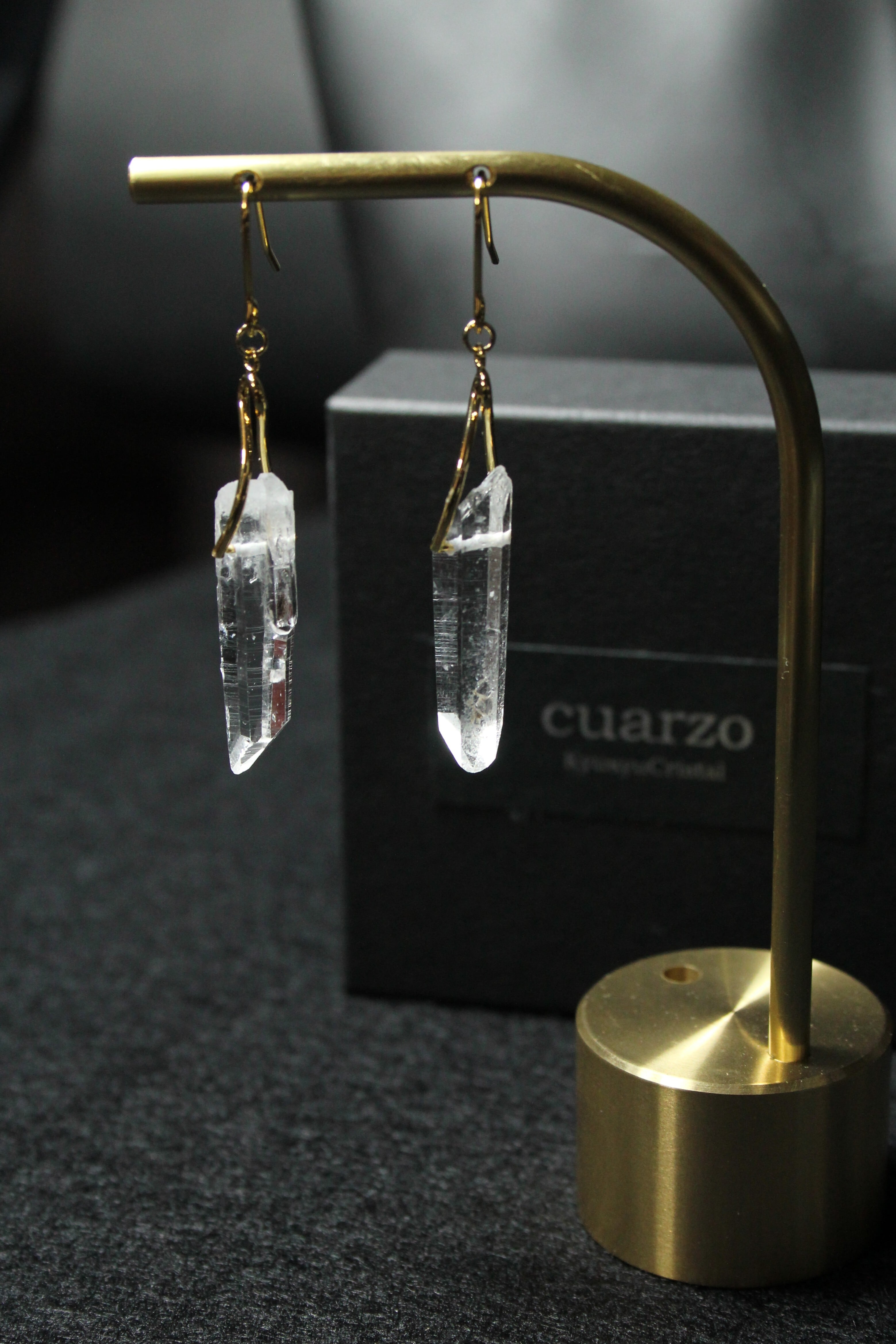 【商品説明】:水晶の原石を使用したピアス。国産水晶の中でも最高レベルの透明度を誇る宮崎県西米良産水晶