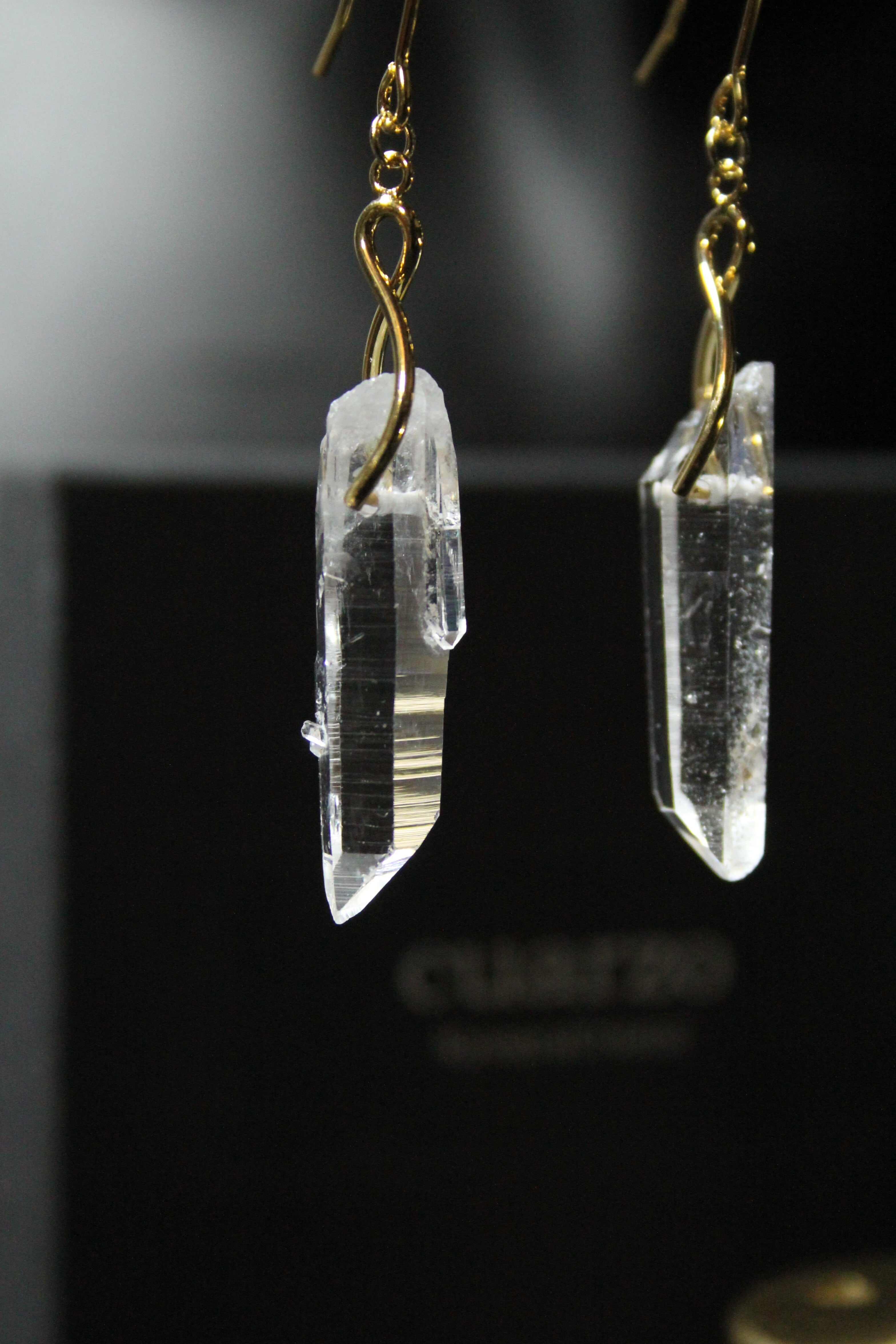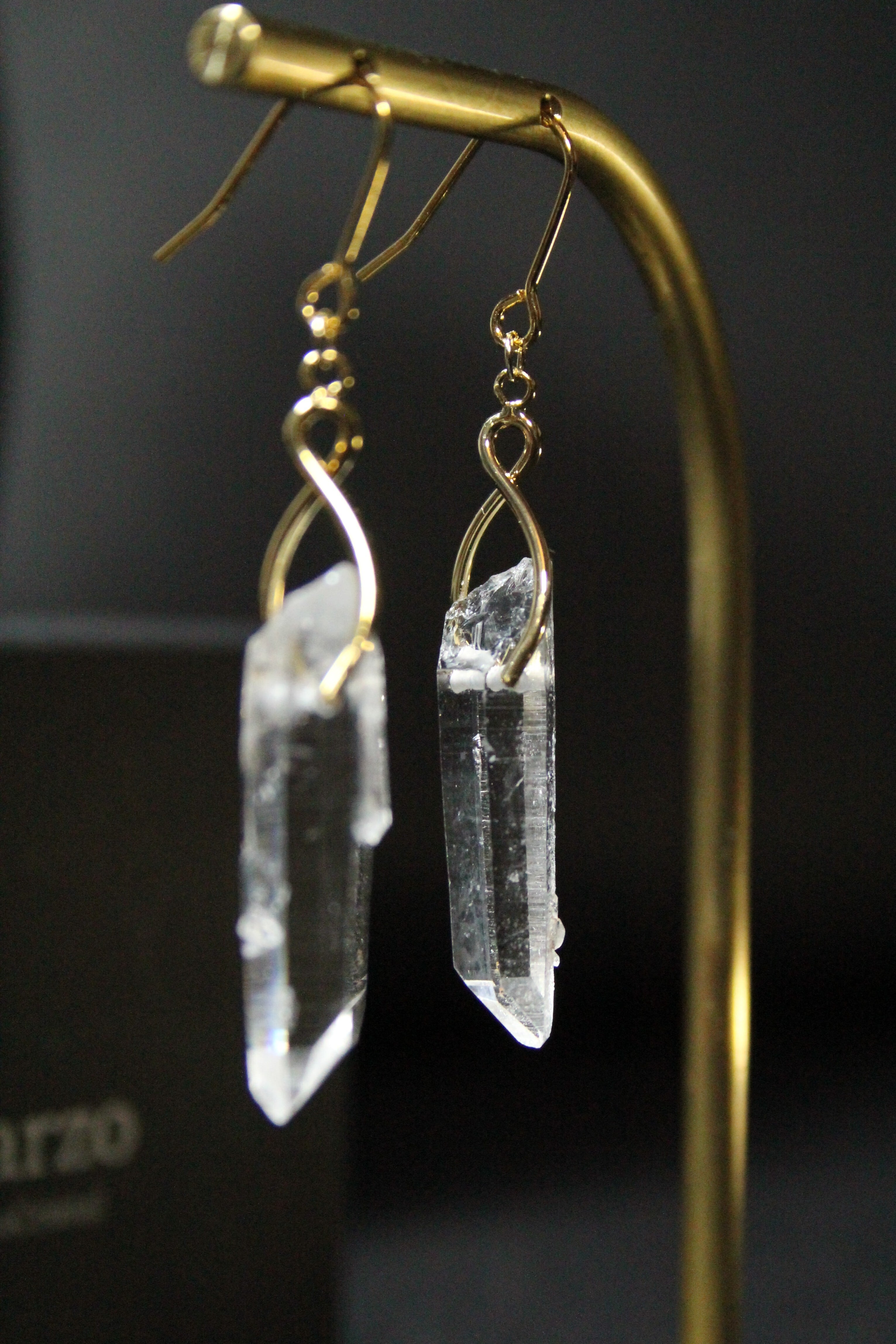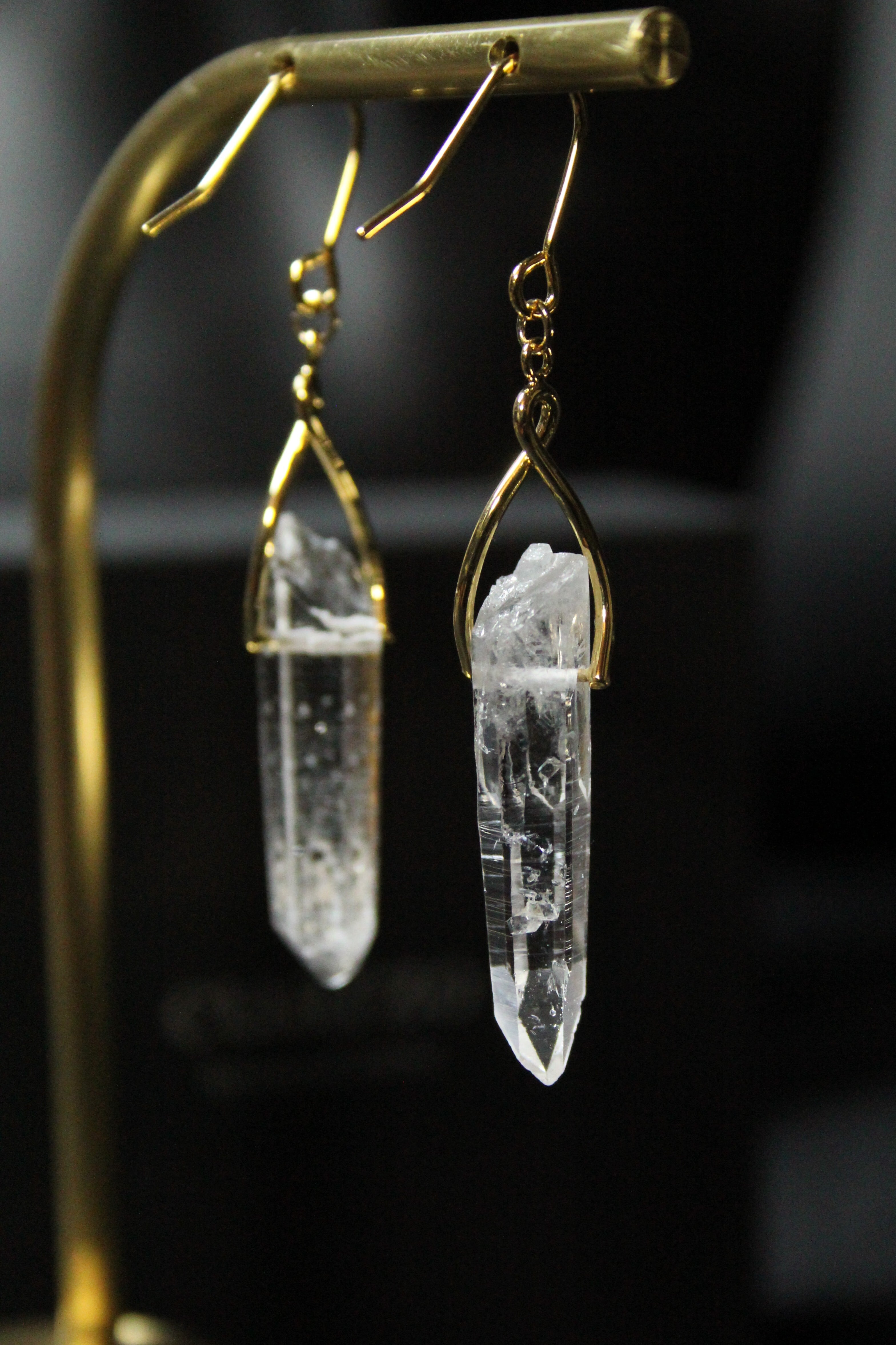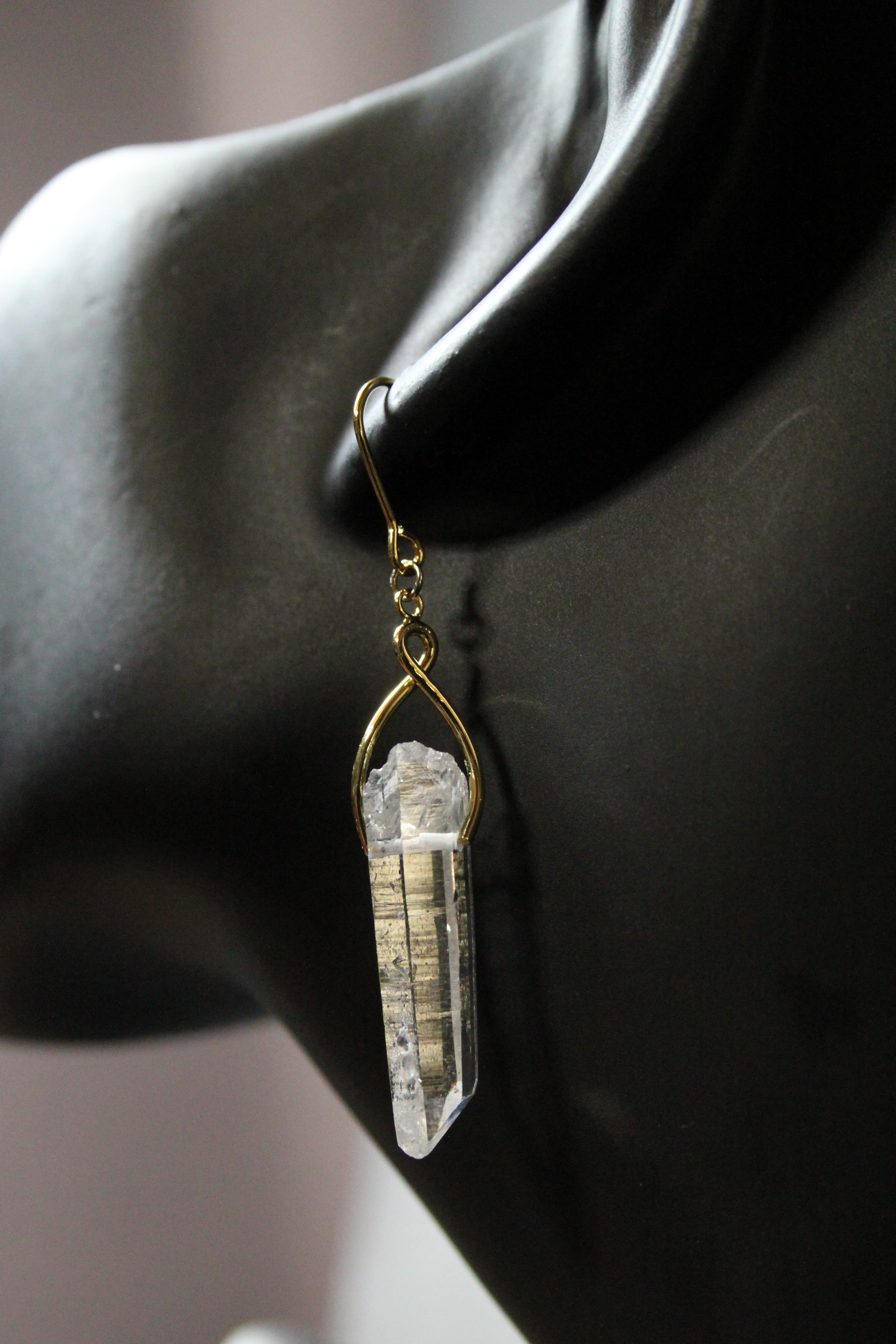 【商品説明】:水晶の原石を使用したピアス。国産水晶の中でも最高レベルの透明度を誇る宮崎県西米良産水晶