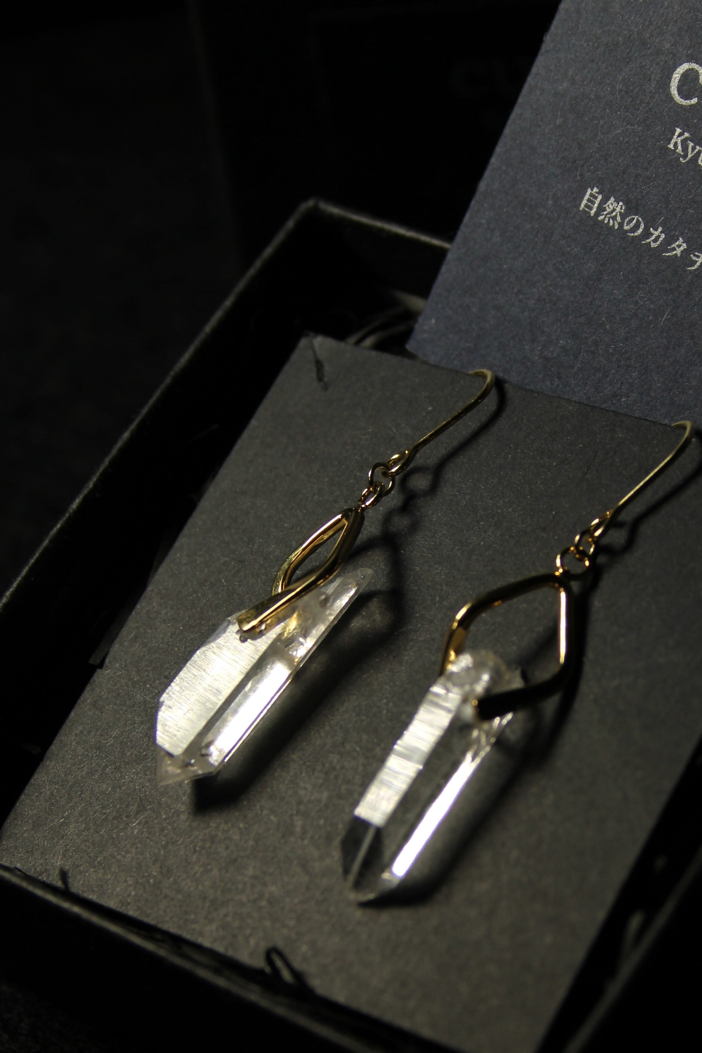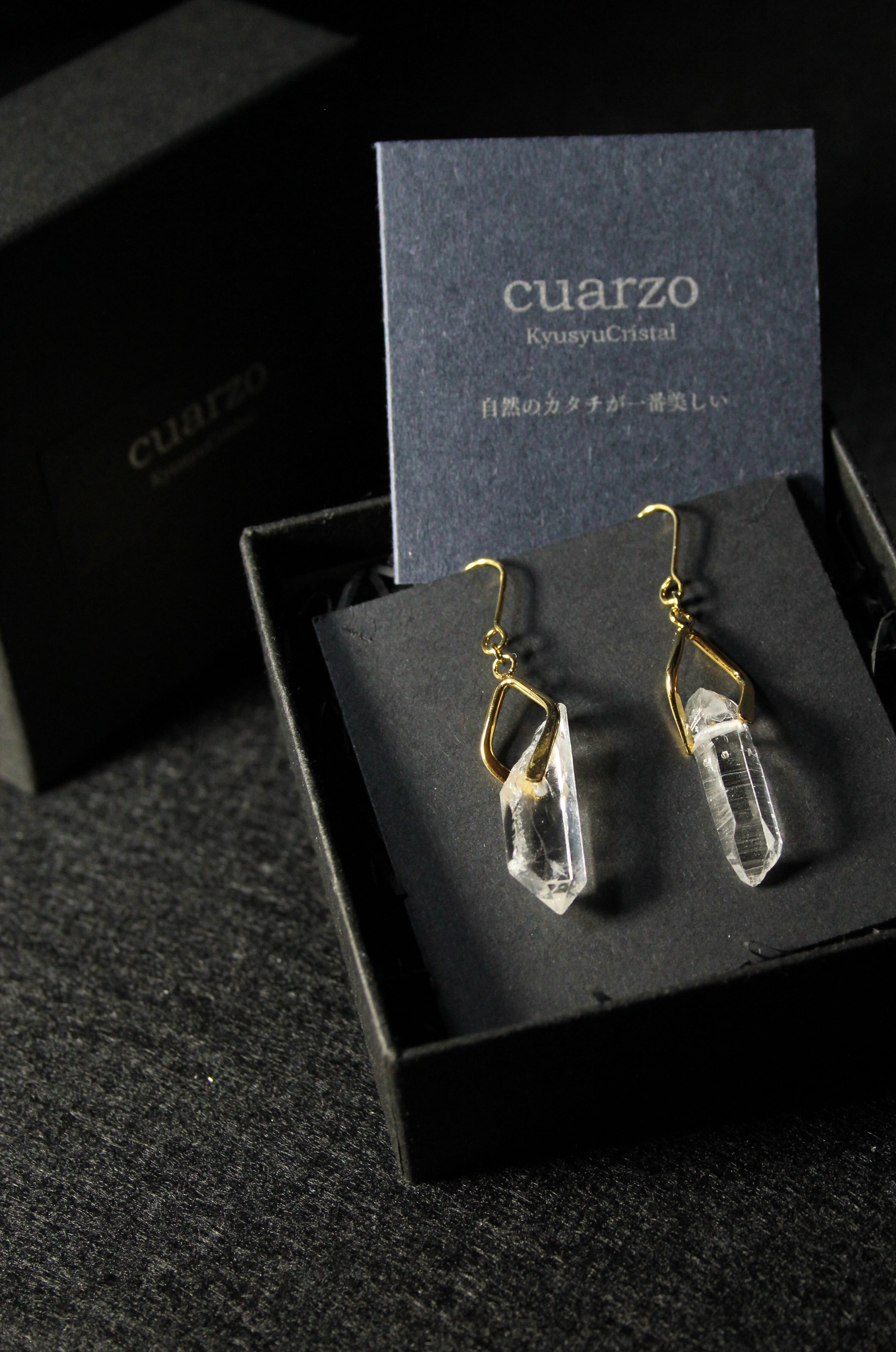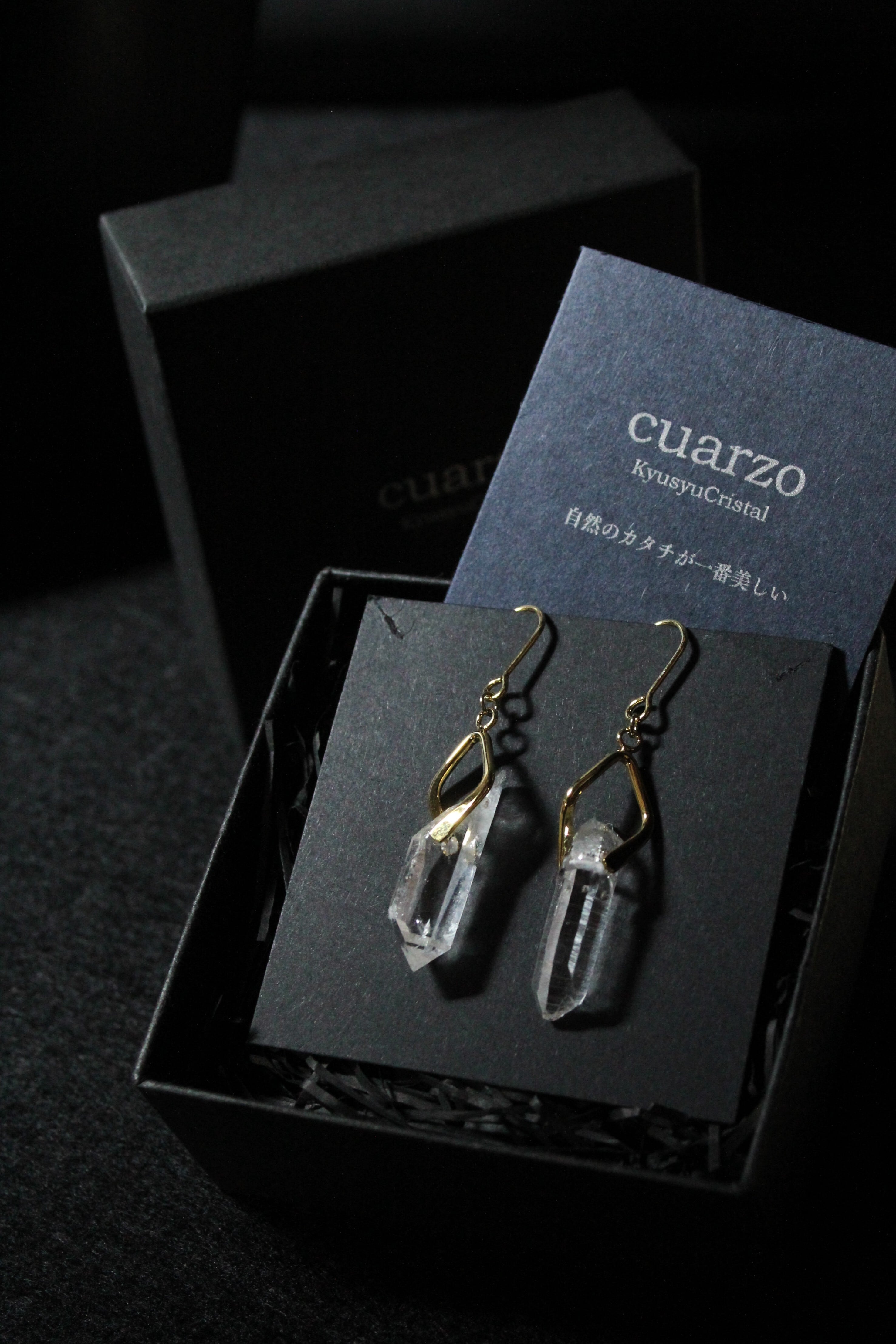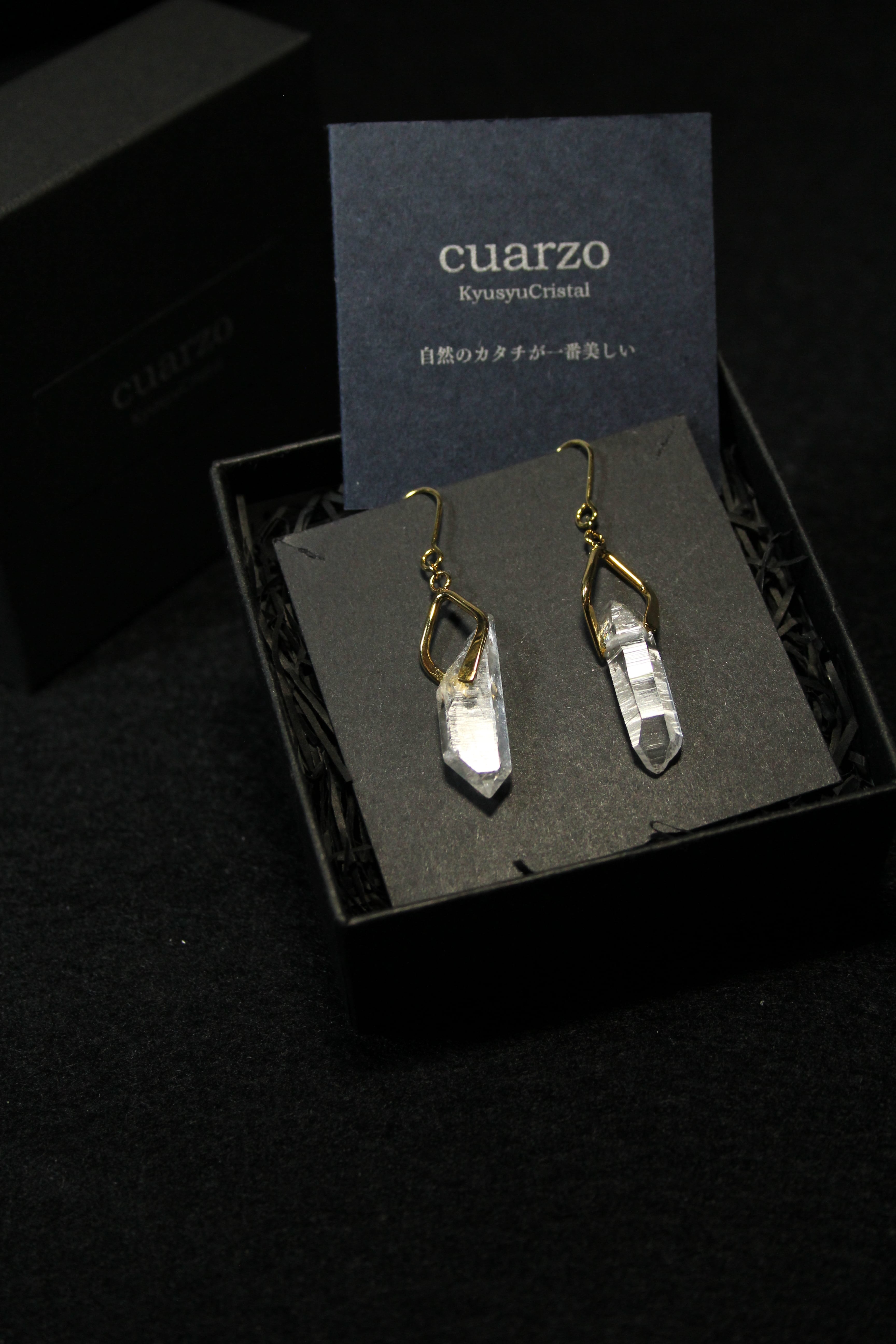 【商品説明】:水晶の原石を使用したピアス。国産水晶の中でも最高レベルの透明度を誇る宮崎県西米良産水晶