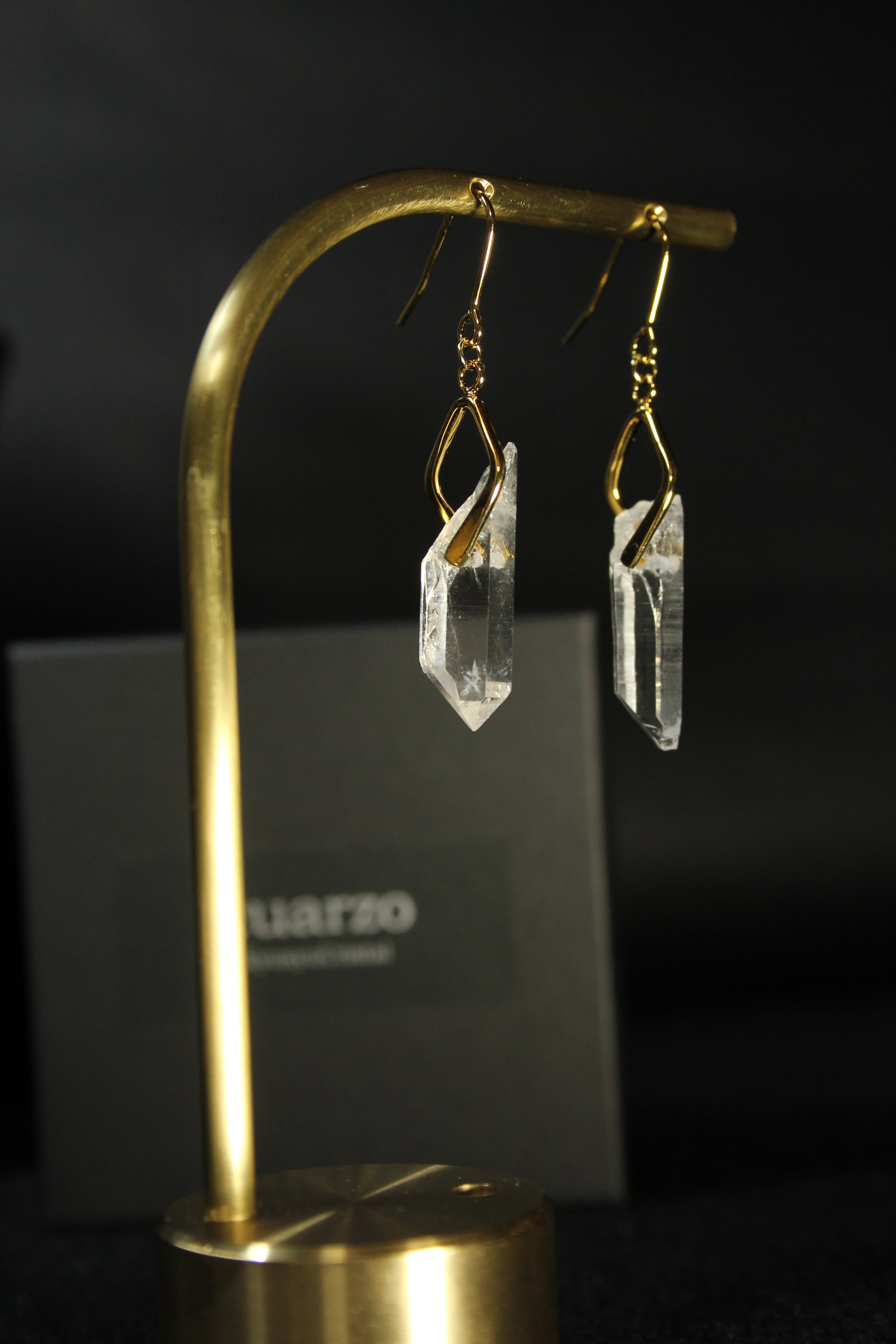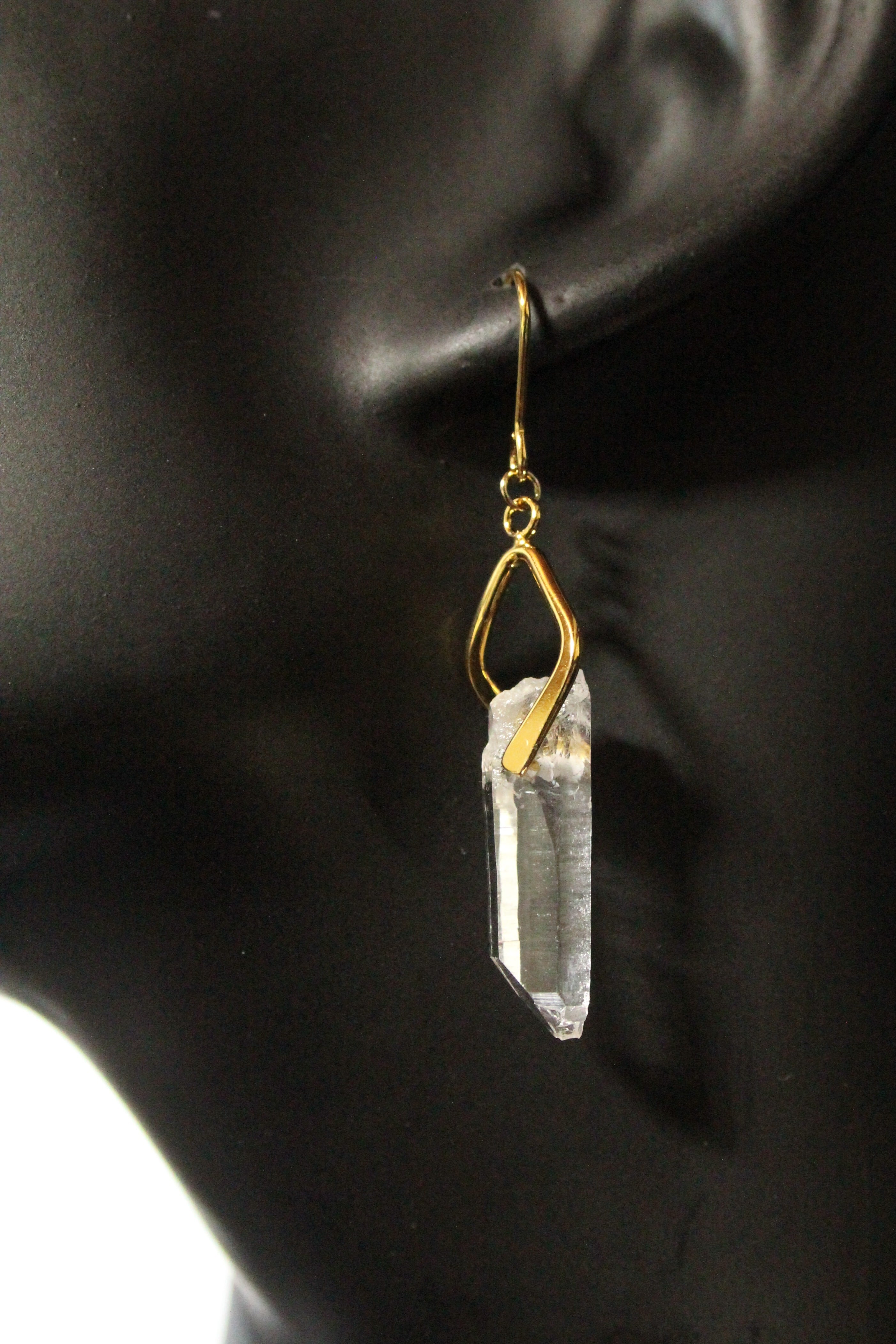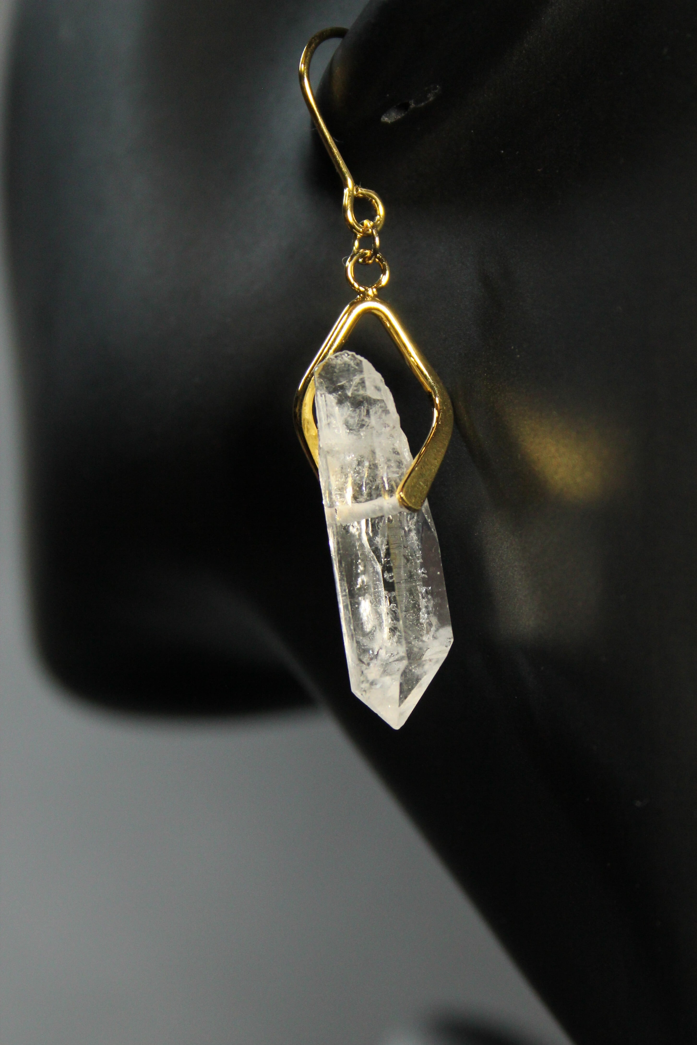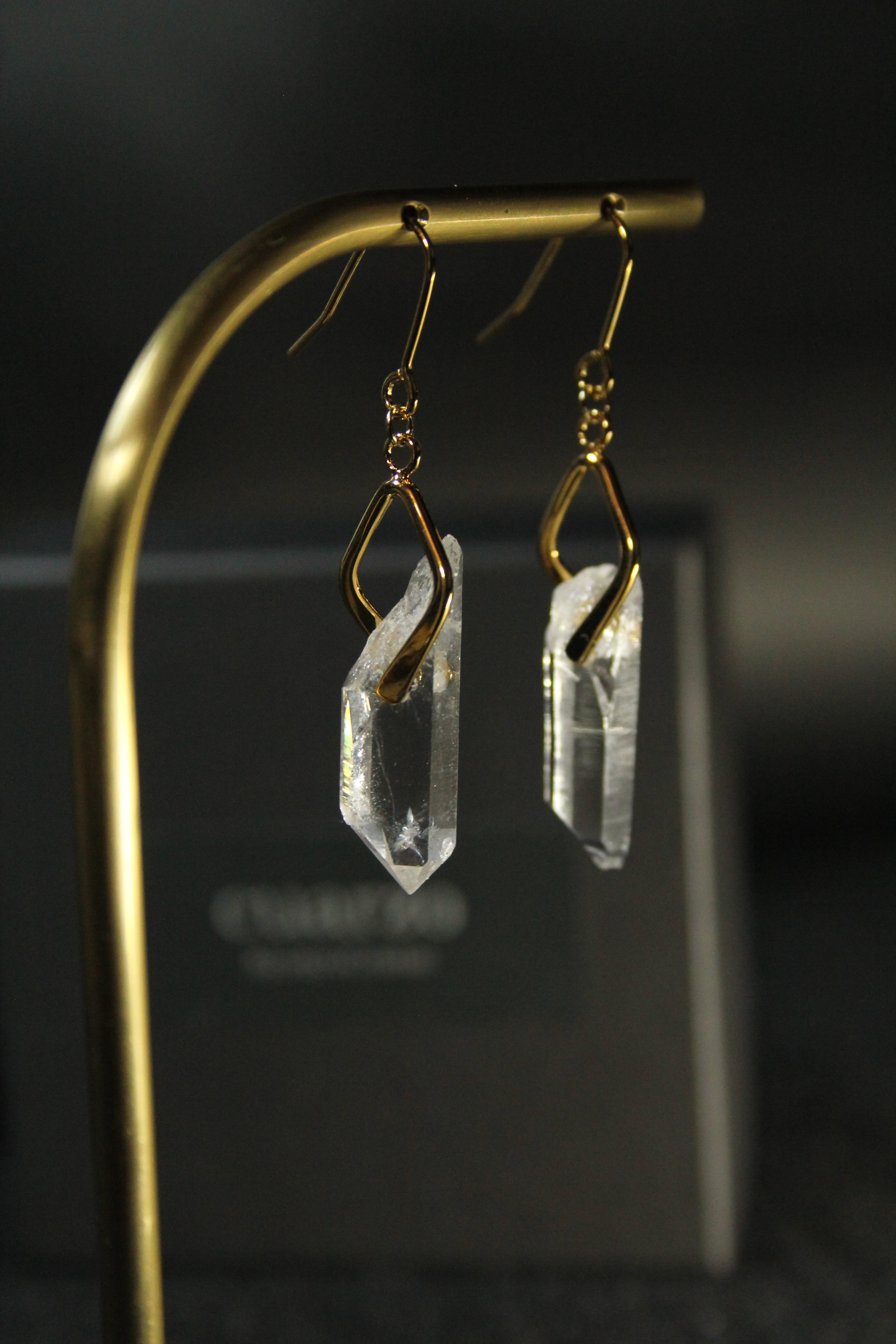 【商品説明】:水晶の原石を使用したピアス。国産水晶の中でも最高レベルの透明度を誇る宮崎県西米良産水晶