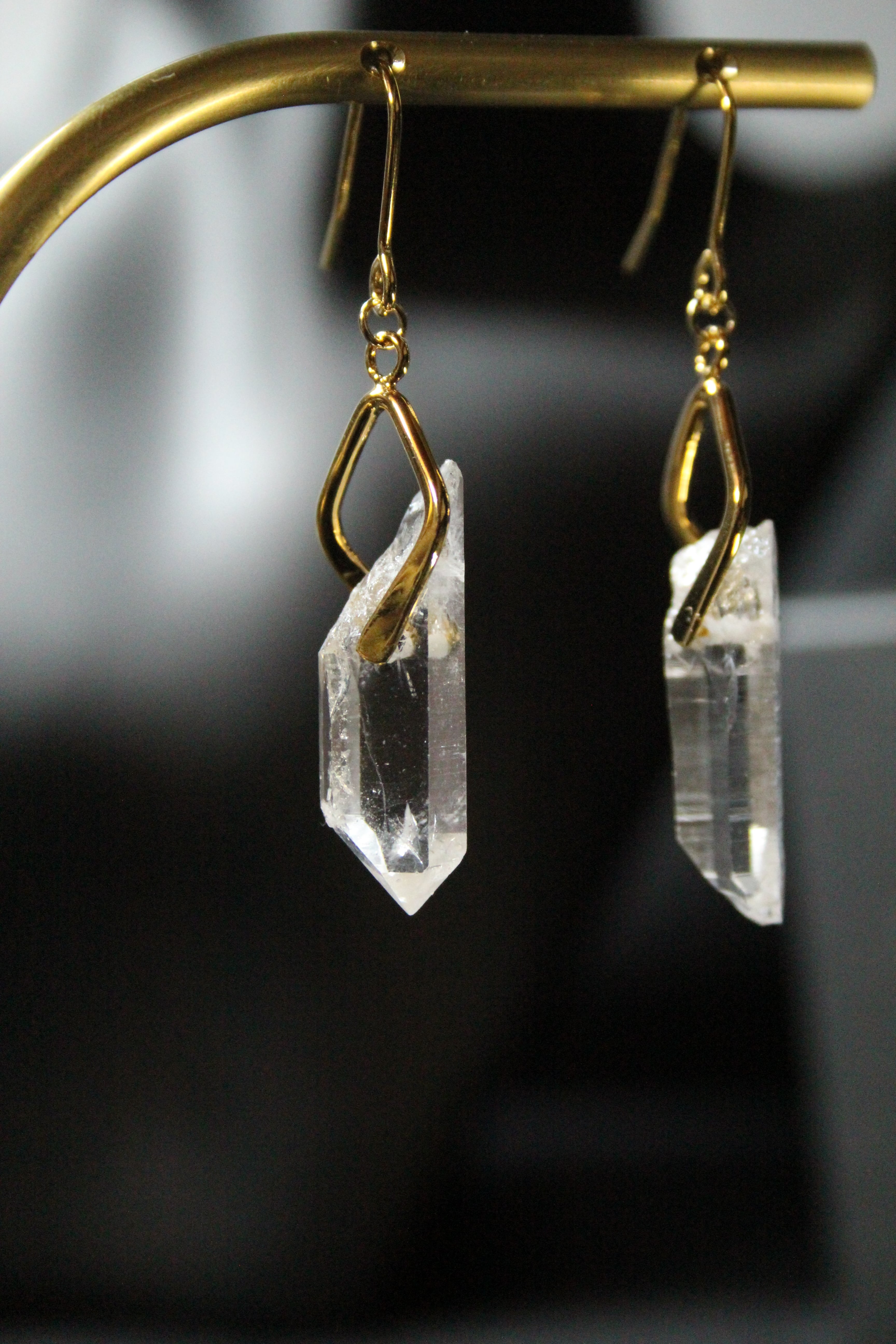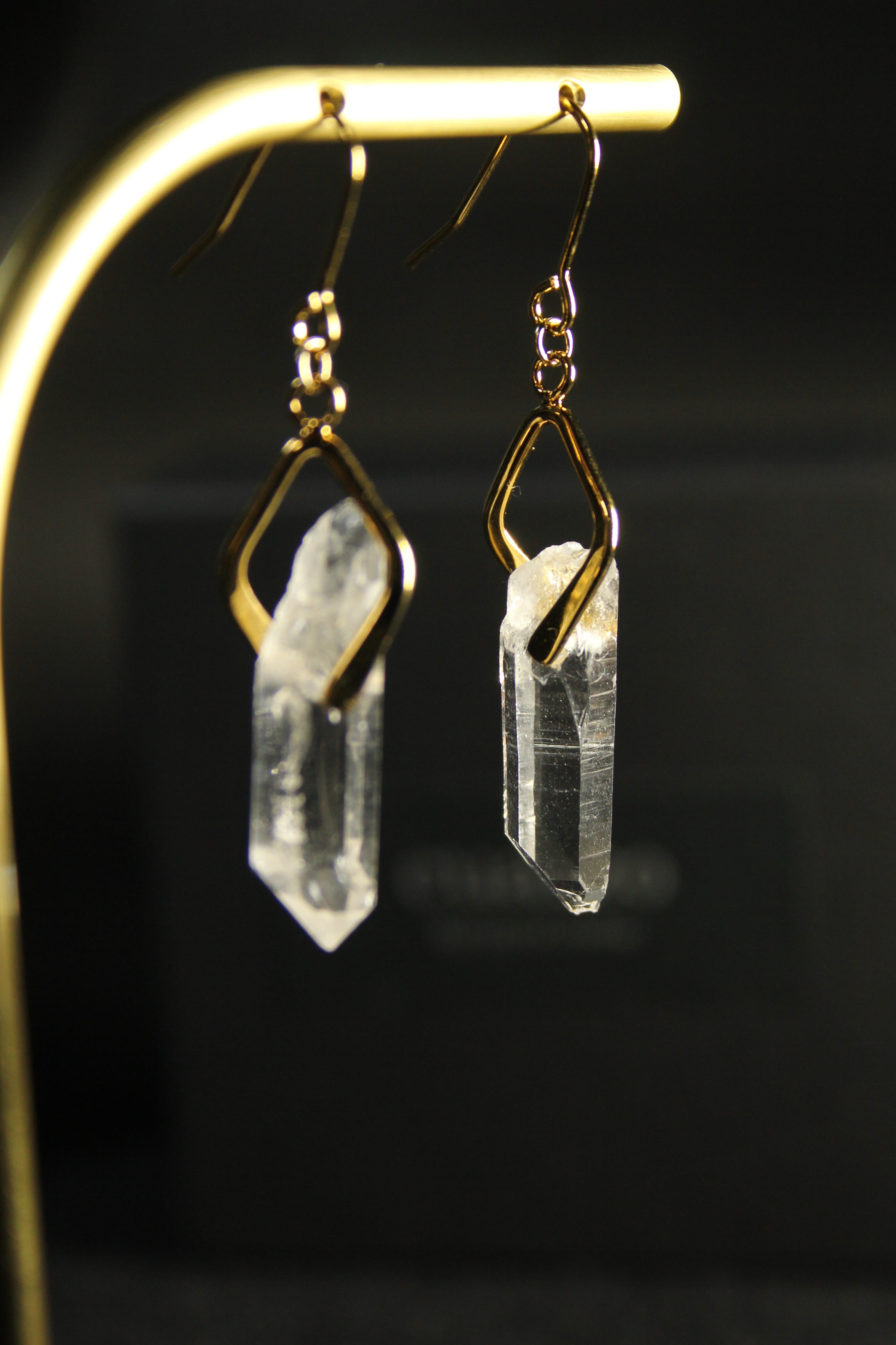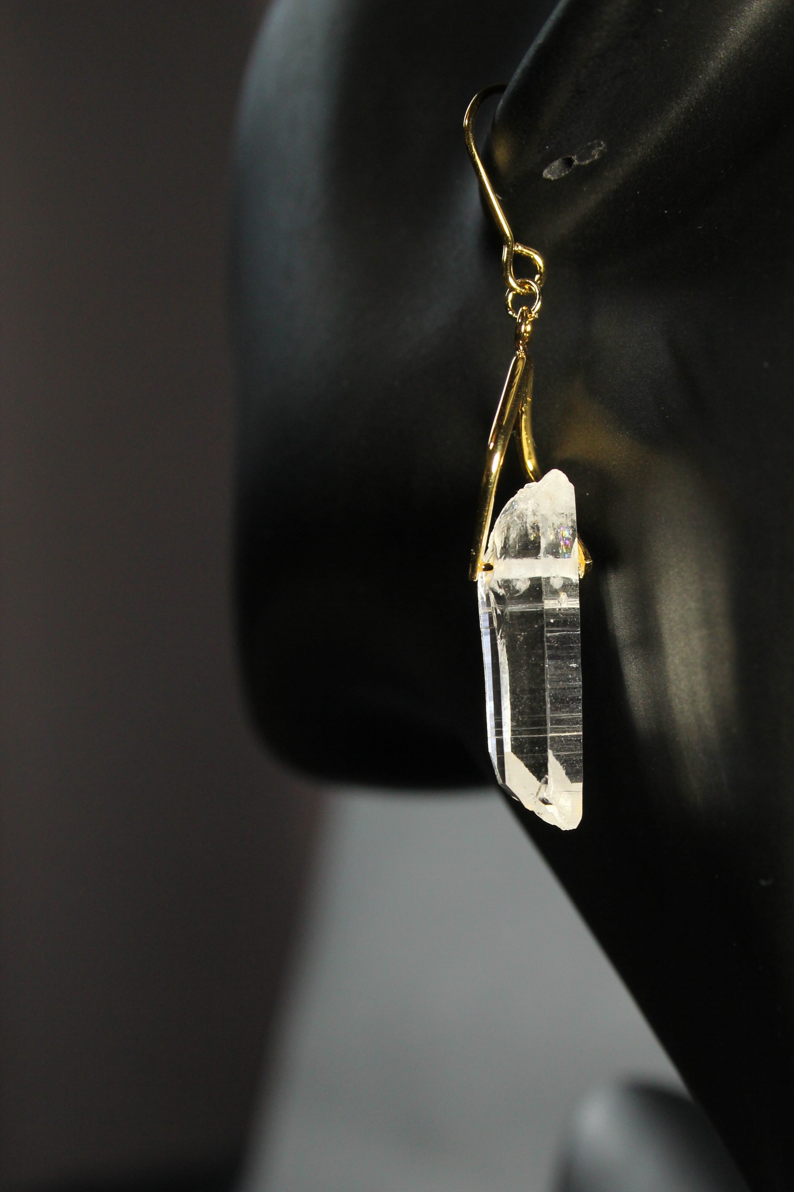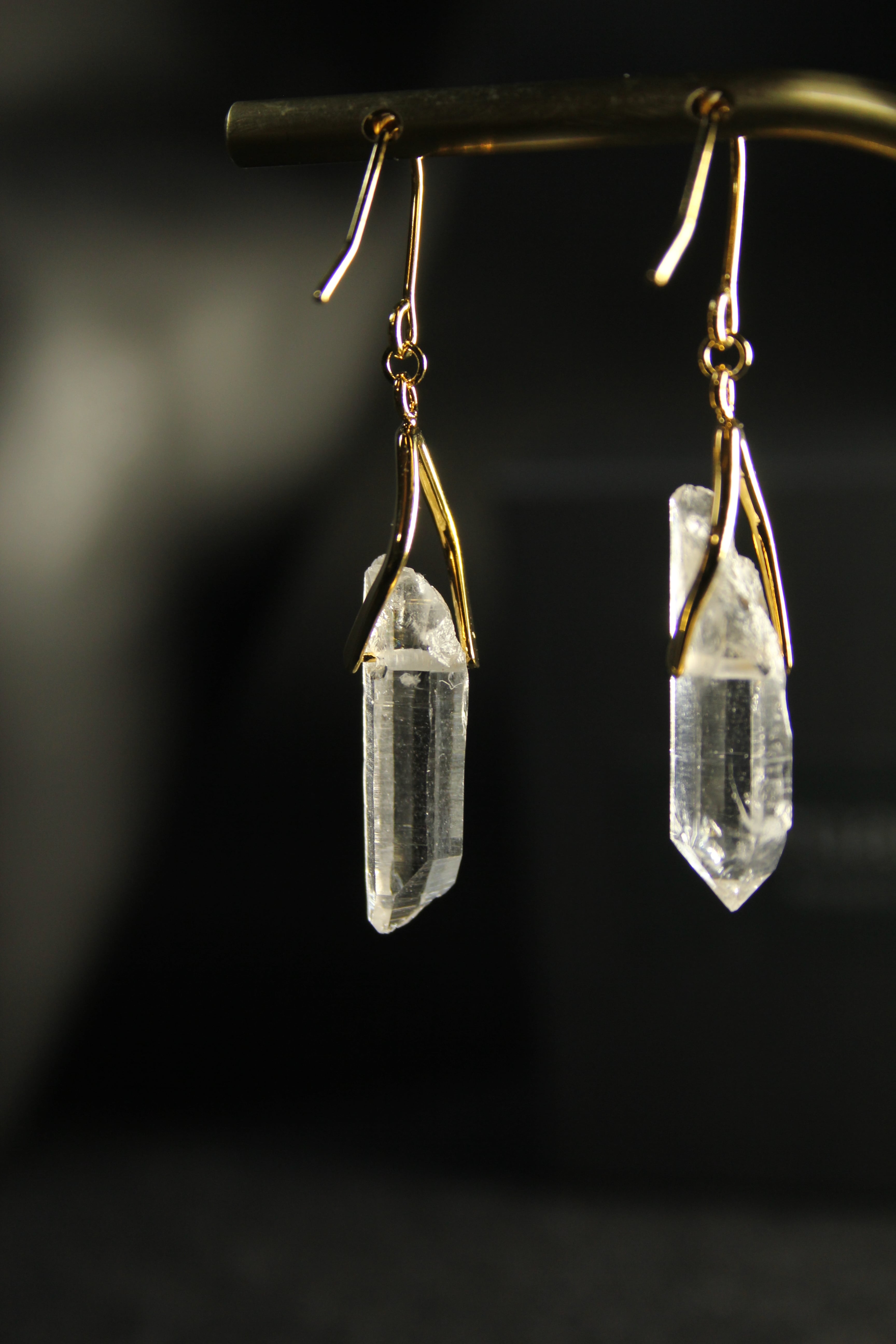 【商品説明】:水晶の原石を使用したピアス。国産水晶の中でも最高レベルの透明度を誇る宮崎県西米良産水晶