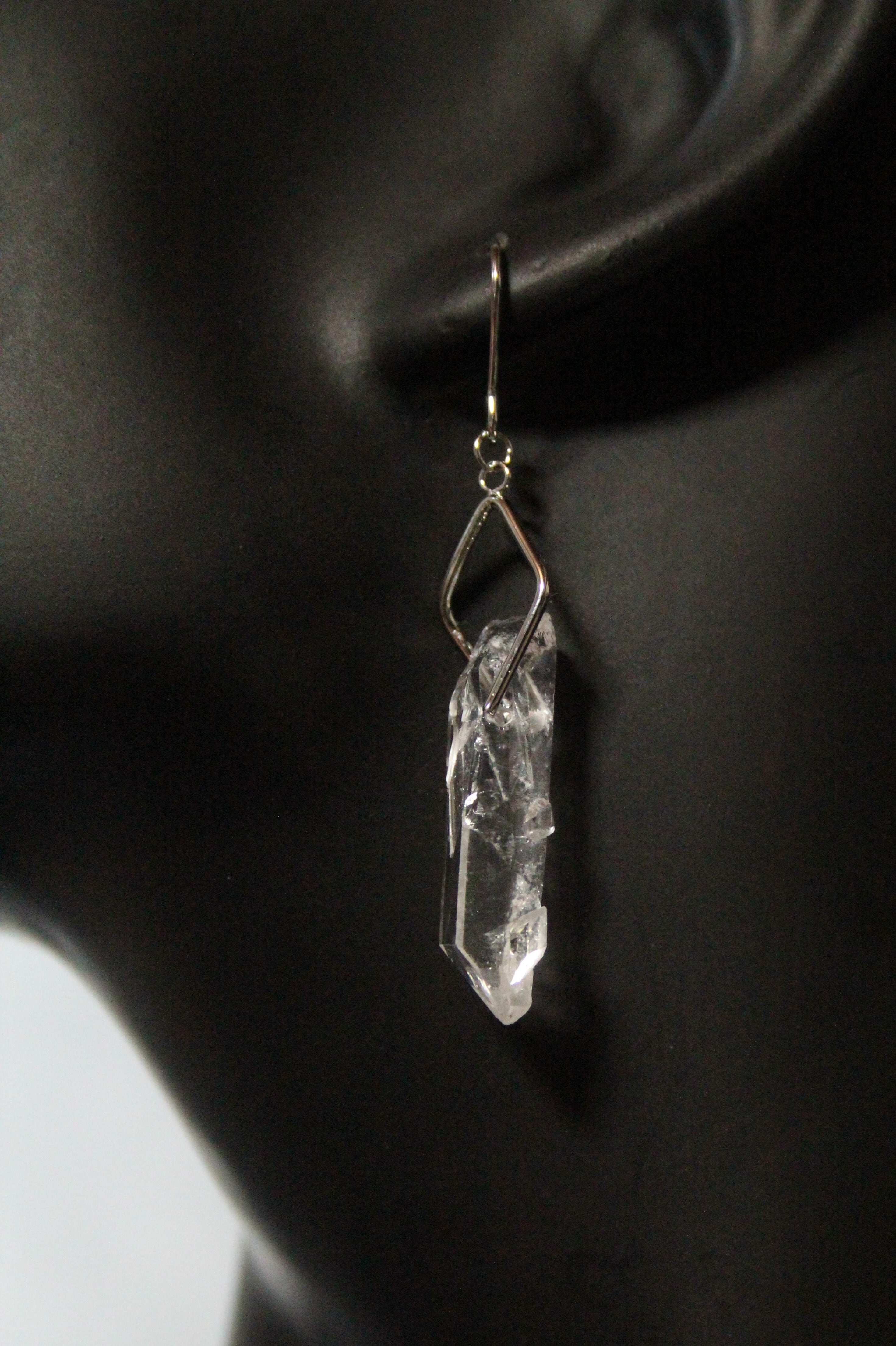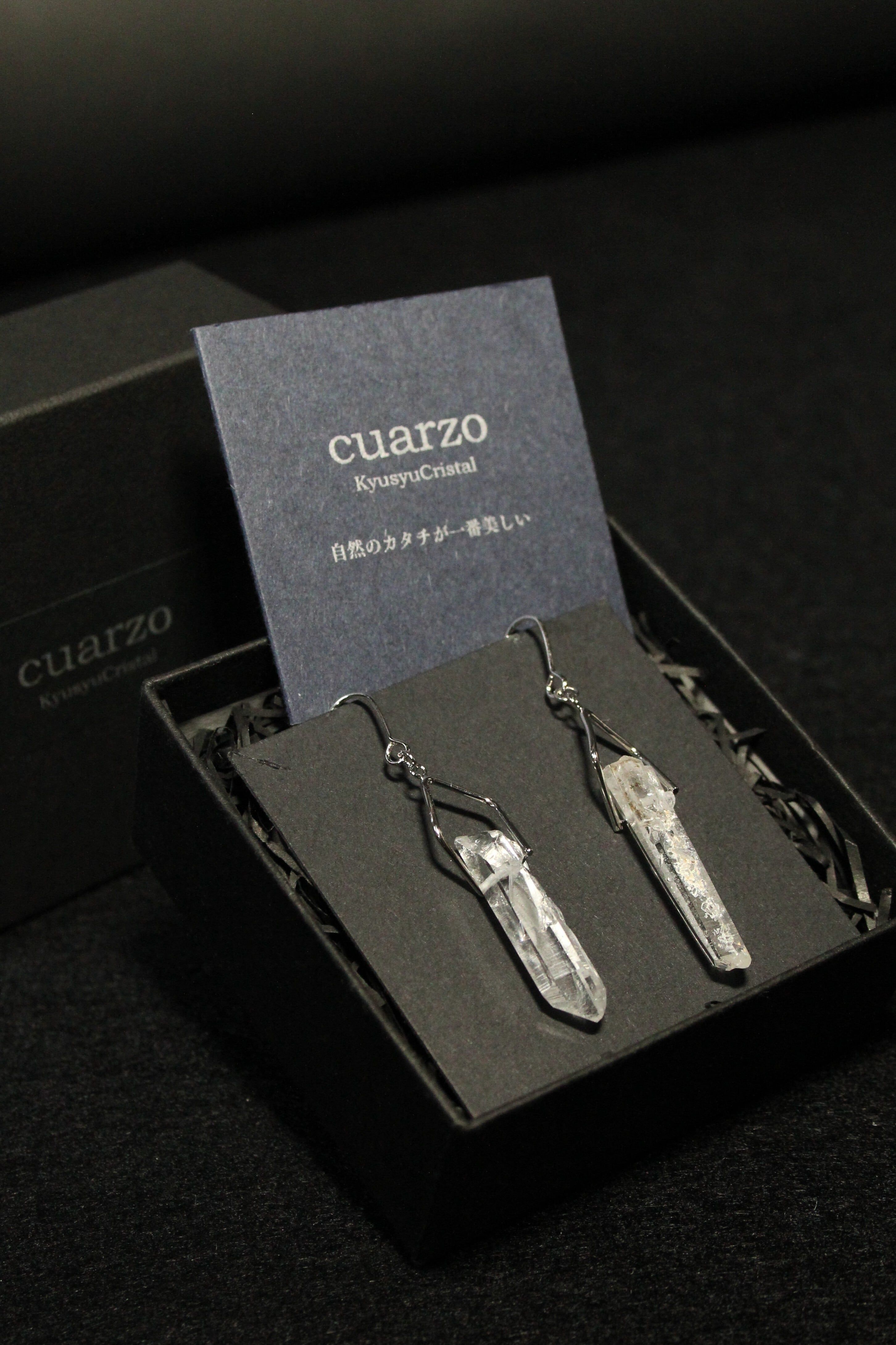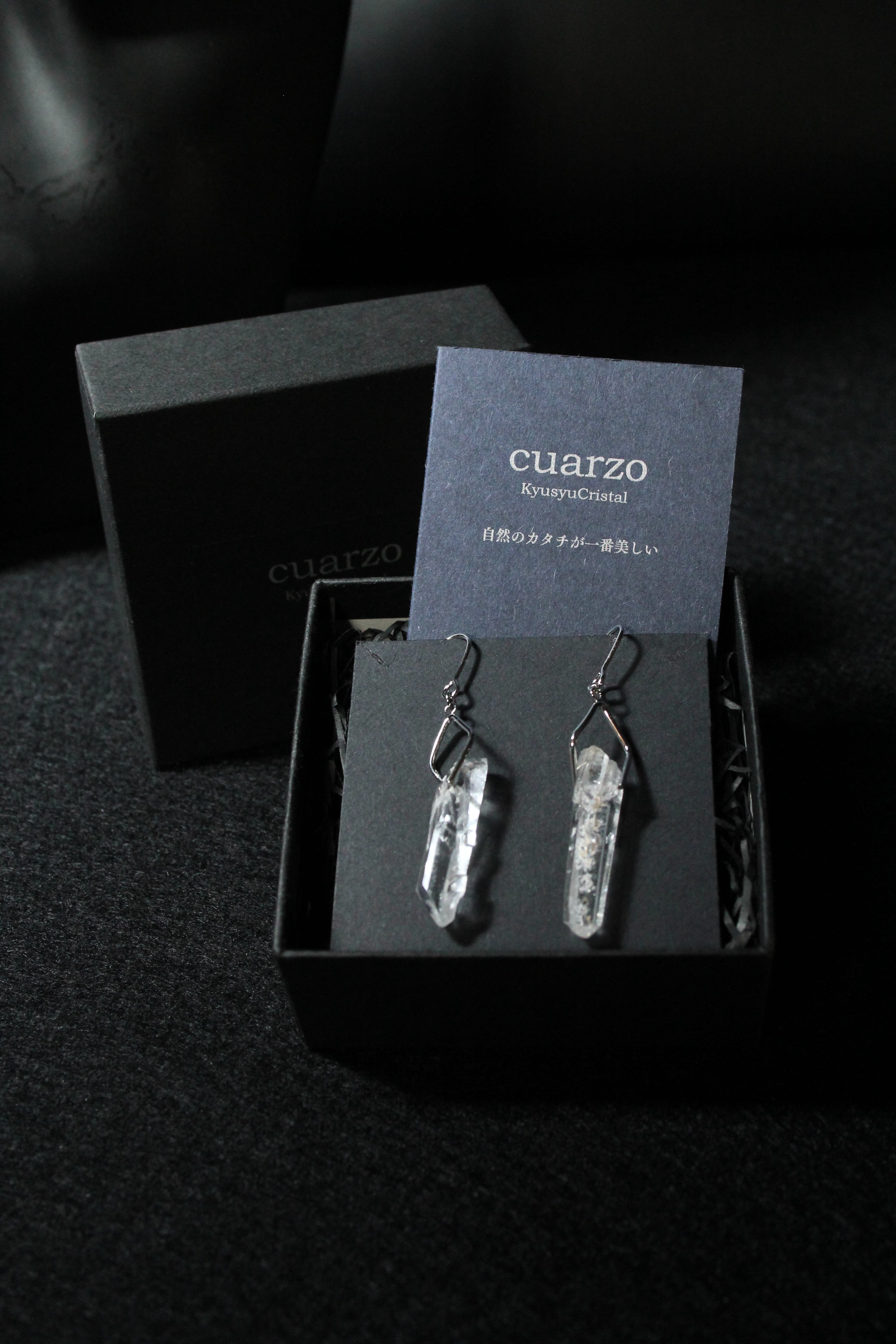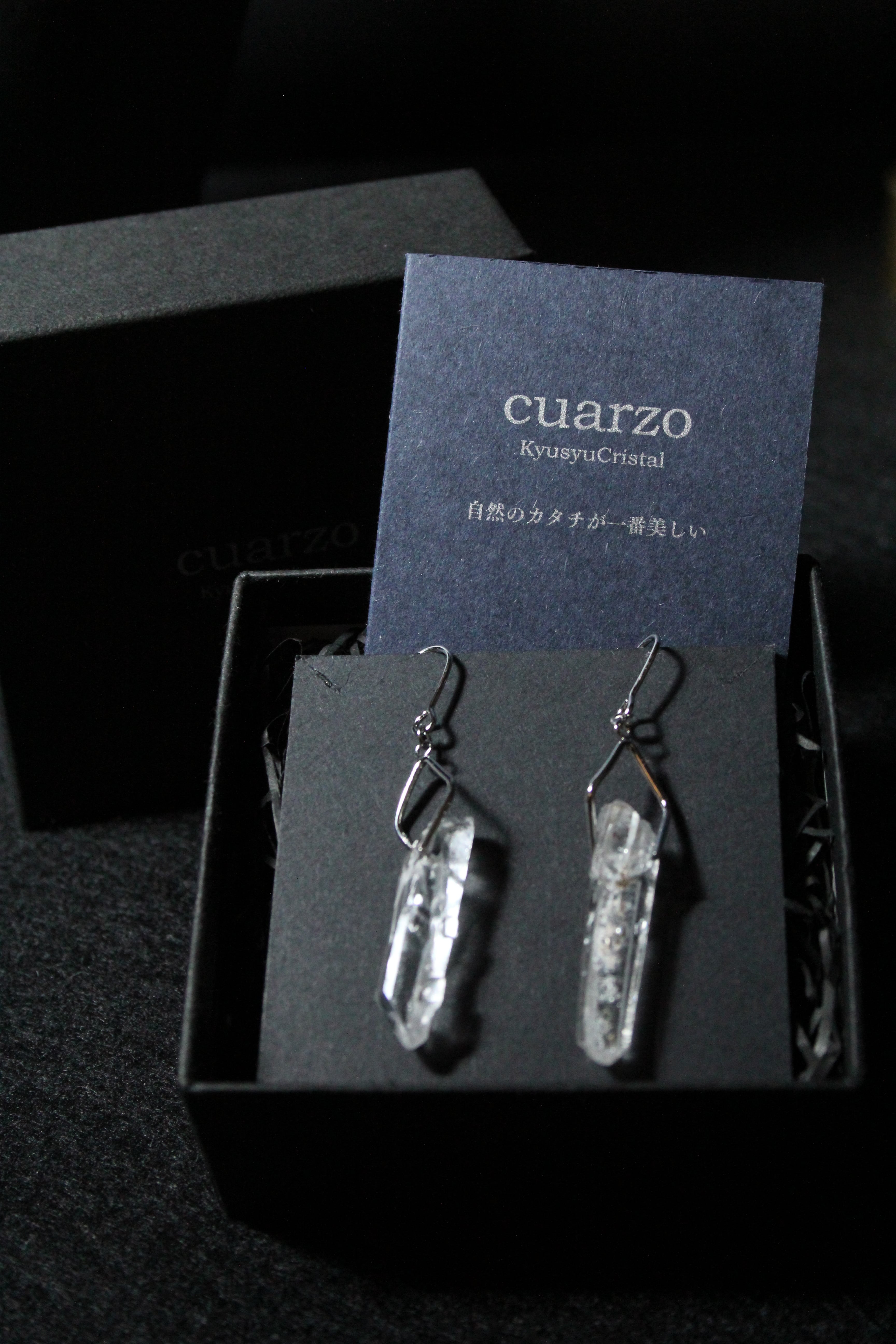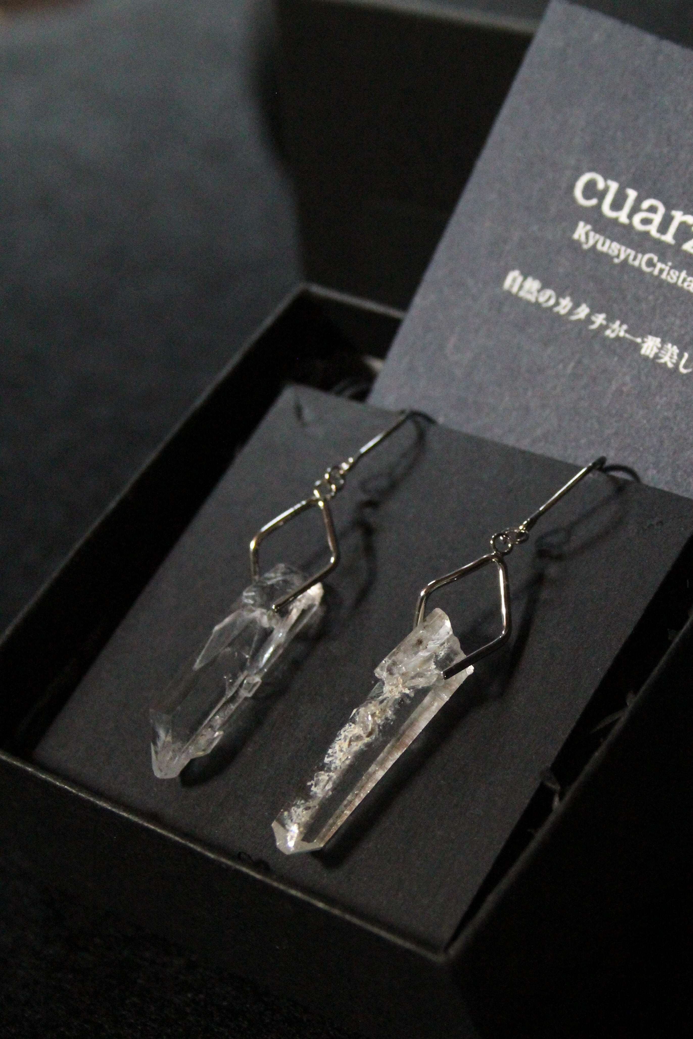 【商品説明】:水晶の原石を使用したピアス。国産水晶の中でも最高レベルの透明度を誇る宮崎県西米良産水晶