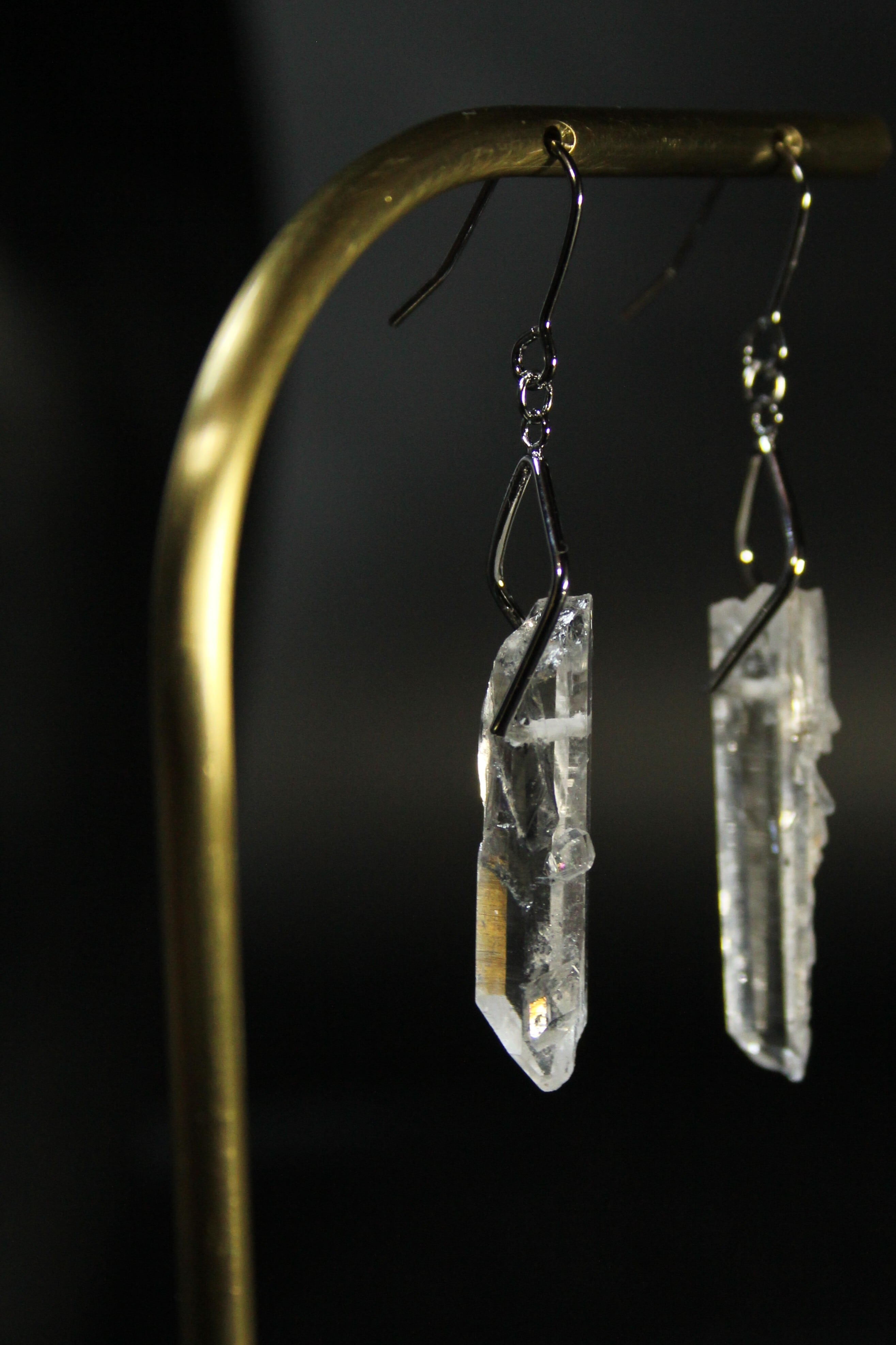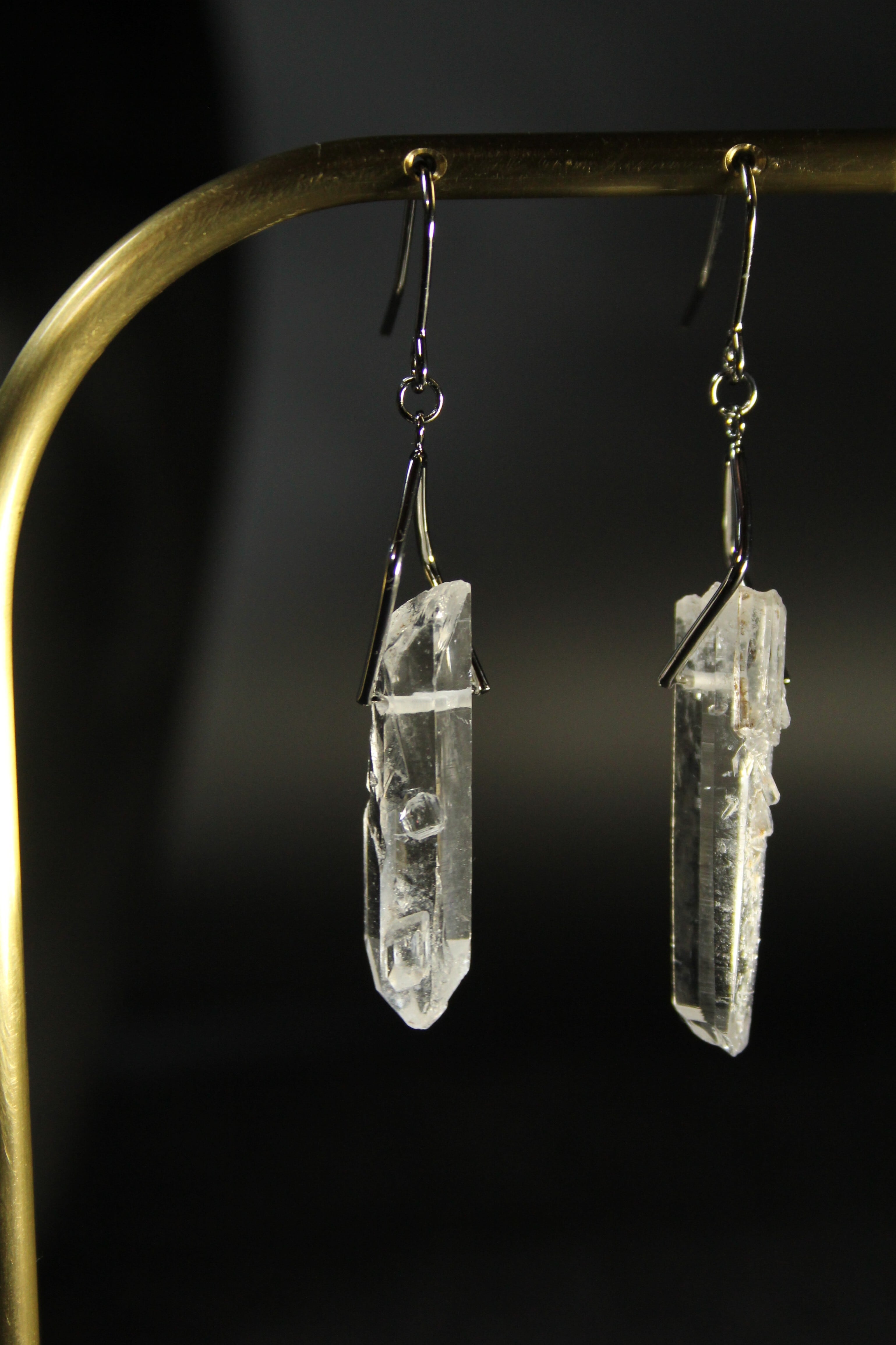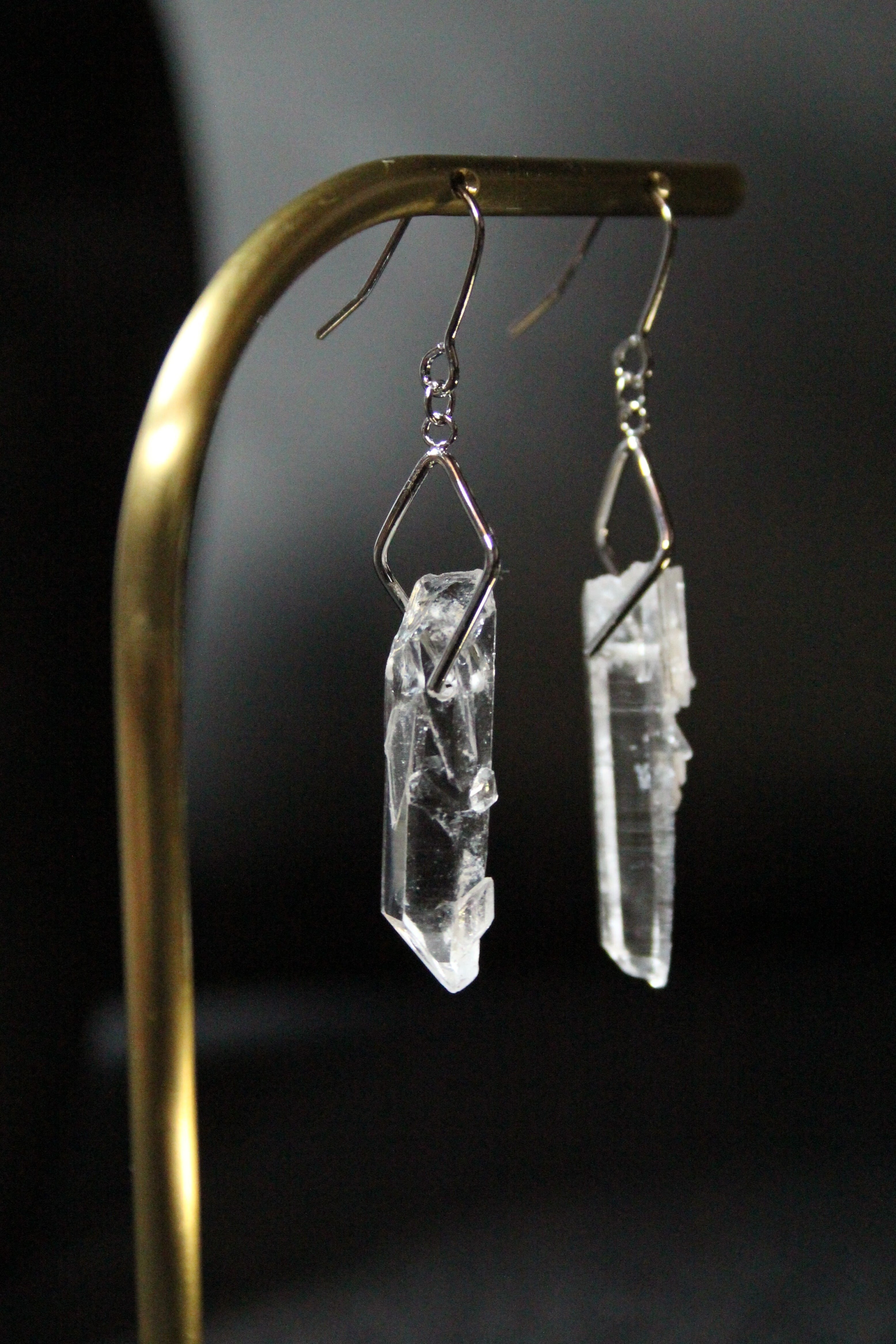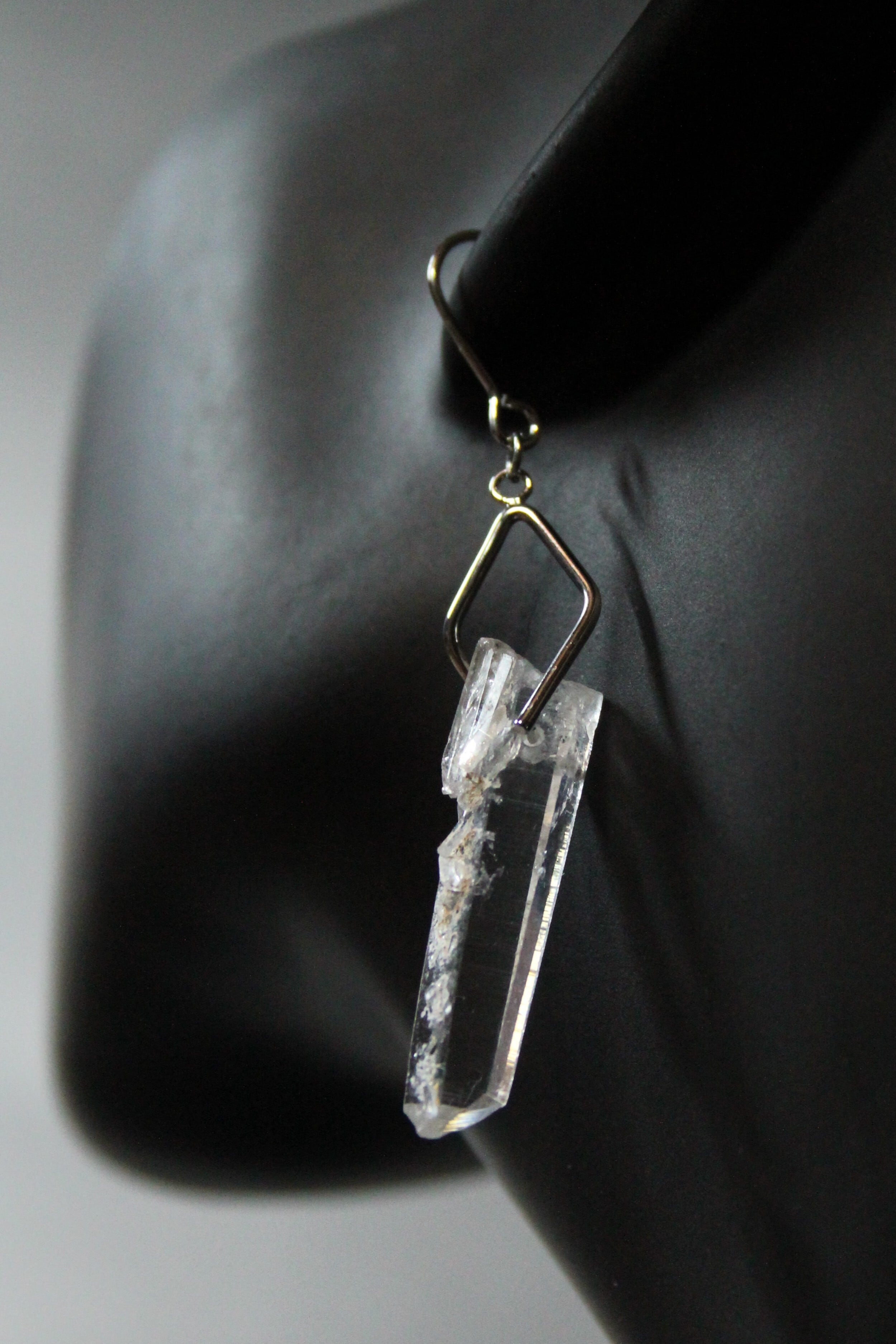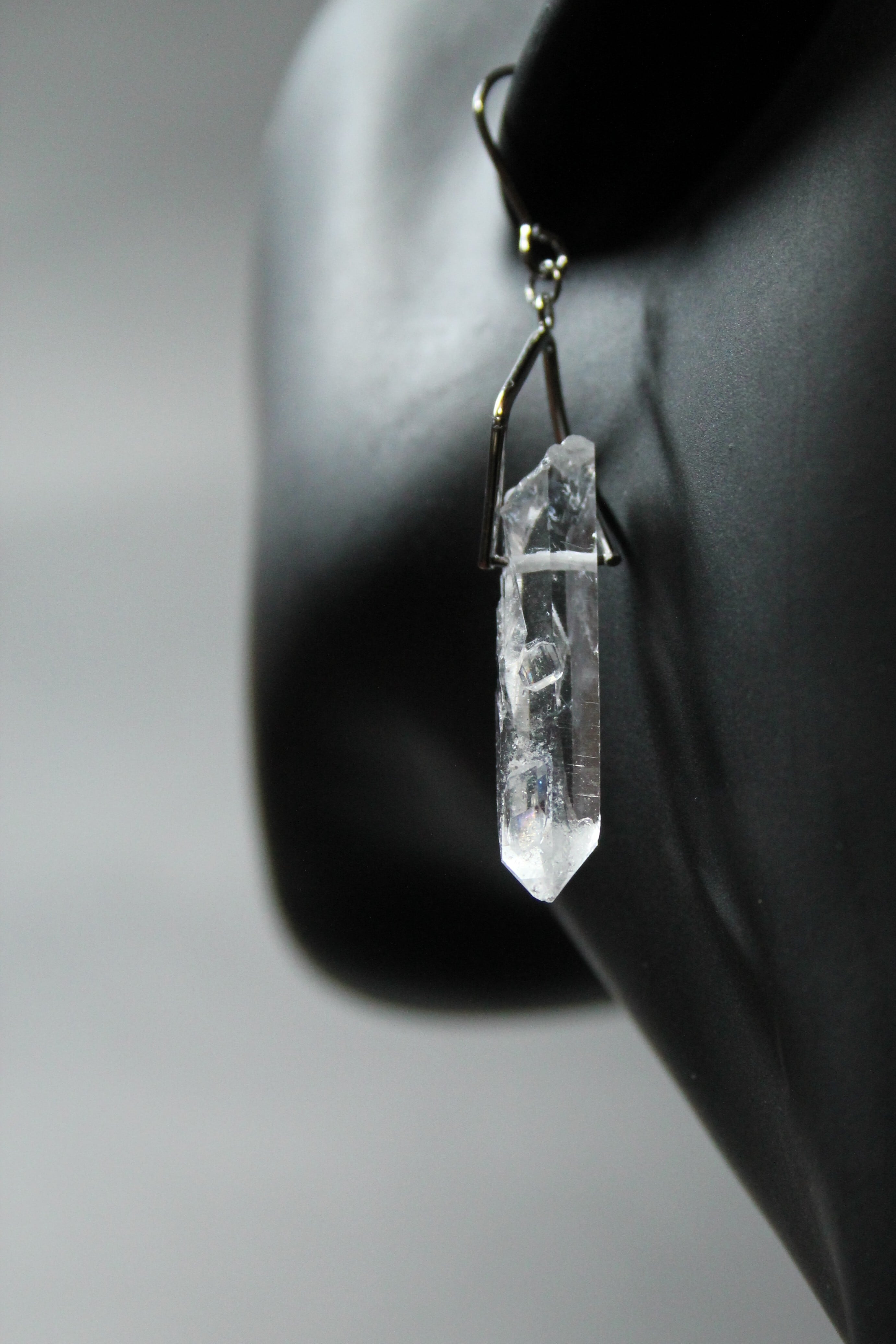 【商品説明】:水晶の原石を使用したピアス。国産水晶の中でも最高レベルの透明度を誇る宮崎県西米良産水晶