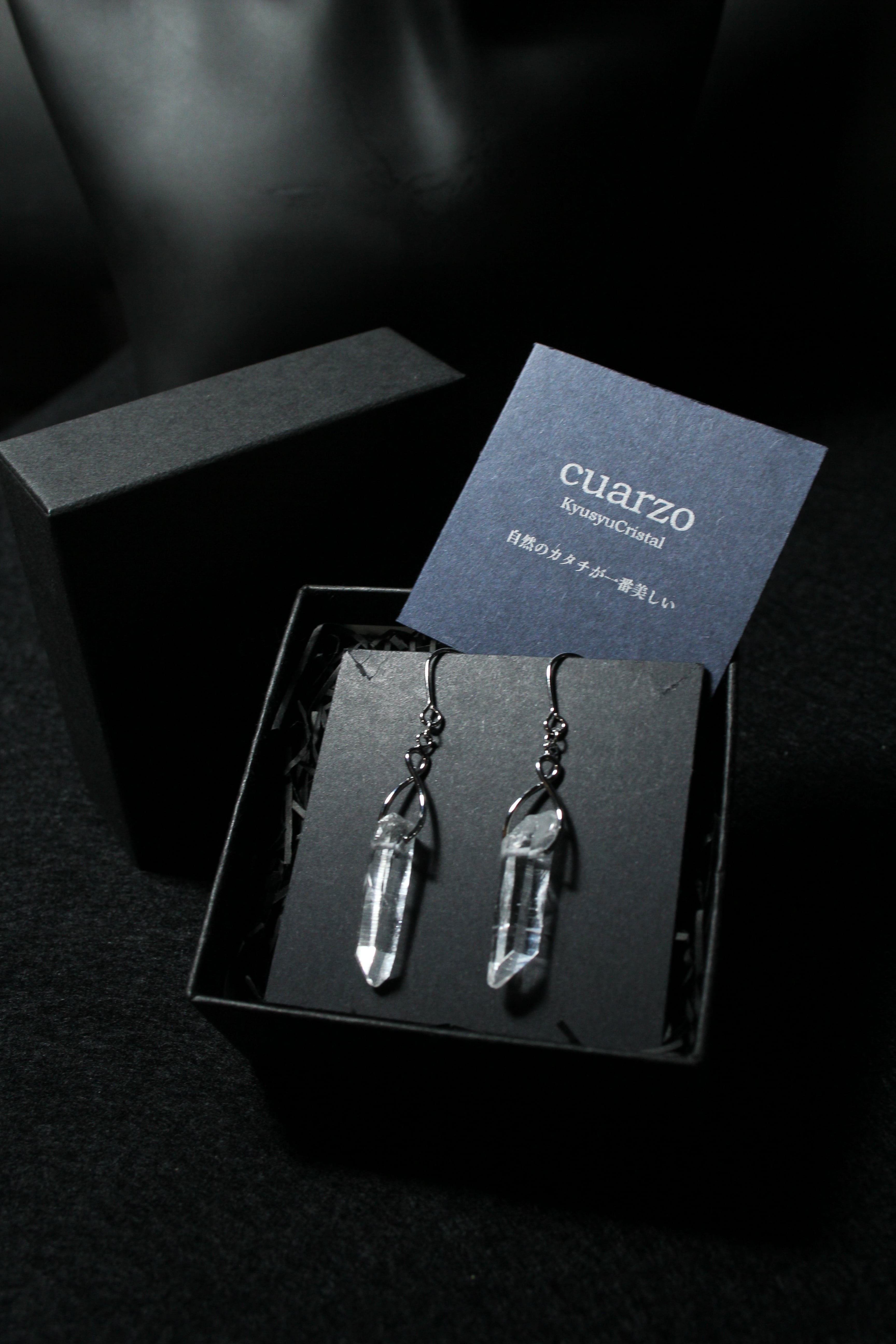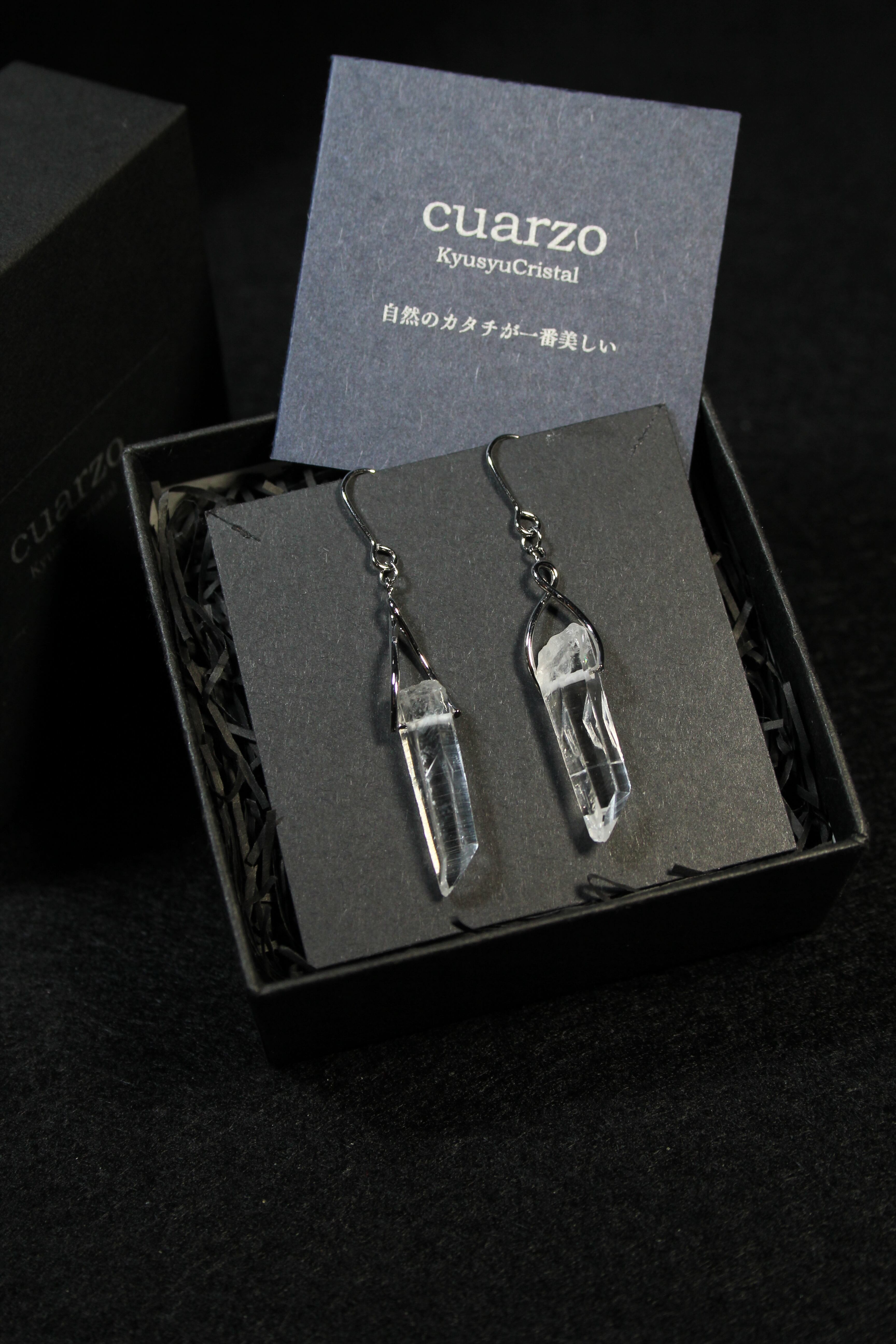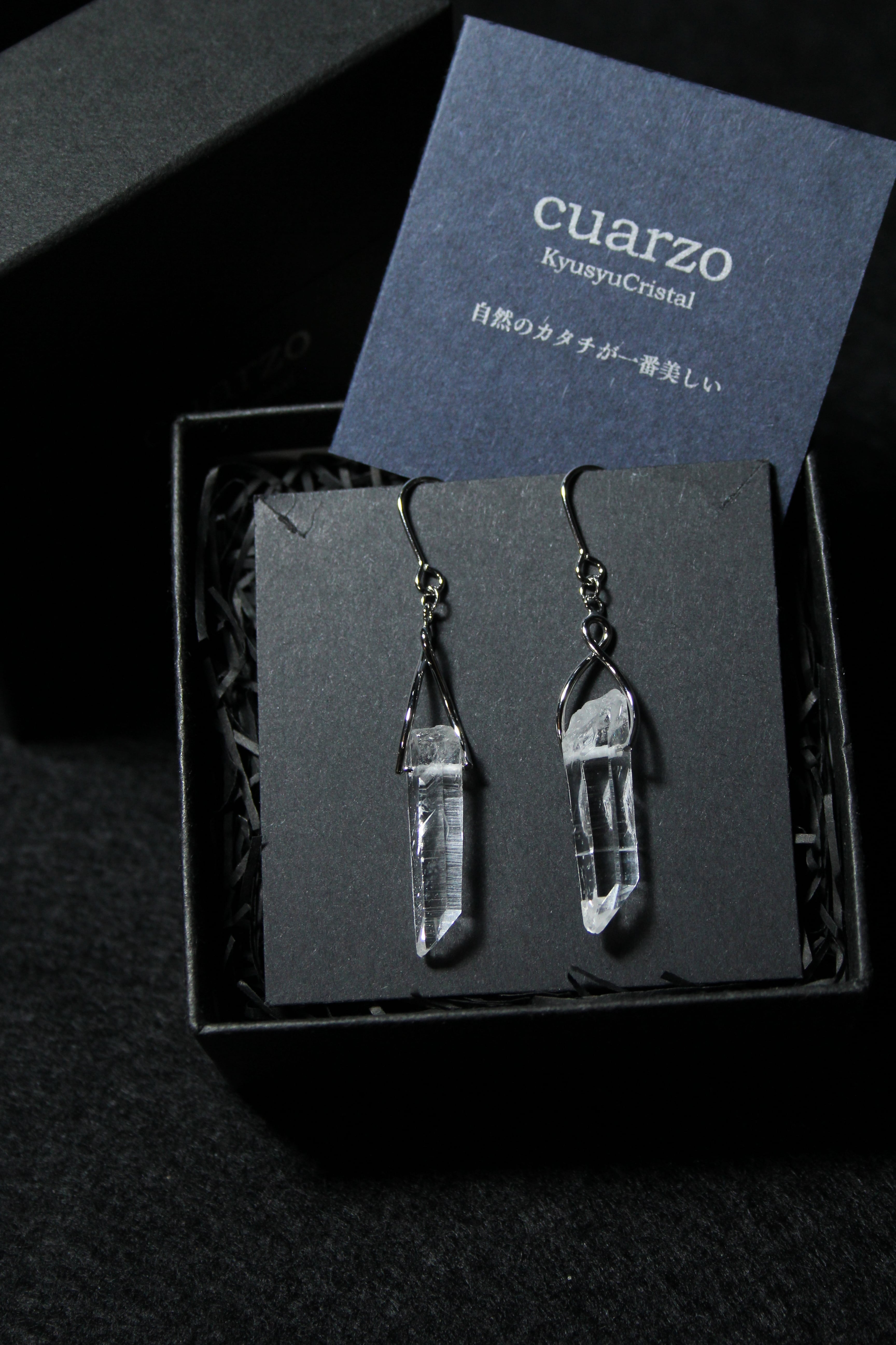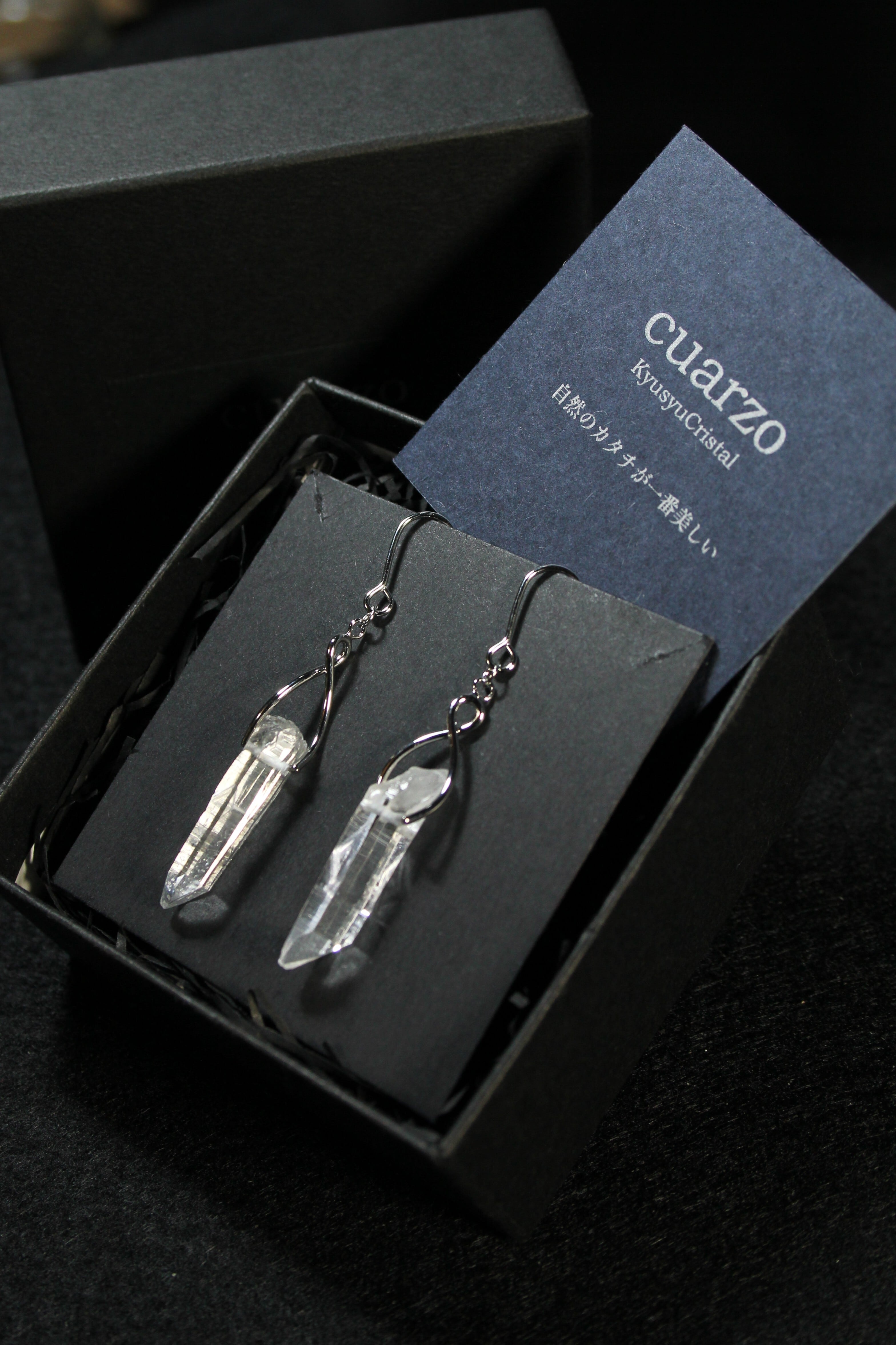 【商品説明】:水晶の原石を使用したピアス。国産水晶の中でも最高レベルの透明度を誇る宮崎県西米良産水晶