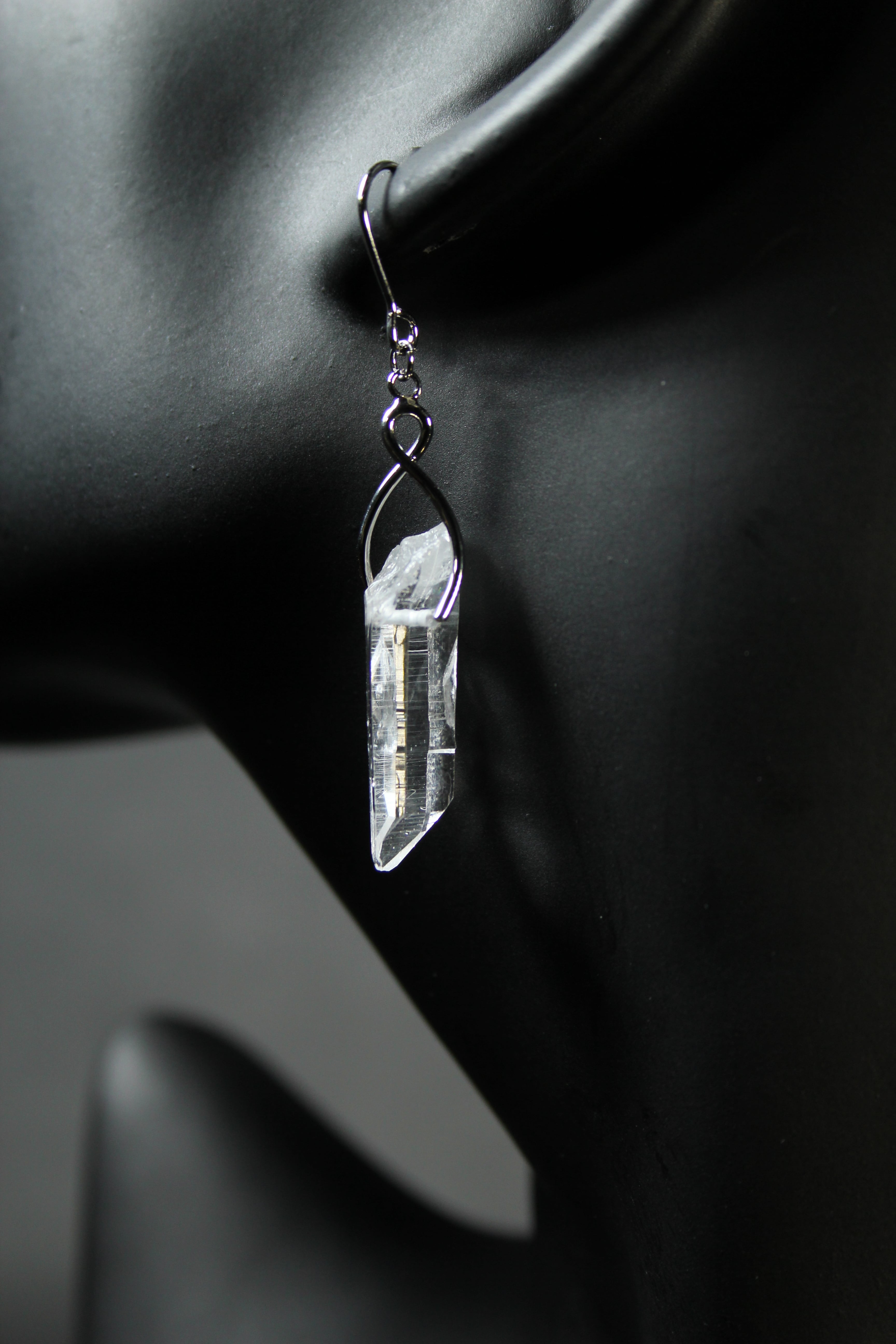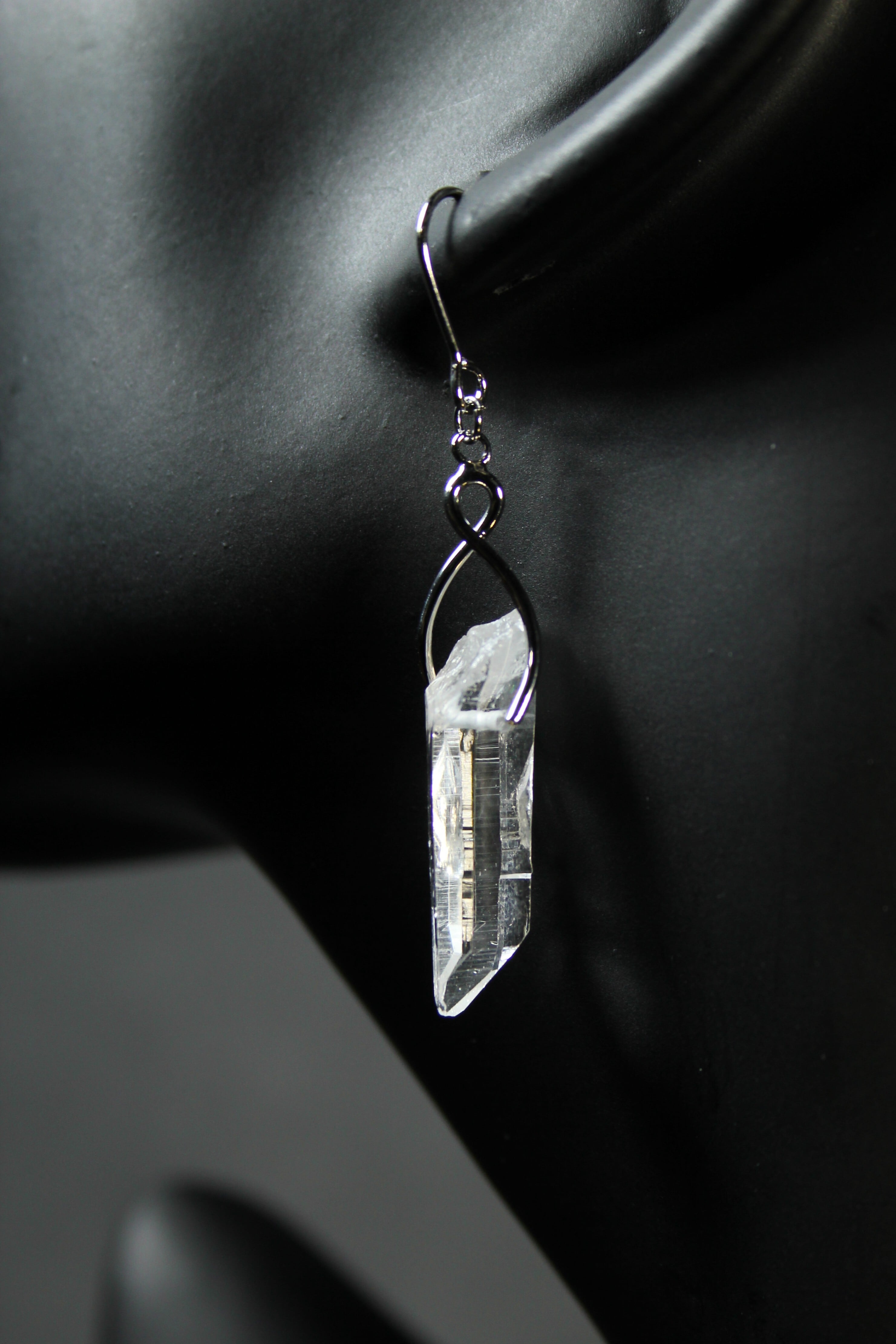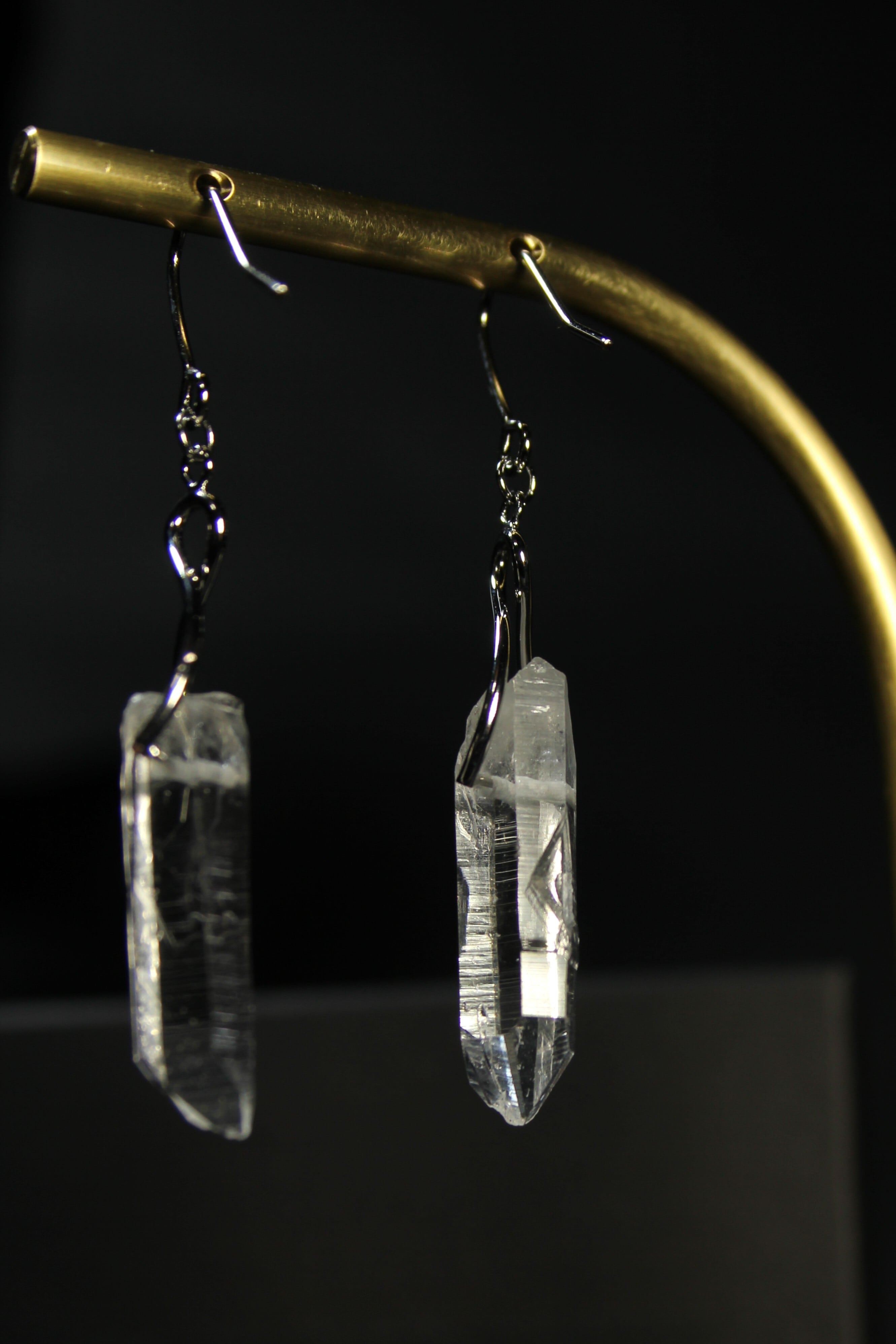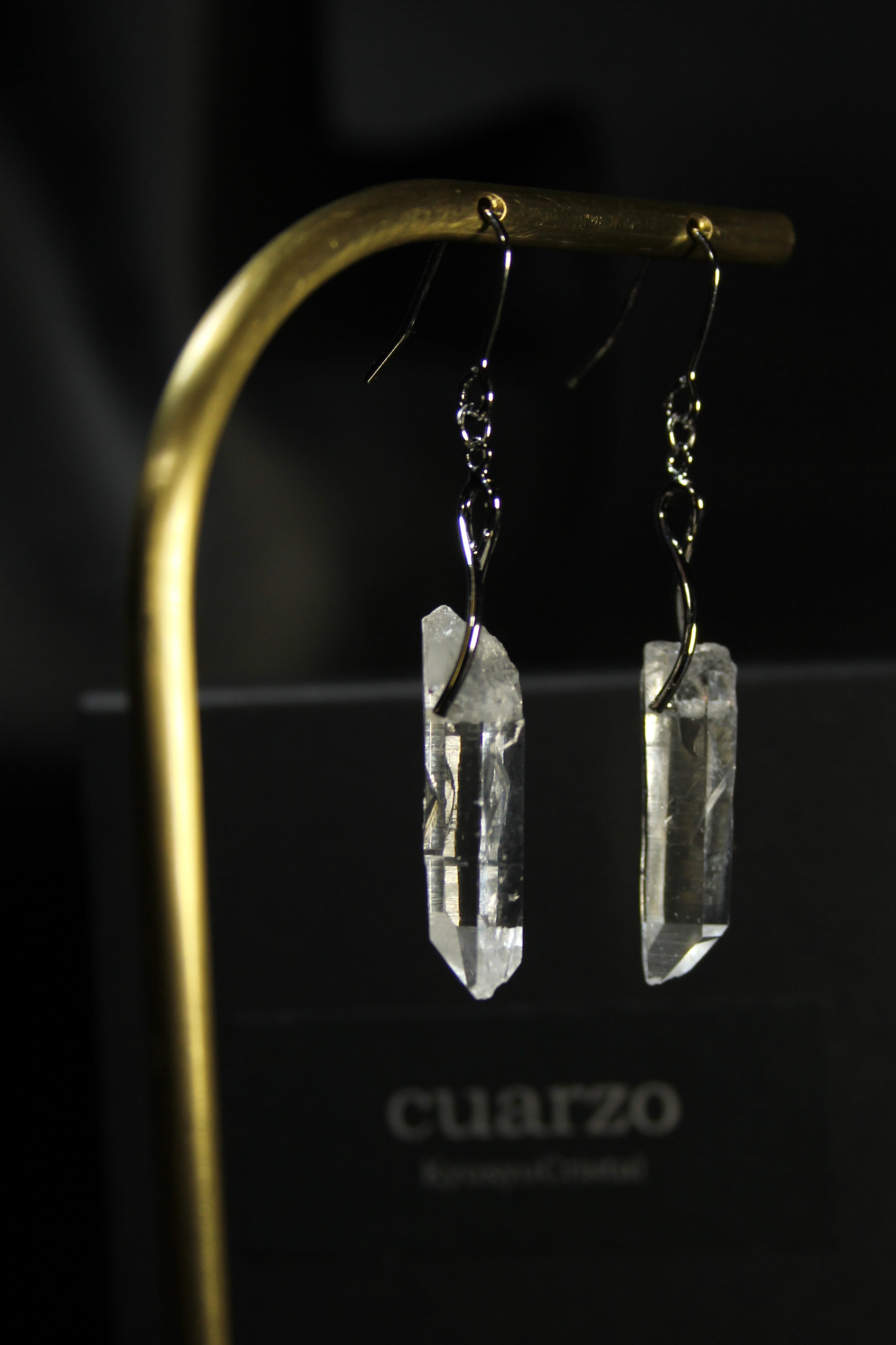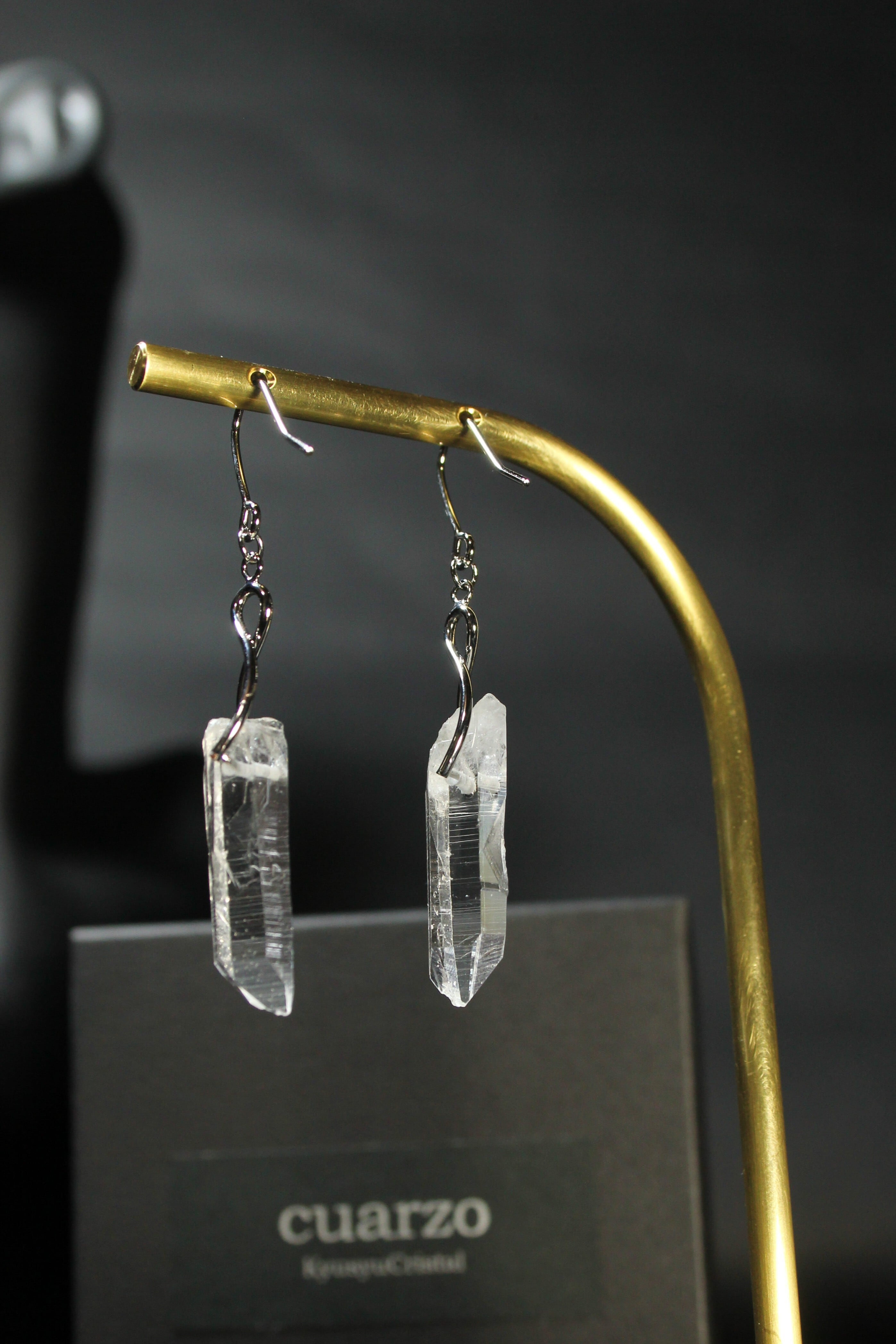 【商品説明】:水晶の原石を使用したピアス。国産水晶の中でも最高レベルの透明度を誇る宮崎県西米良産水晶