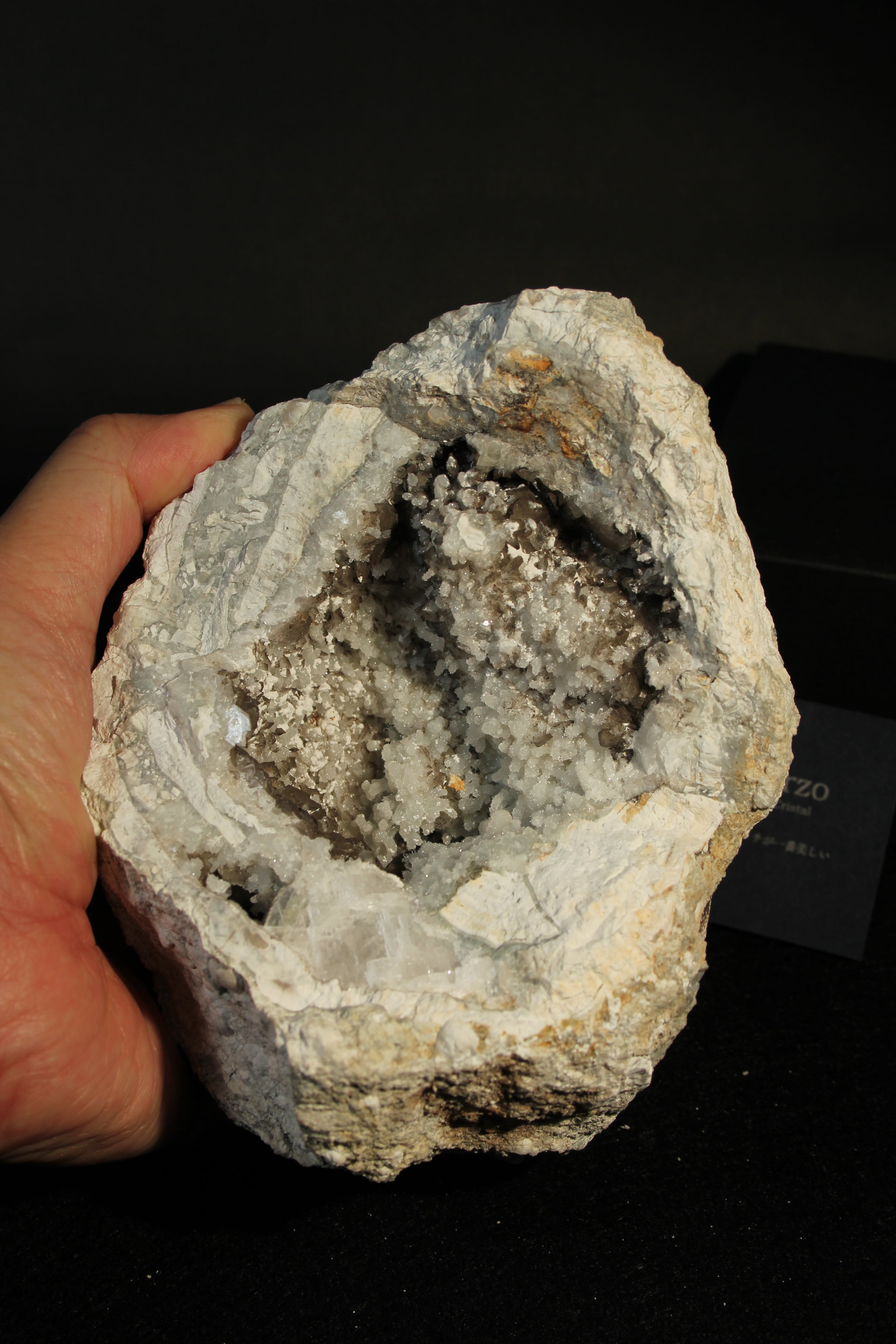【商品説明】:ジオードの原石オンリー。日本ではとても珍しい球顆流紋岩のジオード。その中でも、このジオードは15cmを超える大型です。この産地の大型のジオードで、この大きさで形の良さ、きれいな空洞はとても珍しいです。
