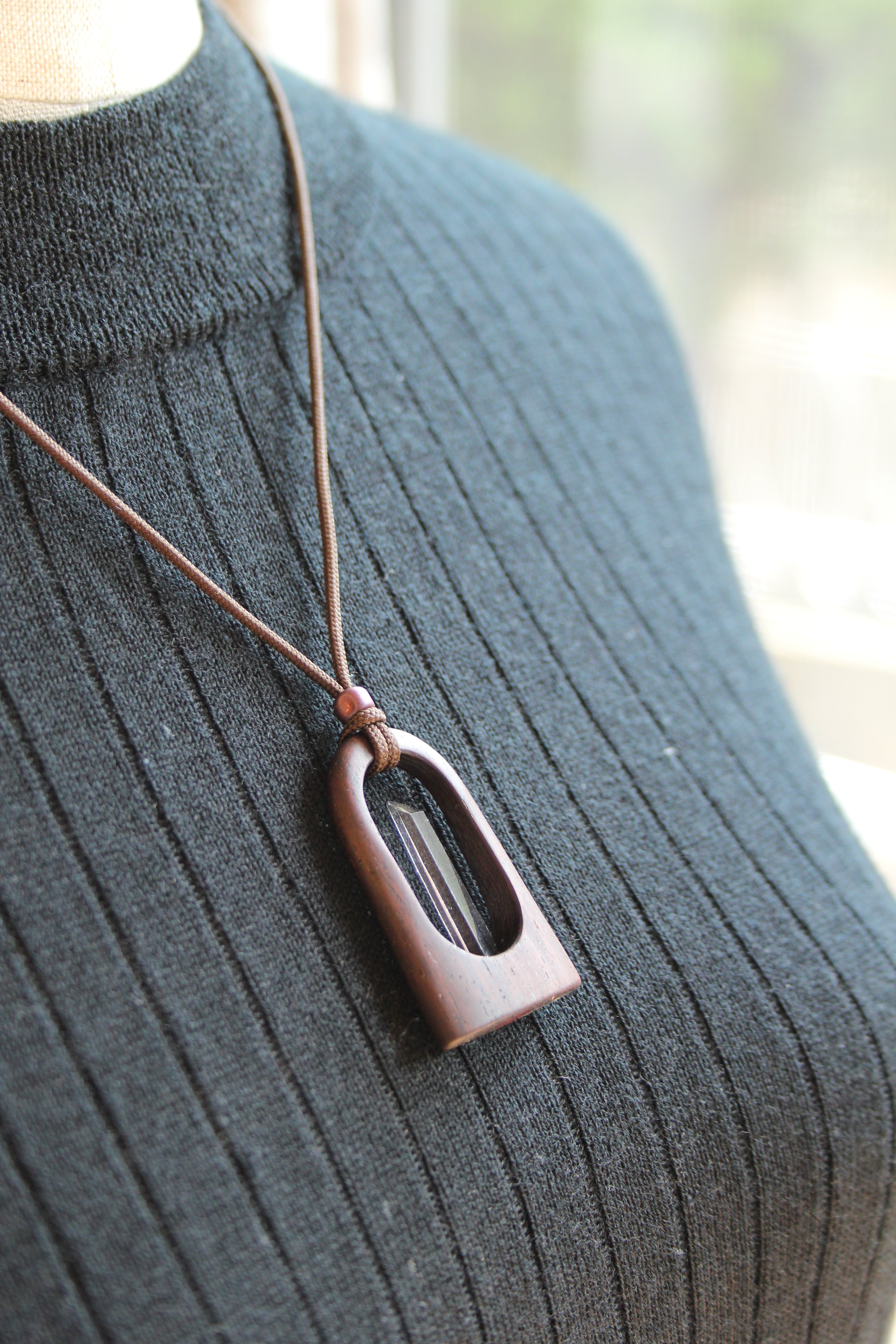 【商品説明】:水晶の原石と高級木材のローズウッドを使用したペンダント。コロンビアレムリアンを彷彿させるような透明度が高い宮崎産水晶。ギューンと伸びたポイント水晶がカッコイイです